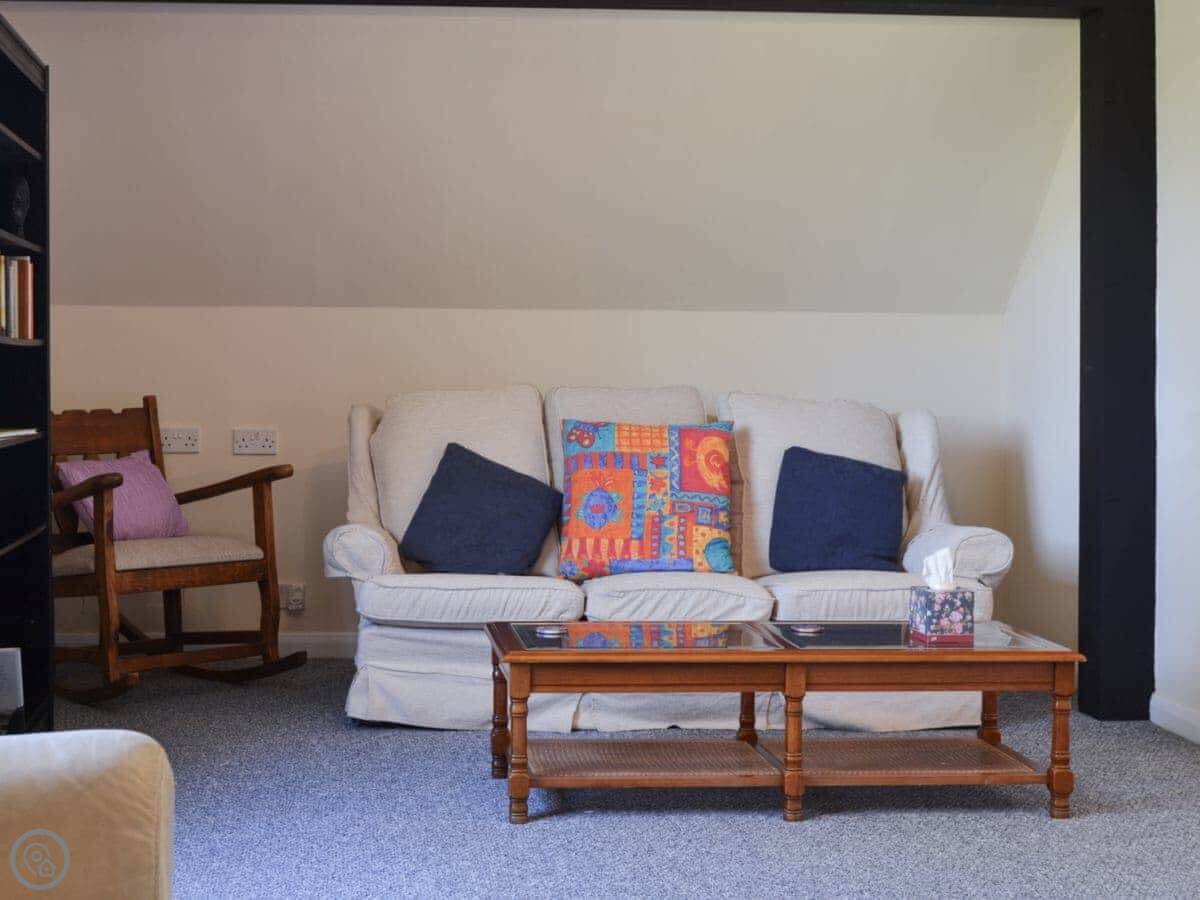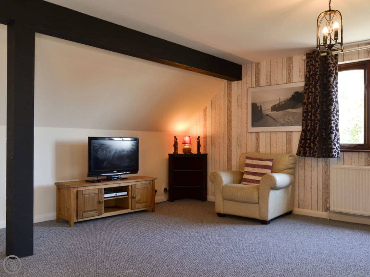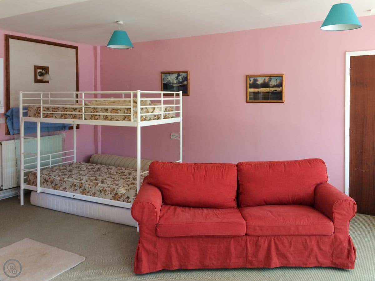 It sleeps five, in two bedrooms plus a small extra room downstairs. There's a bunk bed and a single in one room, a double in the other. The downstairs room is good if you've got kids who want a space to play, or if someone wants to sleep separately. One bathroom, with a shower. It's a 4 Star place, so it's comfortable and well looked after.