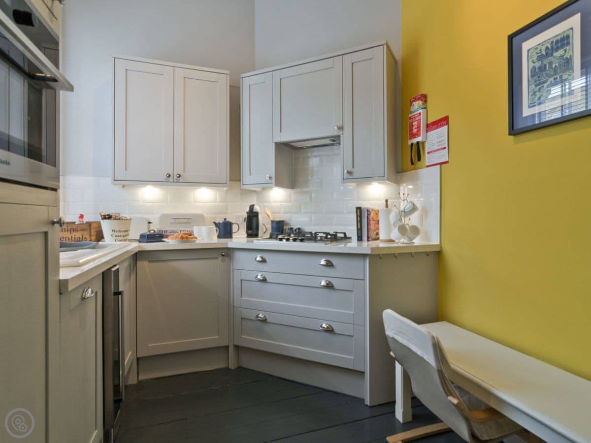 The living room and kitchen are open plan at the back. The kitchen has a dishwasher and washing machine. The main thing in the living area is the view. It's just sea. No garden, but you're facing the water.