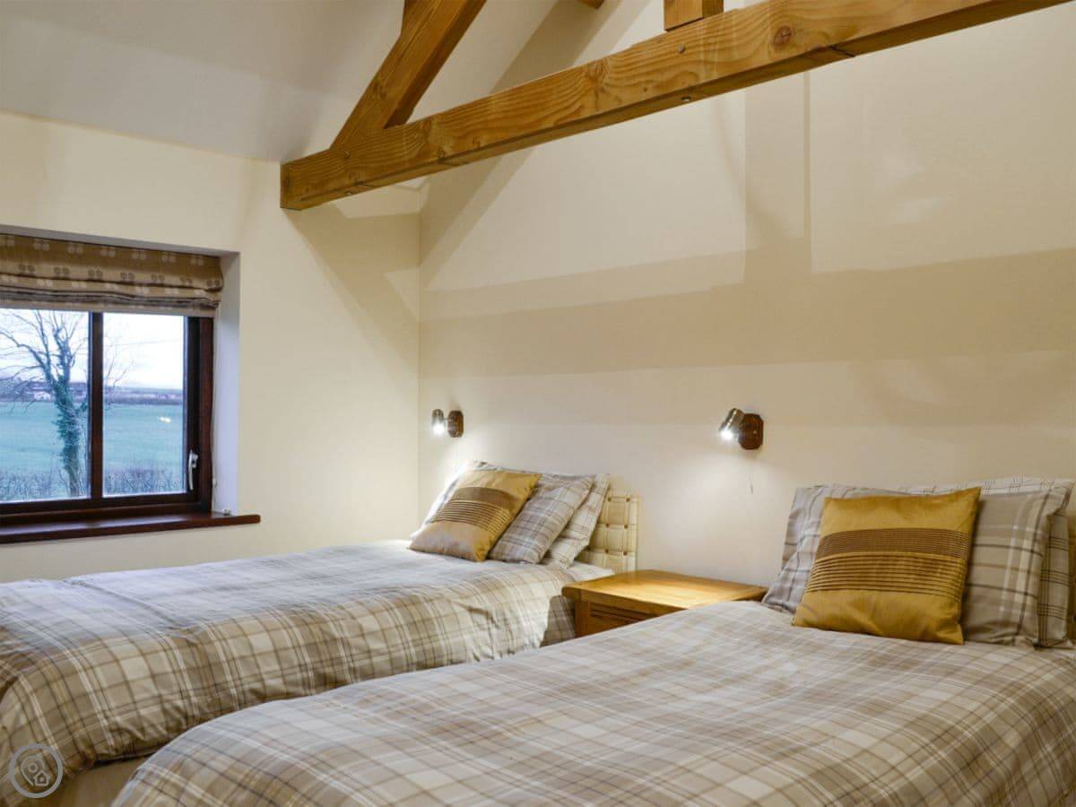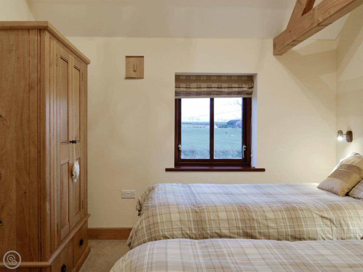 It sleeps four, in two bedrooms. There’s a king size upstairs with its own shower room, and a twin room next to the family bathroom. The stairs are internal, not too steep.