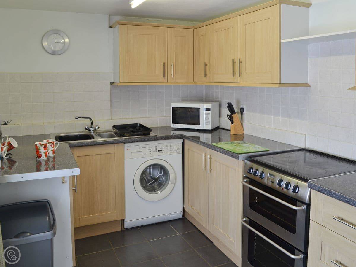 The facilities are what you'd expect. There's a washing machine, WiFi, and a TV. Bedding and towels are included. We can provide a cot and a highchair if you need them. There's a small patio area for you. No pets, sorry.
