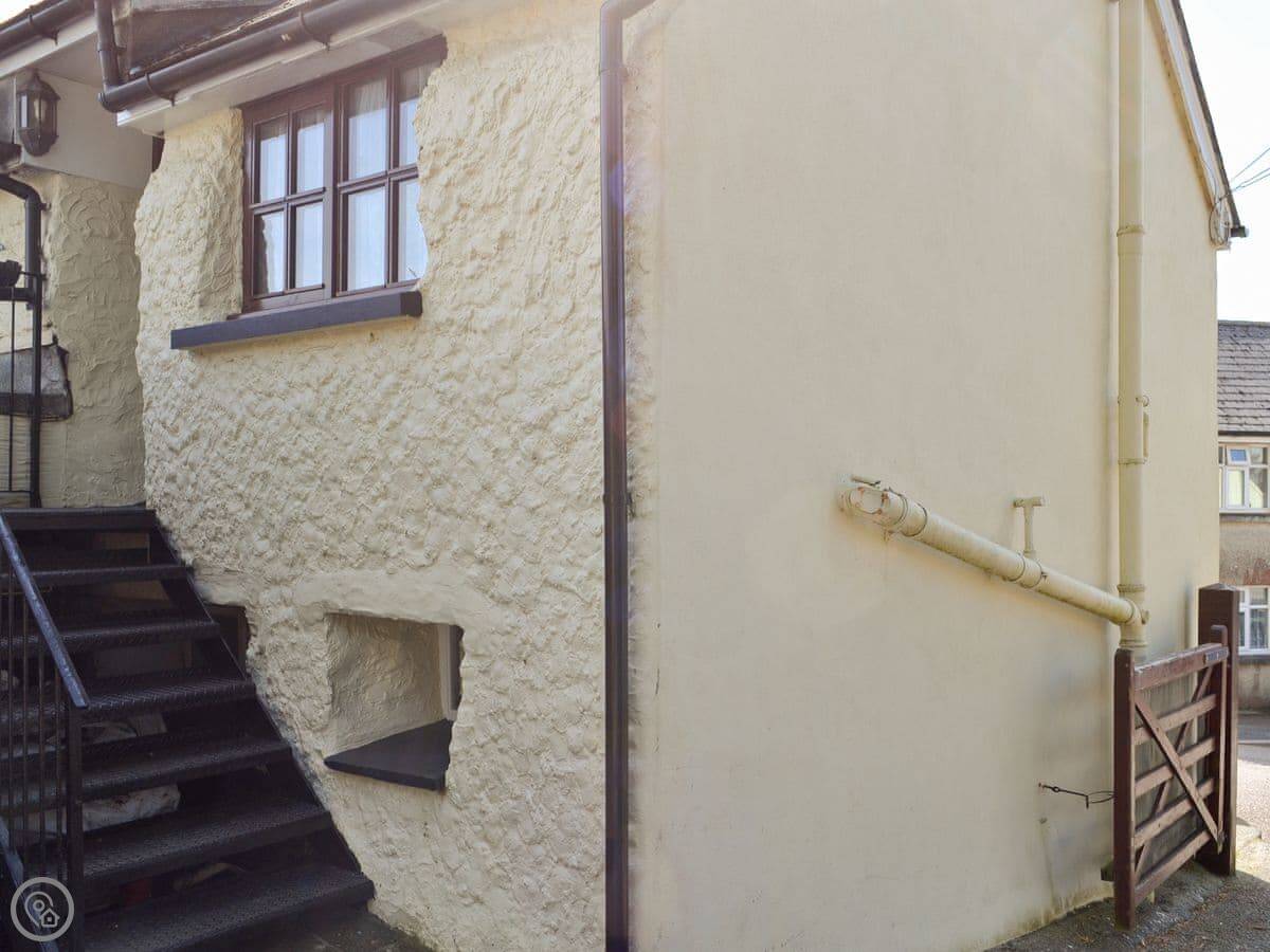 The Bridge Inn Apartment is above the Bridge Inn pub in Bridgerule. It's got its own private entrance from the side, so you're not going through the bar. The pub itself is a 16th-century village local.