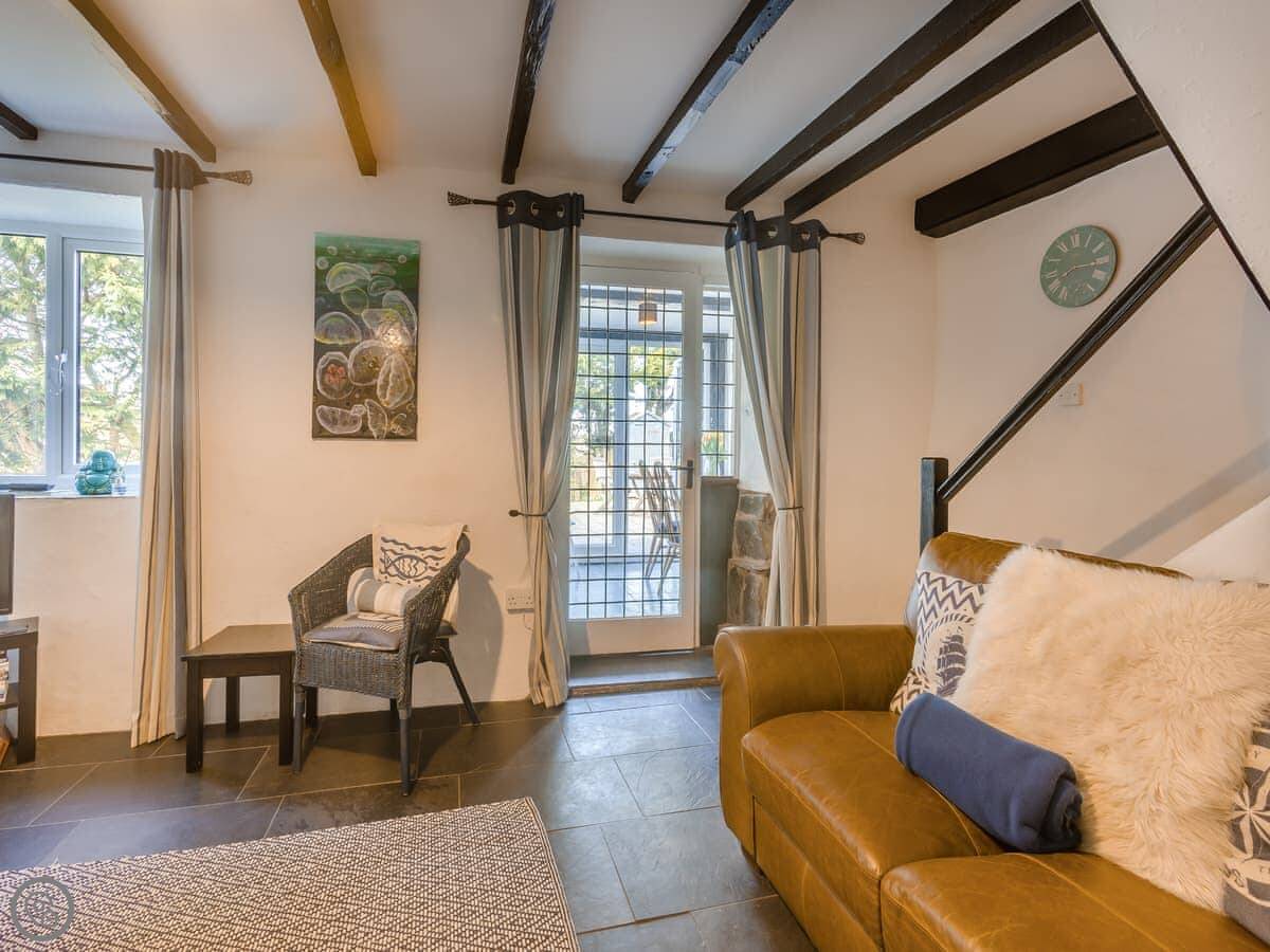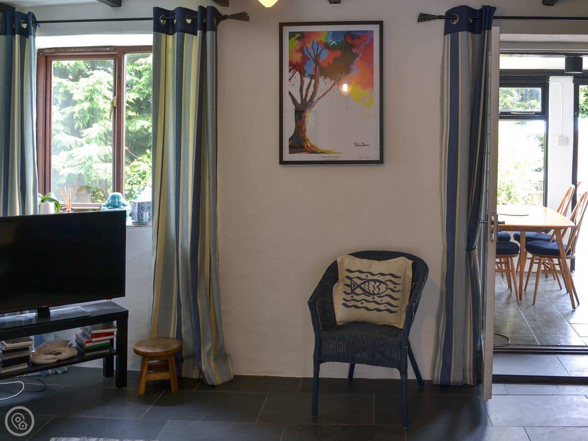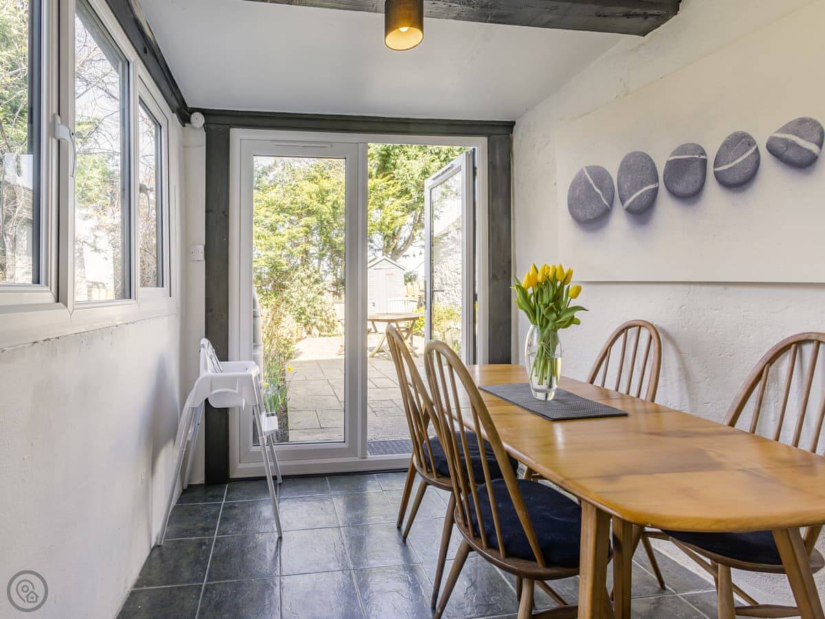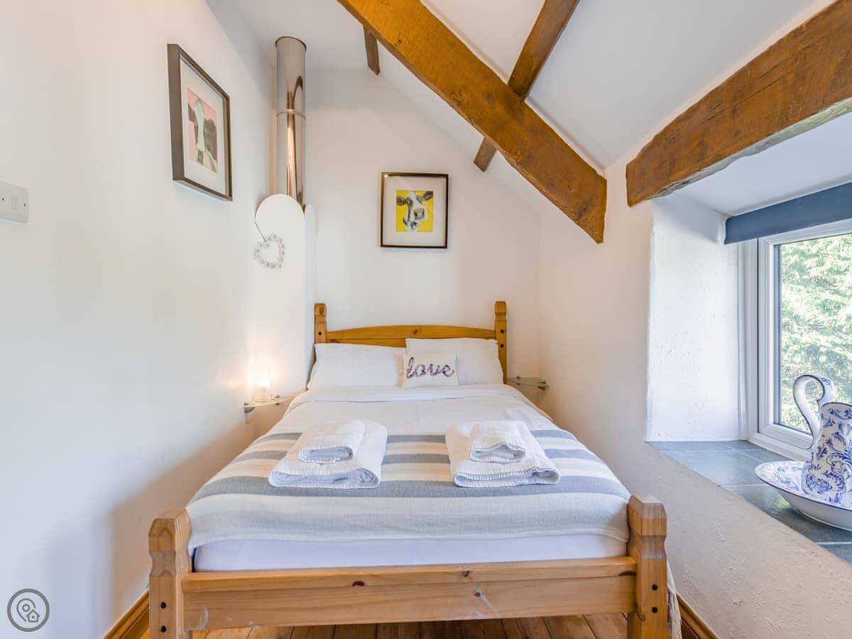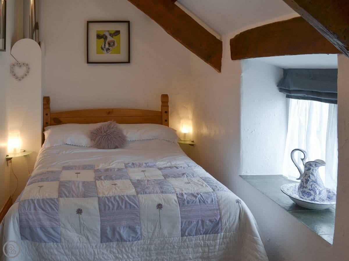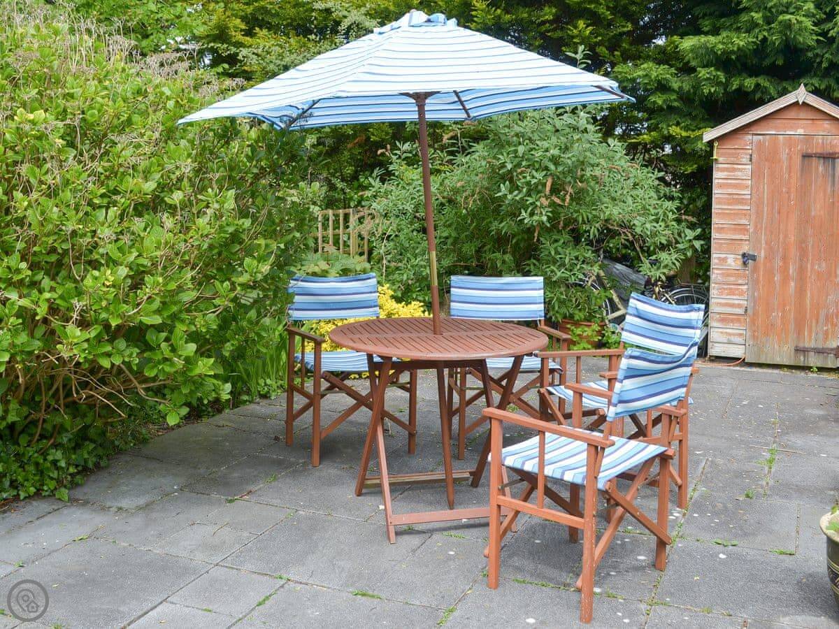 The garden is enclosed, which is good if you're bringing a dog or have kids. You can sit out there. Inside, there's a wood burner for cool evenings. The stairs are a typical cottage staircase, so they're a bit steep.