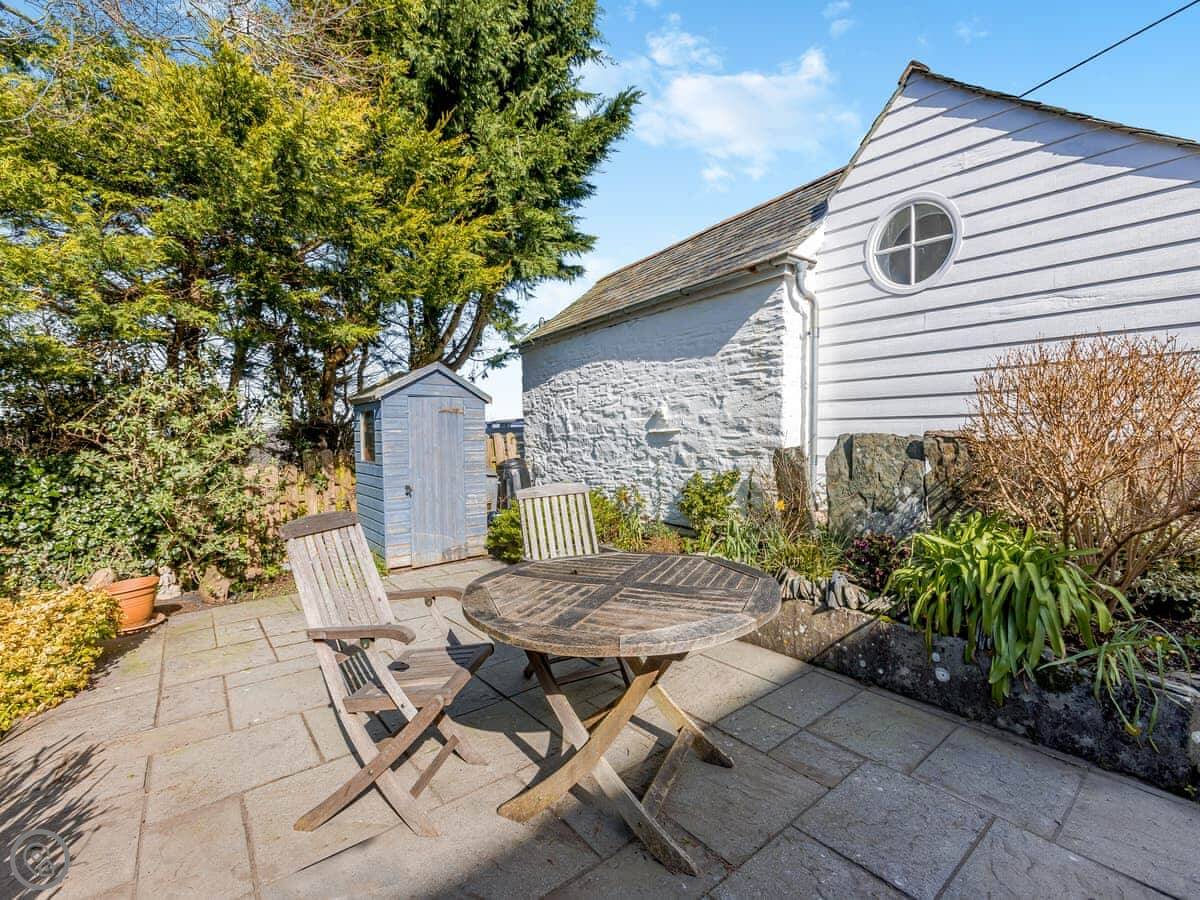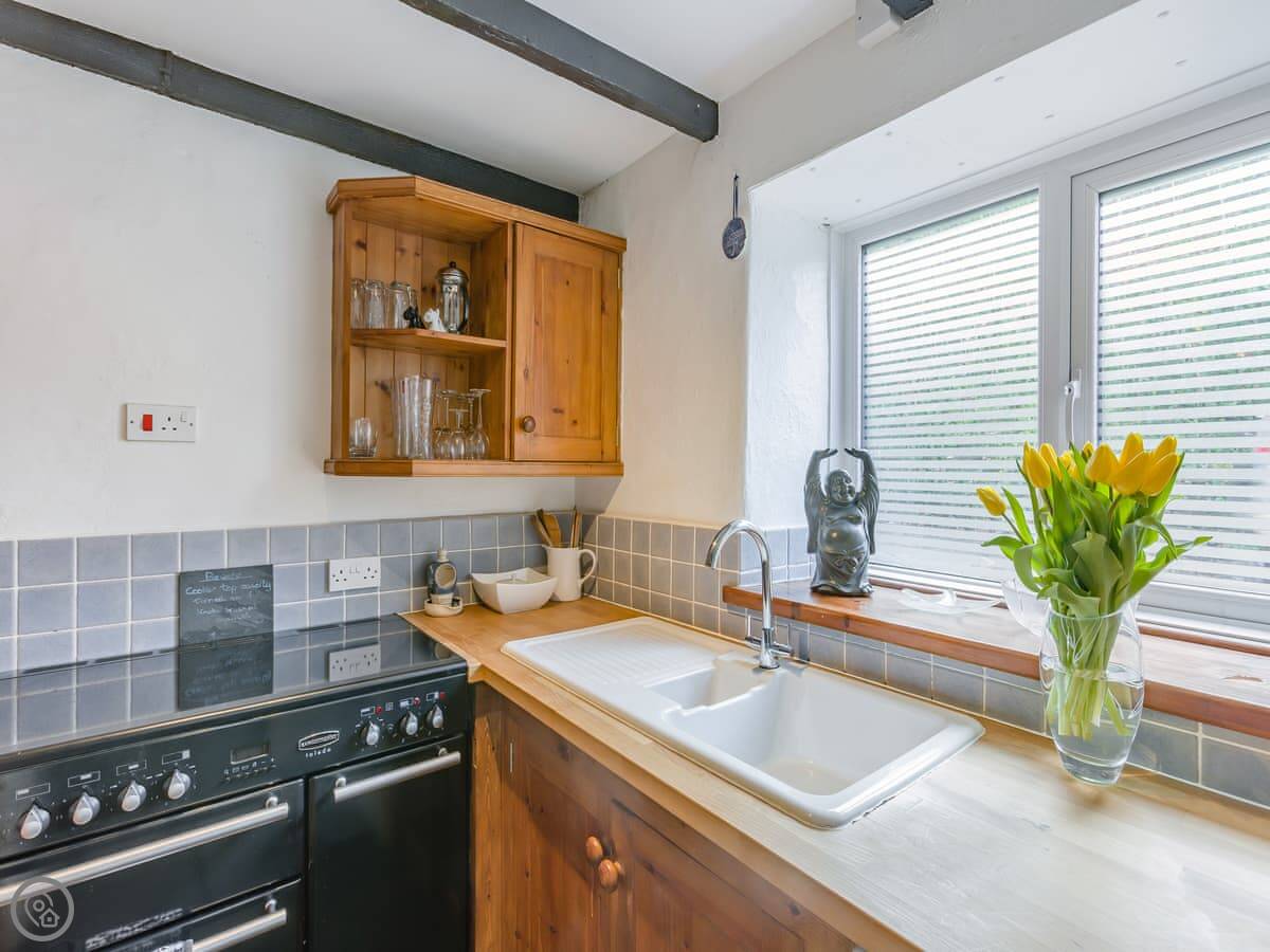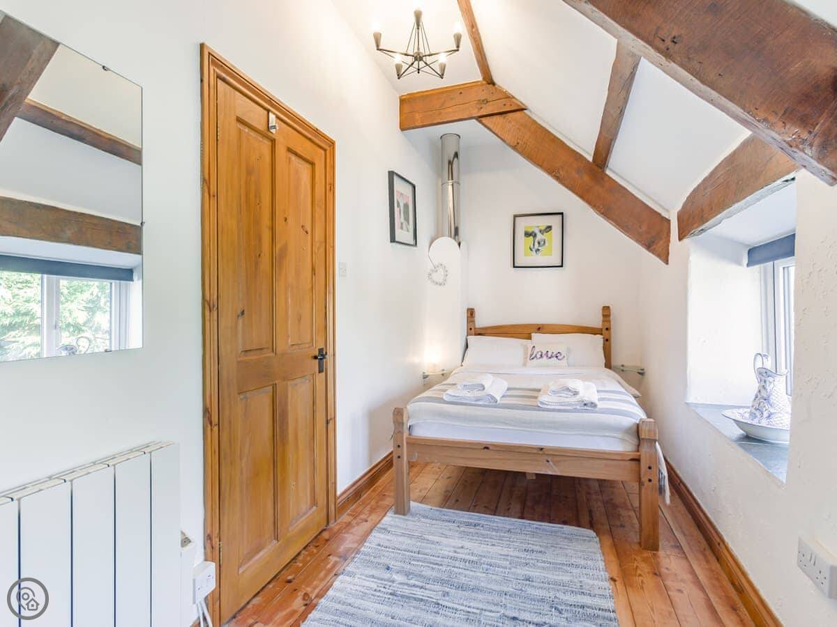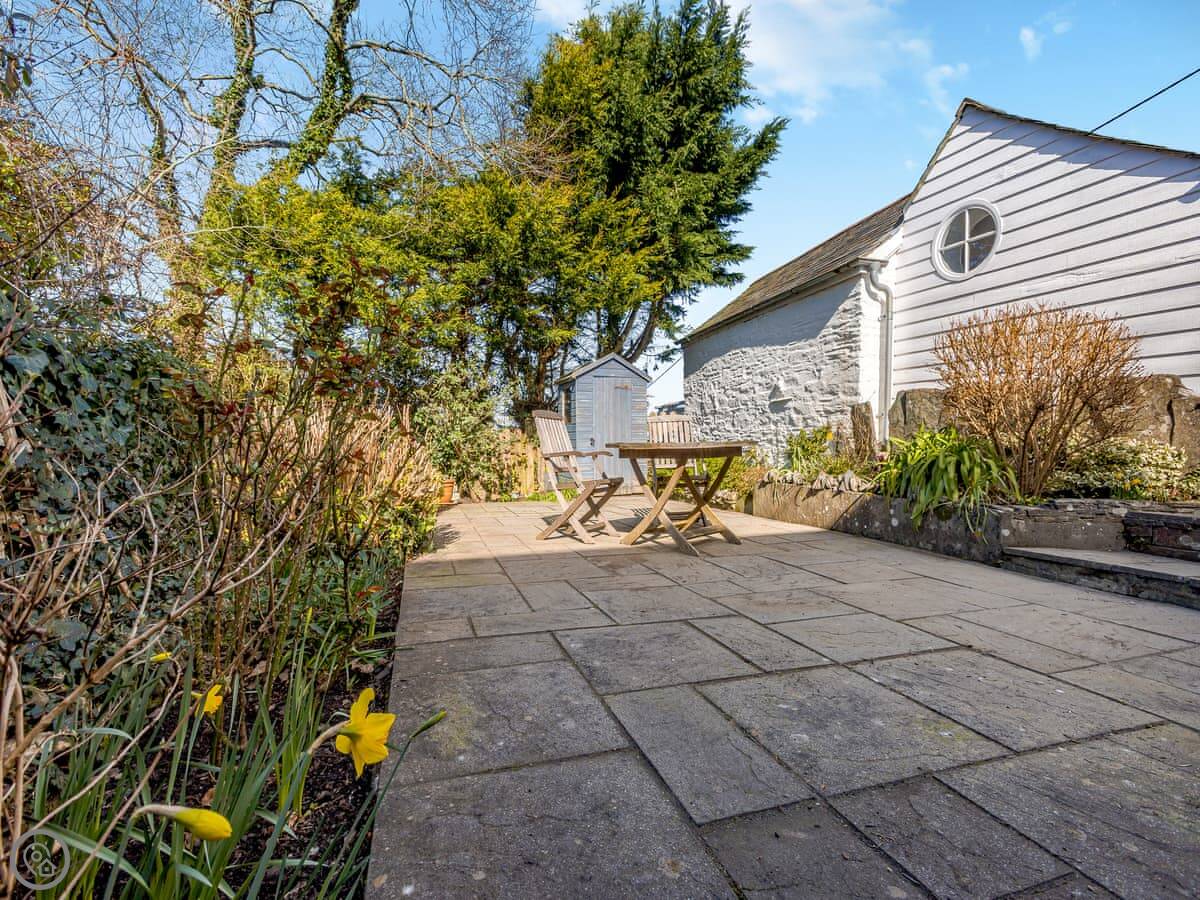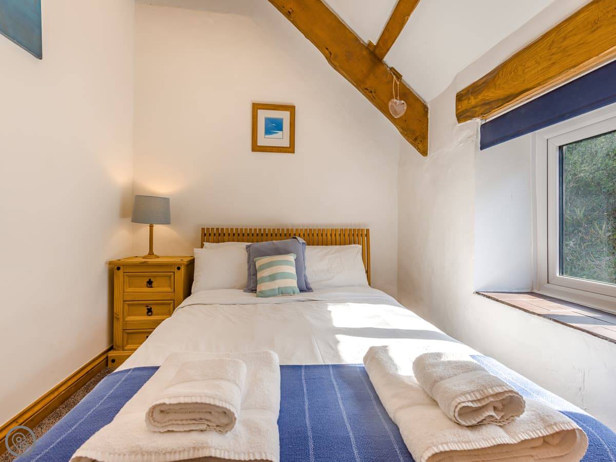 The garden is enclosed, which is good if you're bringing a dog or have kids. You can sit out there. Inside, there's a wood burner for cool evenings. The stairs are a typical cottage staircase, so they're a bit steep.