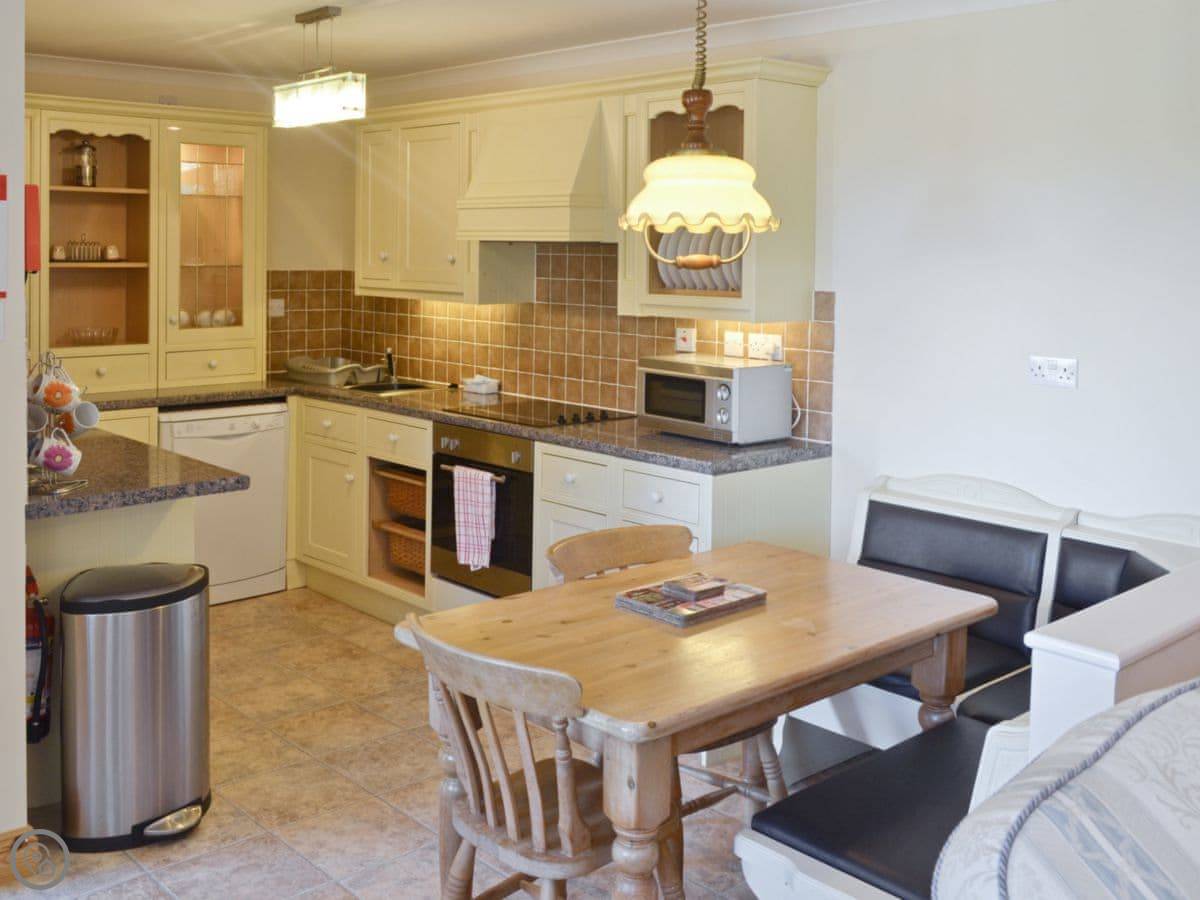You've got your own patio and garden area. It's not huge but it's yours, and it gets the sun in the evening. Bedding and towels are included. There's a washing machine, a dishwasher, and parking right outside.
