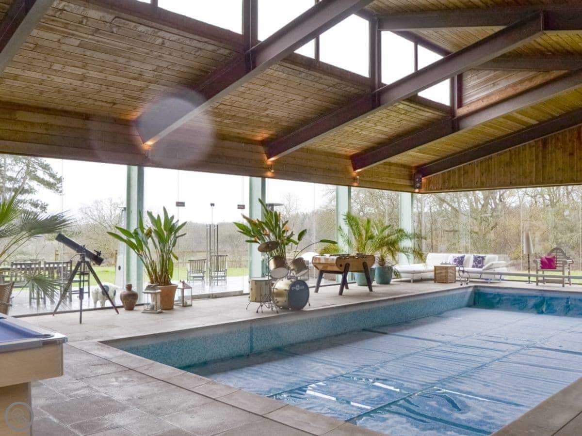 The other thing is the pool. It's indoors and heated. There's a games room next to it with a pool table and that. You can use the tennis court in the grounds too, if you fancy it.