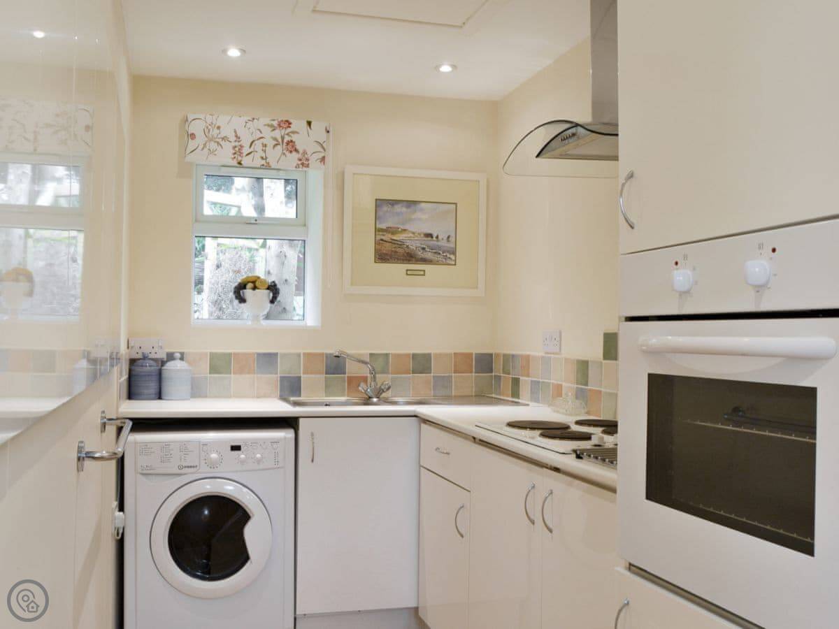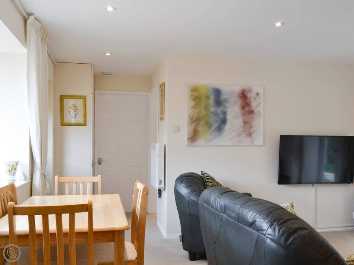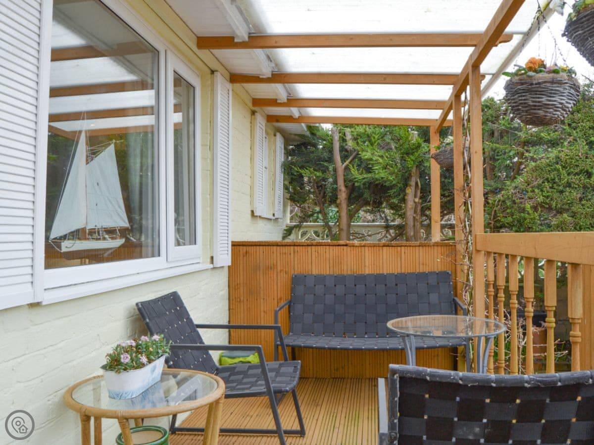 You get a garden at the back and a decked area at the front. The kitchen and living space are open plan. There's a washing machine, and bedding and towels are included. You can bring one dog. Parking is right there on the drive.