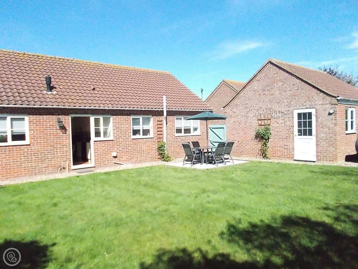 The Chase is in Walcott, Norfolk. It's a detached bungalow, so everything's on one level which is handy. There's an enclosed garden round the back.