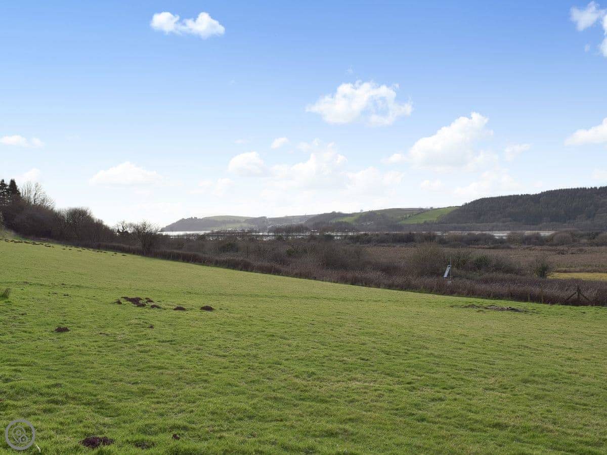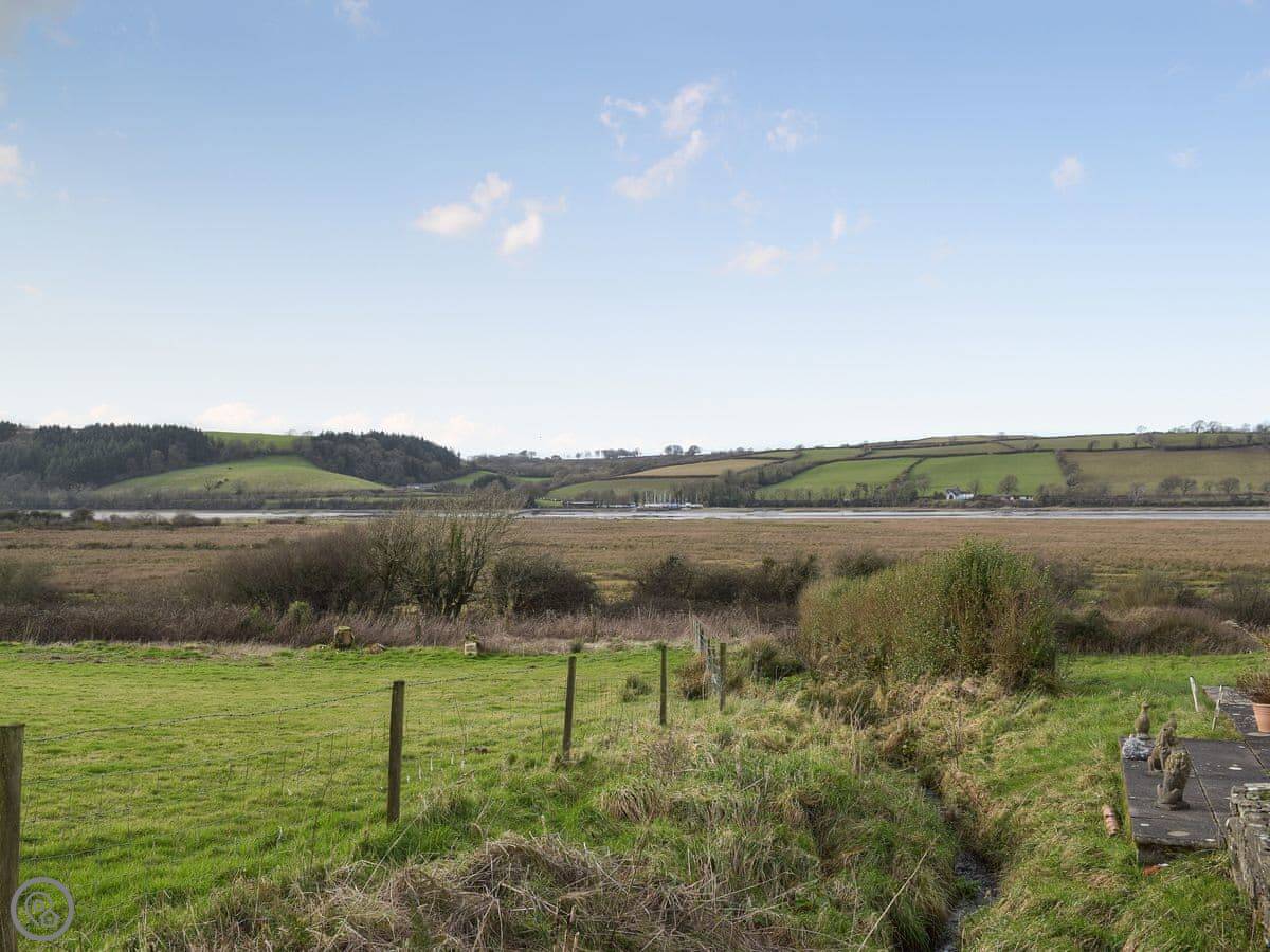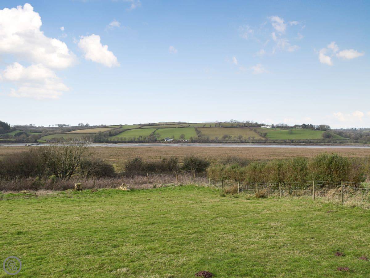 Wheelwright Barn is in Pant yr Athro, just outside Ferryside. It's a converted barn, so it's tall and open inside. There are big windows and doors that look straight out across the River Towy. You get a very clear view down to the water and over to Llansteffan.