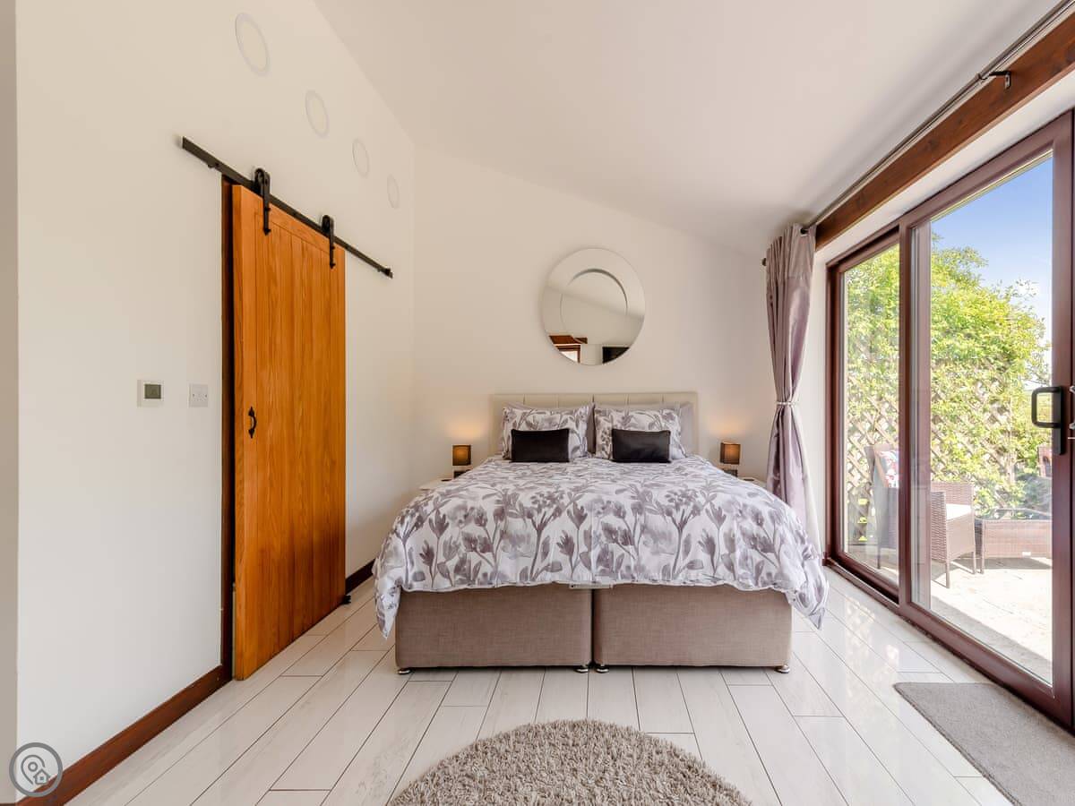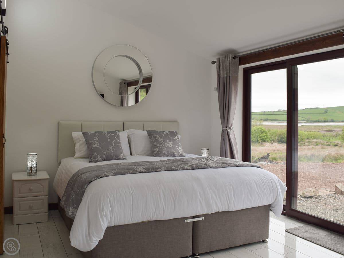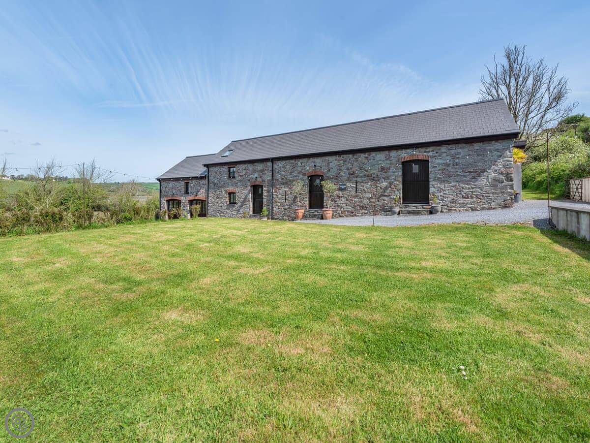 Wheelwright Barn is in Pant yr Athro, just outside Ferryside. It's a converted barn, so it's tall and open inside. There are big windows and doors that look straight out across the River Towy. You get a very clear view down to the water and over to Llansteffan.