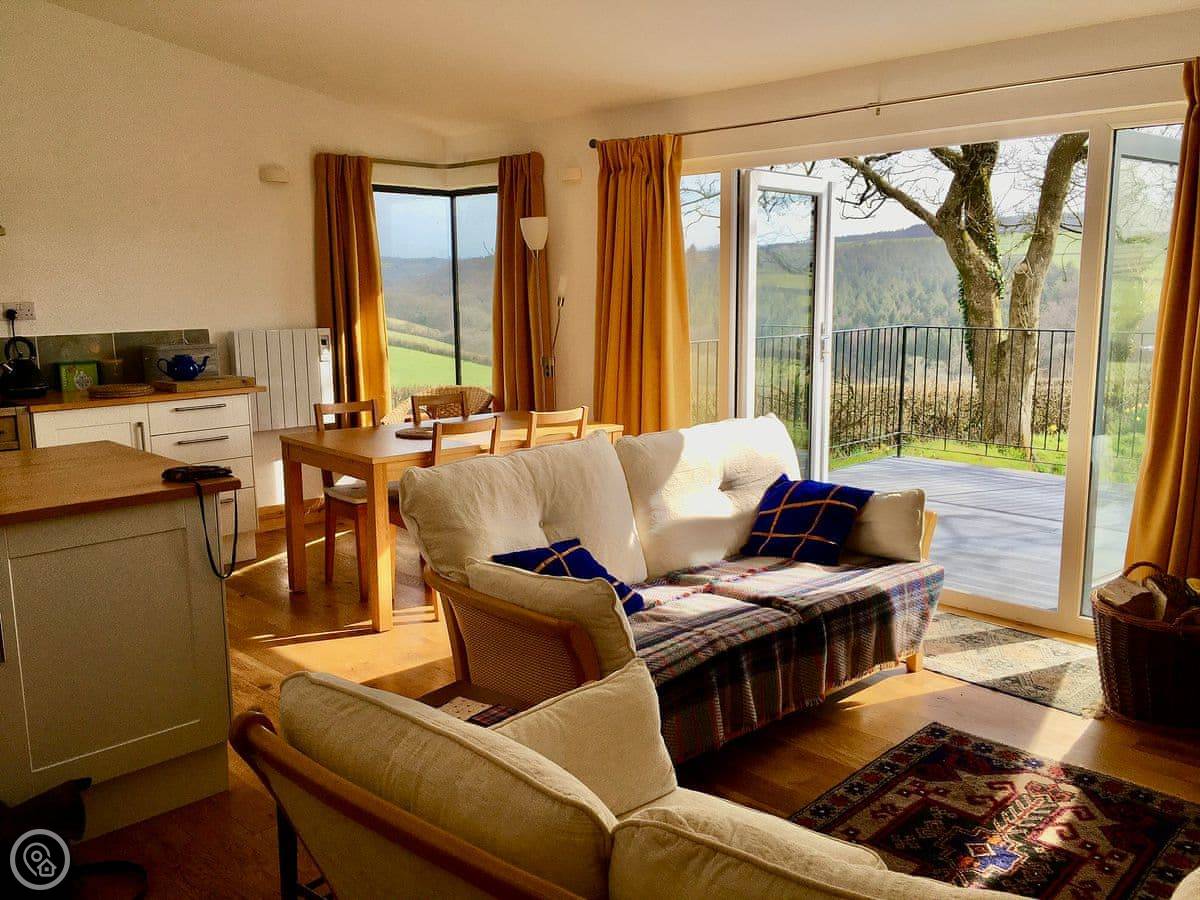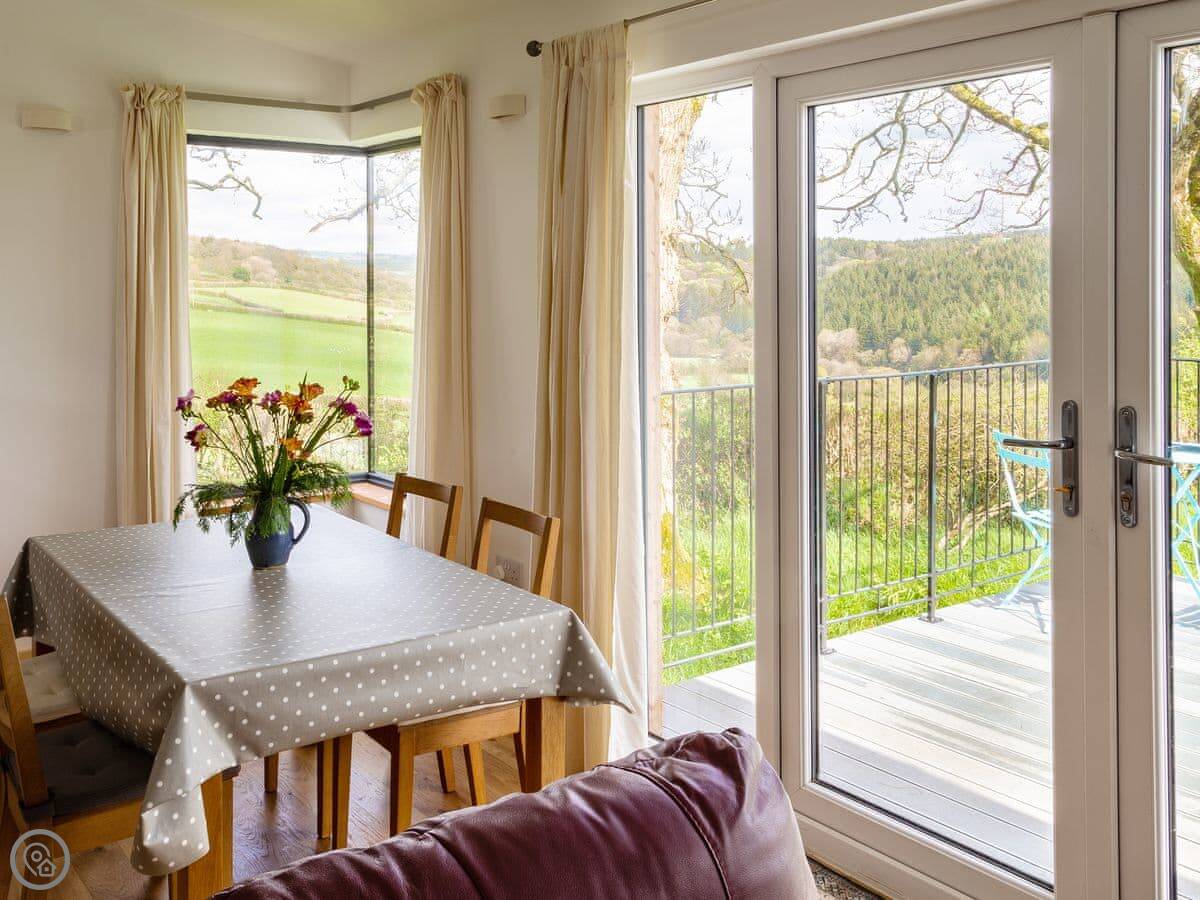 Perfect for year-round holidays and romantic breaks, The Platt is a detached, timbered, single-storey property at the end of long driveway. A lovely hideaway for couples of all ages looking for a very rural, quiet location, tucked away in a peaceful spot, and away from the hustle and bustle of everyday life. A feature corner window in the dining area provides a spectacular view of surrounding countryside, across river valleys, woodlands, and fields. The large, spacious balcony is ideal for warm sunny days and evenings outside. In the living room, a cosy wood burner can be a welcome addition on a chilly evening or if the look of a warm fire just takes your fancy. The property is deceptively spacious, light, bright and airy with big French windows leading from the open plan living accommodation onto the decked balcony. French windows also open out from the double bedroom, so that you can lay in bed and enjoy unspoilt views of the Inny and Tamar River Valleys, and the quietness of the countryside. The kitchen is modern with plenty of workspace, cupboards, and a large Range cooker. There are wooden and tiled floors throughout and carpet in the bedroom.