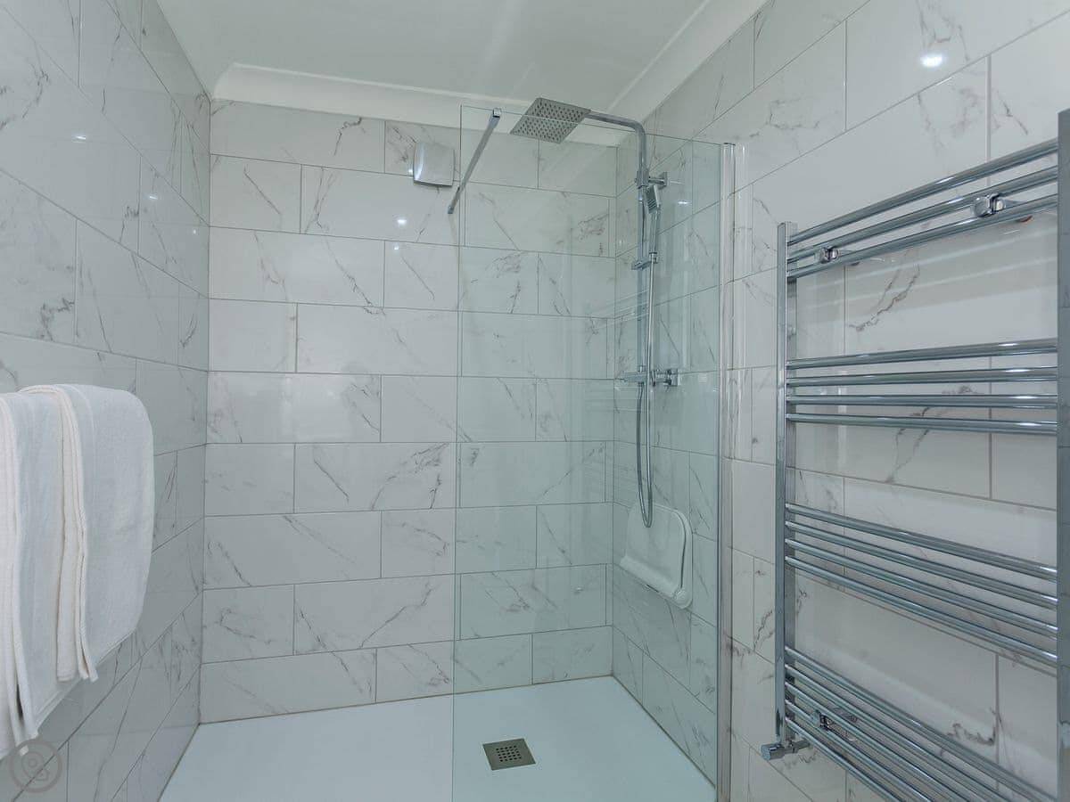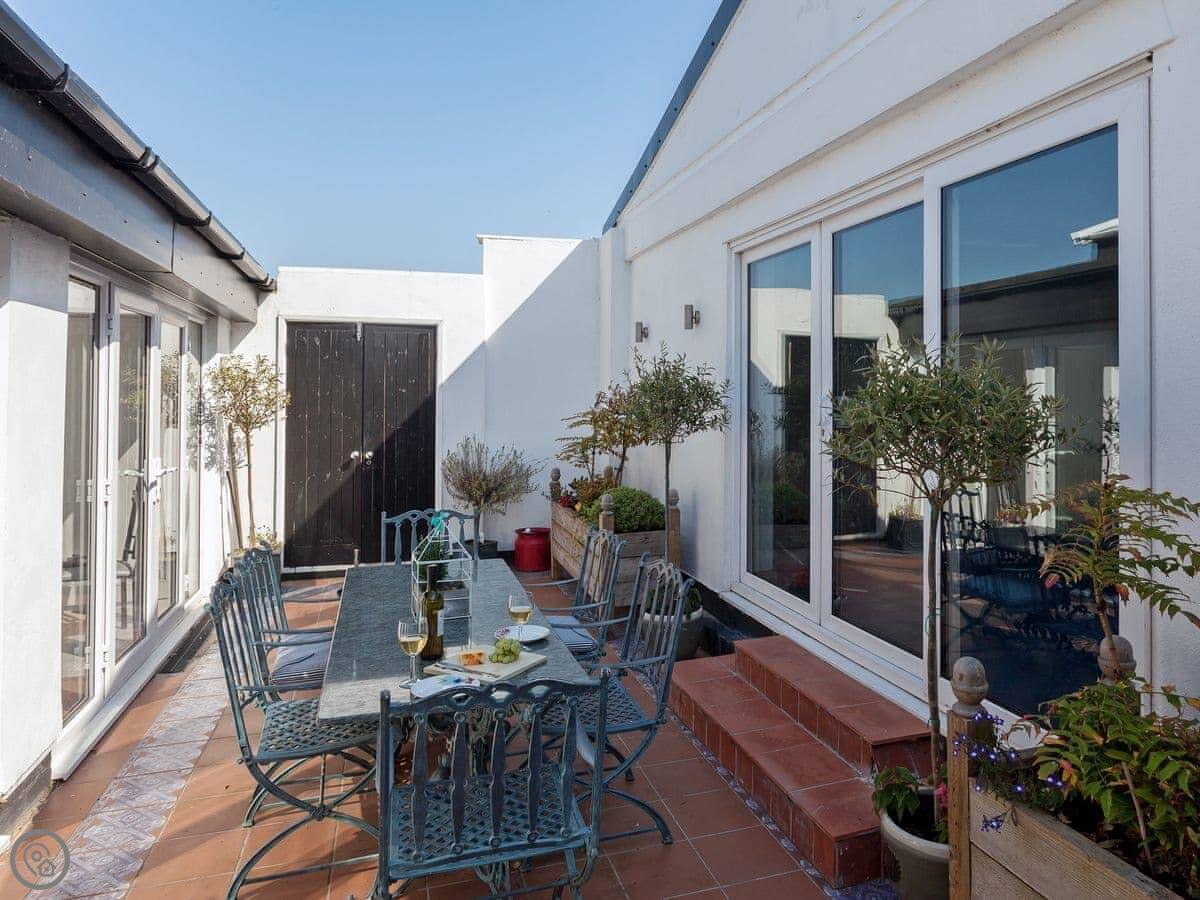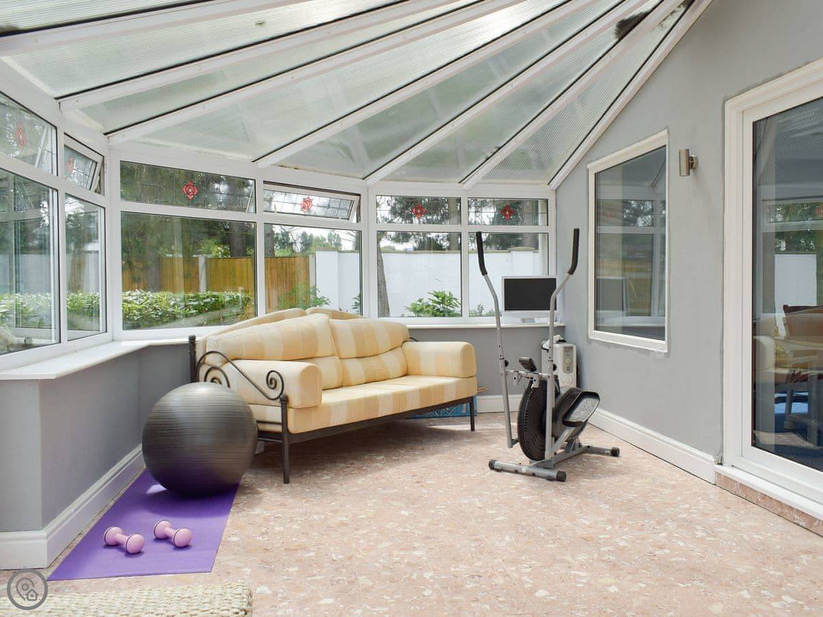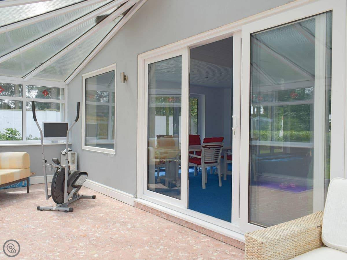 The main thing is you get access to a private leisure building. There's a good sized indoor swimming pool. It's warm. Outside, there's an enclosed patio garden with a barbecue.