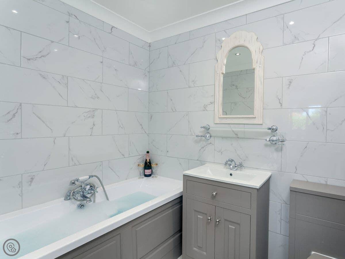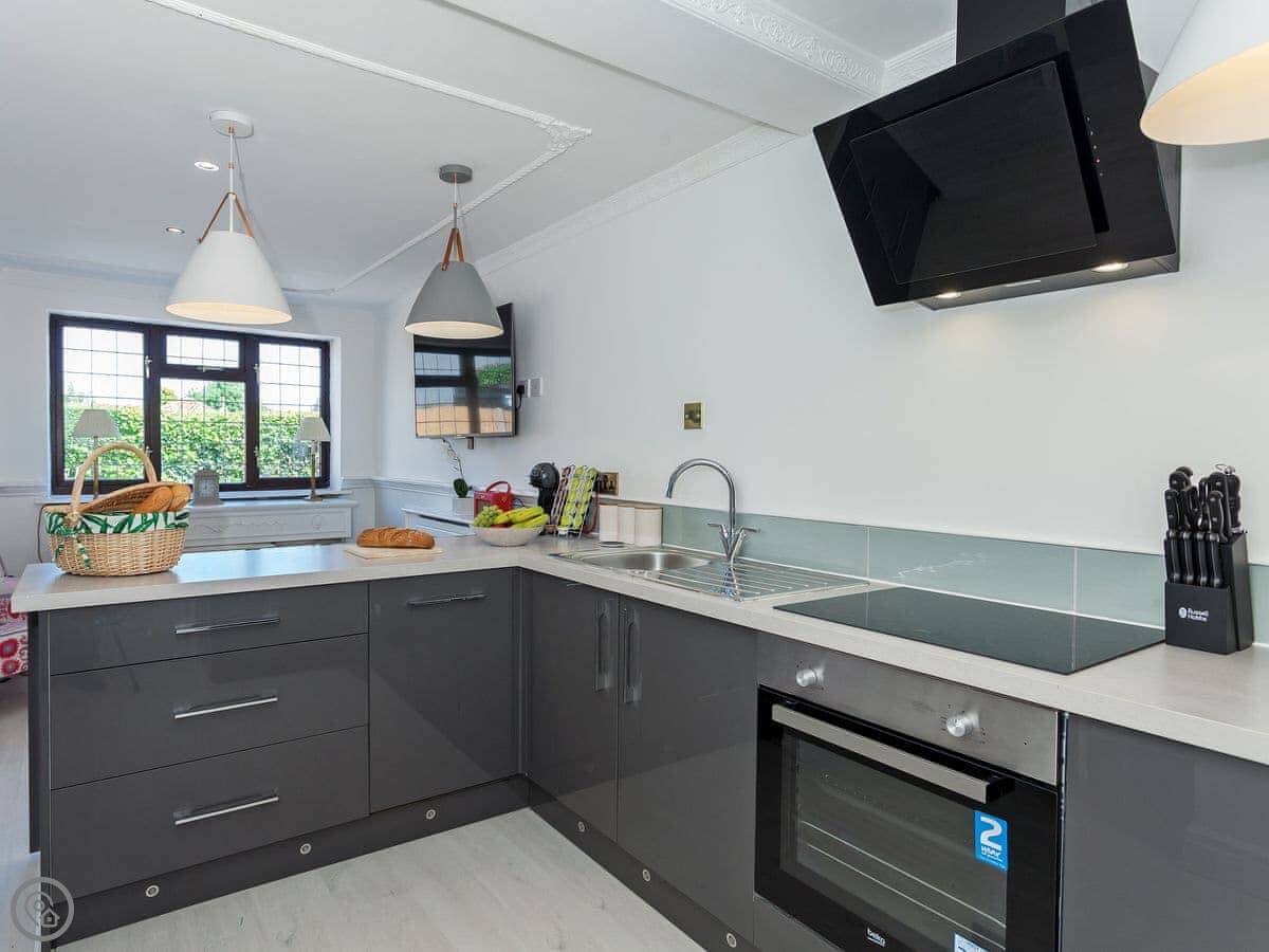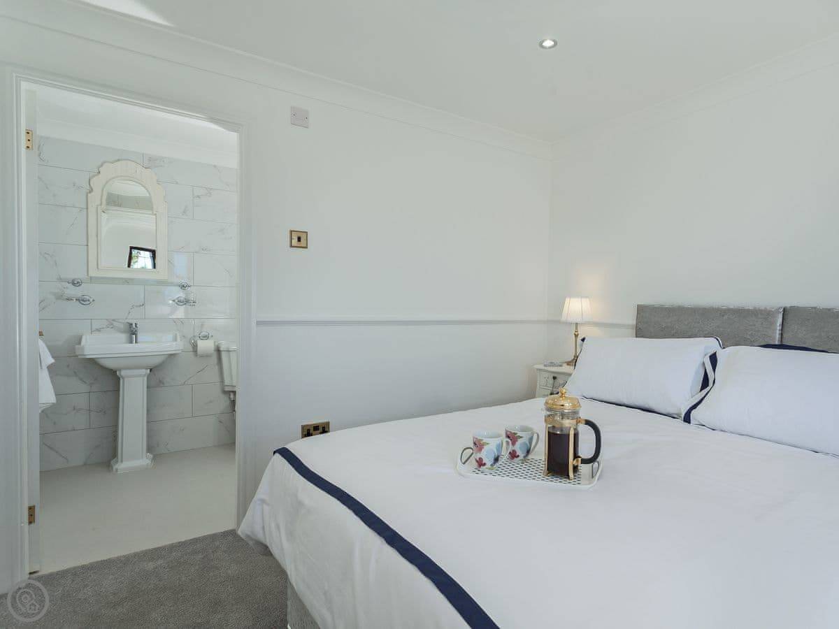 The cottage is for four people. Two bedrooms, both with their own bathroom. It's a 5 Star place, which means it's been finished to a high standard. It's comfortable. The kitchen and living area are open plan.