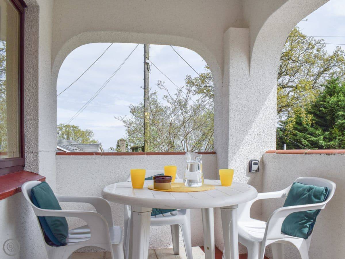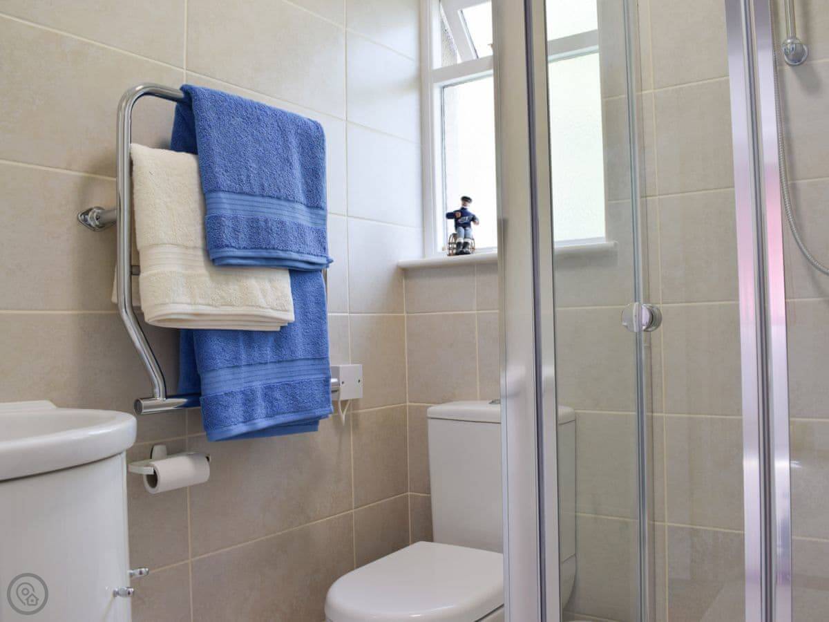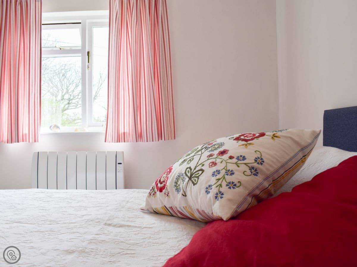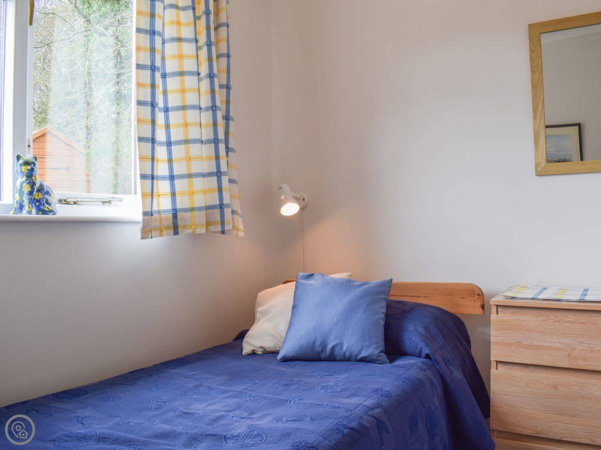 It sleeps three. Two bedrooms, one shower room. It’s got a 3 Star rating, which is accurate. It’s comfortable and clean. The garden is lawned, and part of it’s left to grow a bit wild in the summer. There's a patio with a table and chairs.