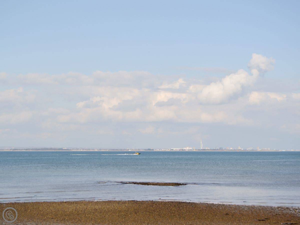 There’s a small, quiet shingle beach about a three minute walk away. You get a clear view across the Solent to Portsmouth from there. You'll see the Spinnaker Tower and the ships going in and out. Red squirrels are common around here. You'll probably see one.