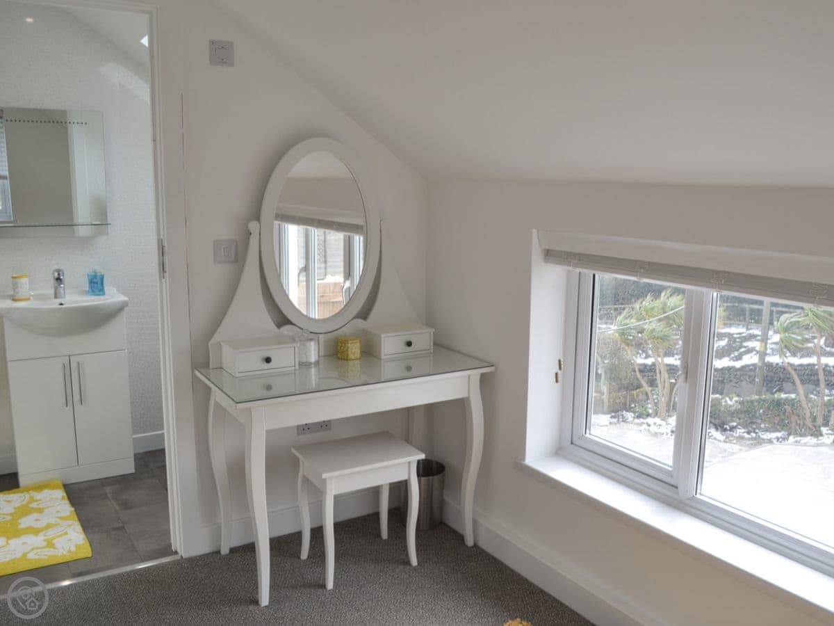 Penfose Apartment is on the second floor above a garage, about a ten-minute walk uphill from the harbour in Mevagissey. It’s an apartment, so you share the building, but the space is all yours.