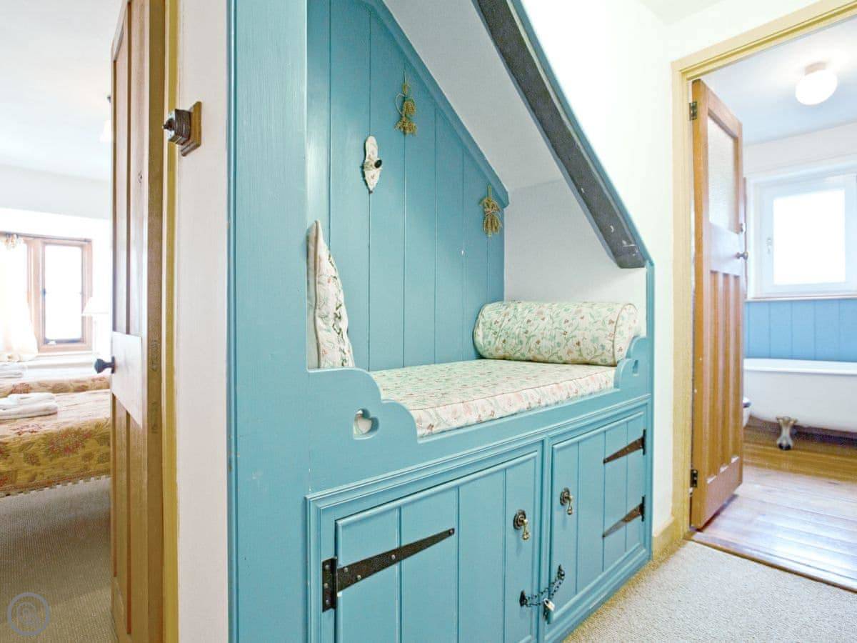 This characteristic, 15th-century cottage with its thatched roof and unusual feature of terracotta tiled exterior make this a unique holiday destination. Although having all the old charm outside, internally the cottage has been finished to a very good standard and provides a comfortable and convenient interior. The semi-detached cottage is situated in the Exmoor town of Dulverton not far from the banks of the River Barle. So, whether you want to wander into the town centre, enjoy one of the local pubs and restaurants, or sit by the river and watch the world pass by, all this can be done without having to step foot in the car. There is superb scenery and walking on the South West Coastal Path or inland on Exmoor and many other places to visit to make a memorable holiday. The Victorian villages of Lynmouth and Lynton, famous for the Watersmeet Gorge, valley of the rocks and the funicular cliff railway are close by. Looking towards Minehead, there is the promenade to enjoy a relaxing walk and an ice cream, as well as having a good array of shops and other amenities. The West Somerset Railway is worth a visit for those with an interest in steam engines. Dunster Castle and village, with its beautiful terraced gardens, Deer Park and Mill will make for an interesting day out as well as Porlock Weir. There are beaches at Dunster and Blue Anchor for all to enjoy. Shop, pub and restaurant 10 yards.