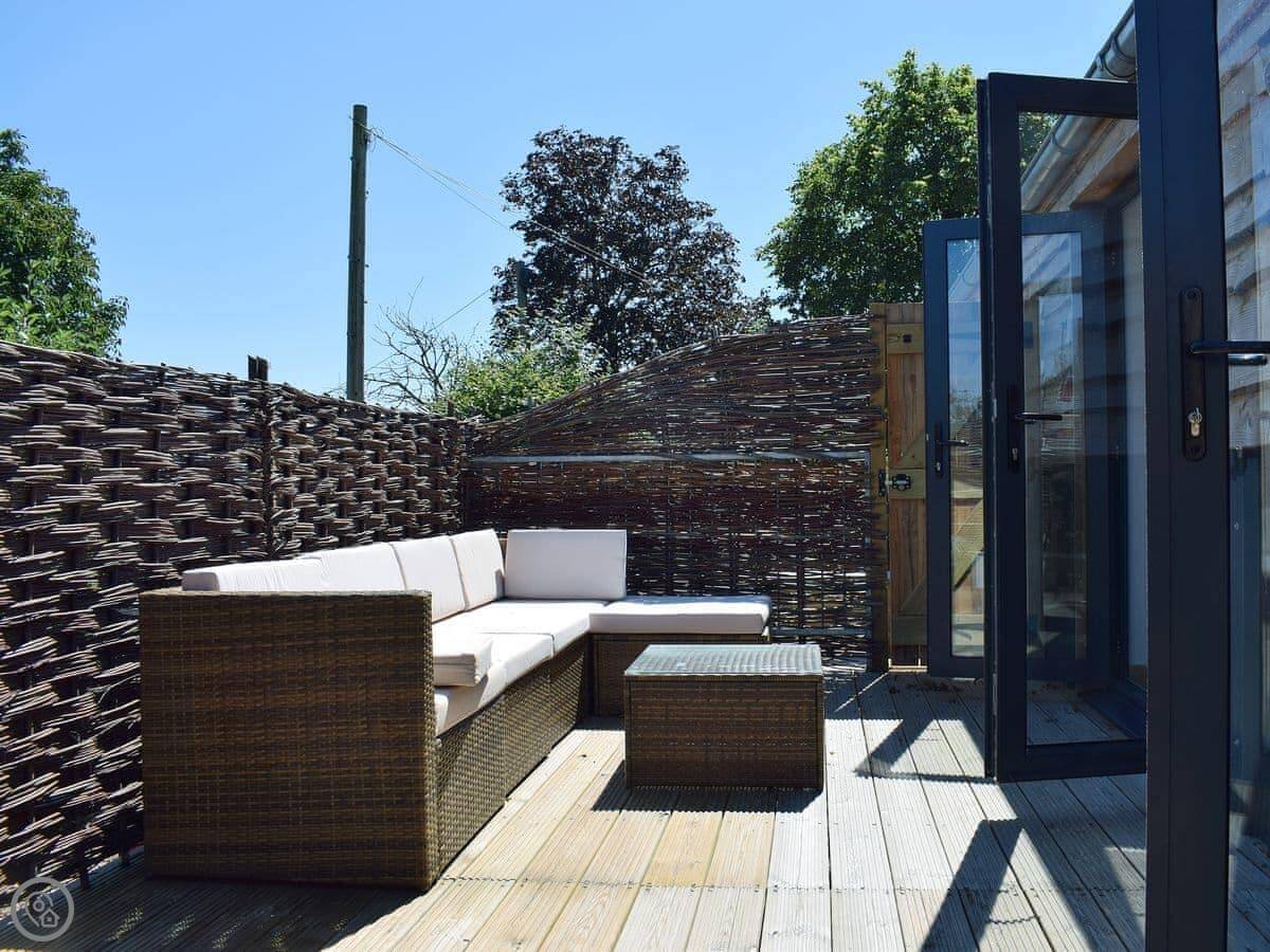 Dornfelder is a place called Rossiter's Vineyard Barns in Wellow, about three miles from Yarmouth. It's all on one level, terraced with a couple of other cottages. There's a big enclosed lawn garden you get to yourselves.