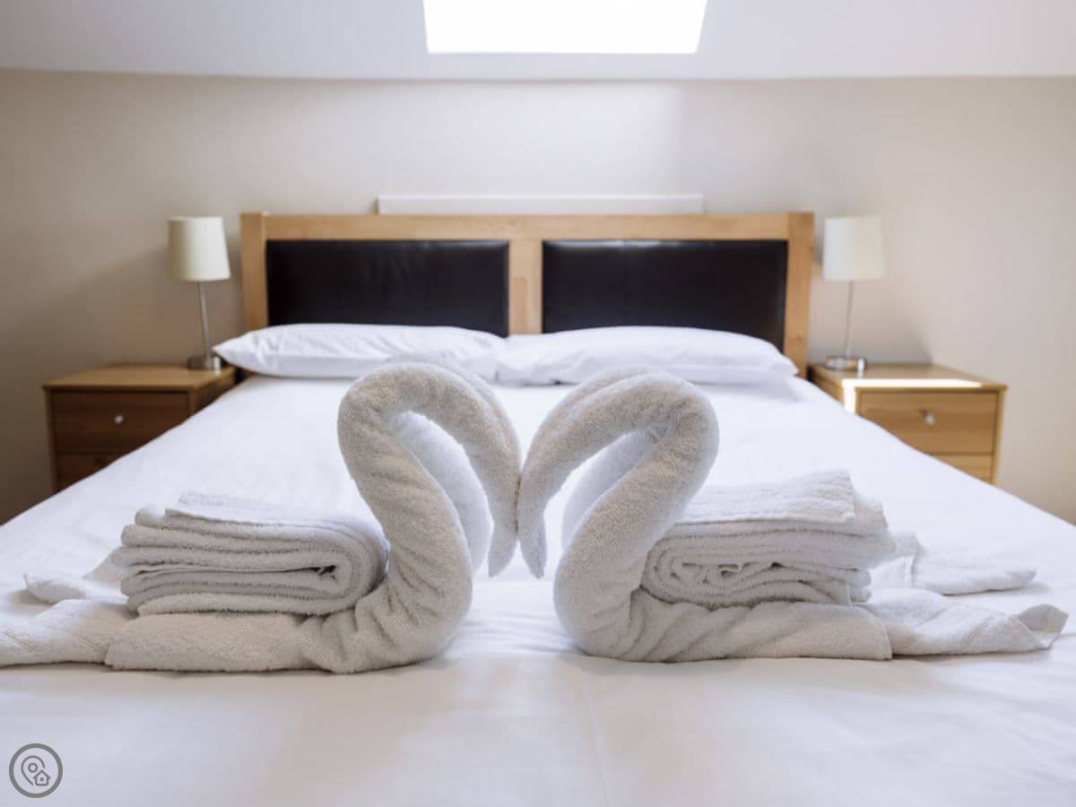 For facilities, it has a woodburning stove, WiFi, a TV, a dishwasher, and a washing machine. Bedding and towels are included. There's on-site parking and an electric vehicle charger. You can store bicycles. We allow one pet. We provide a cot and highchair.