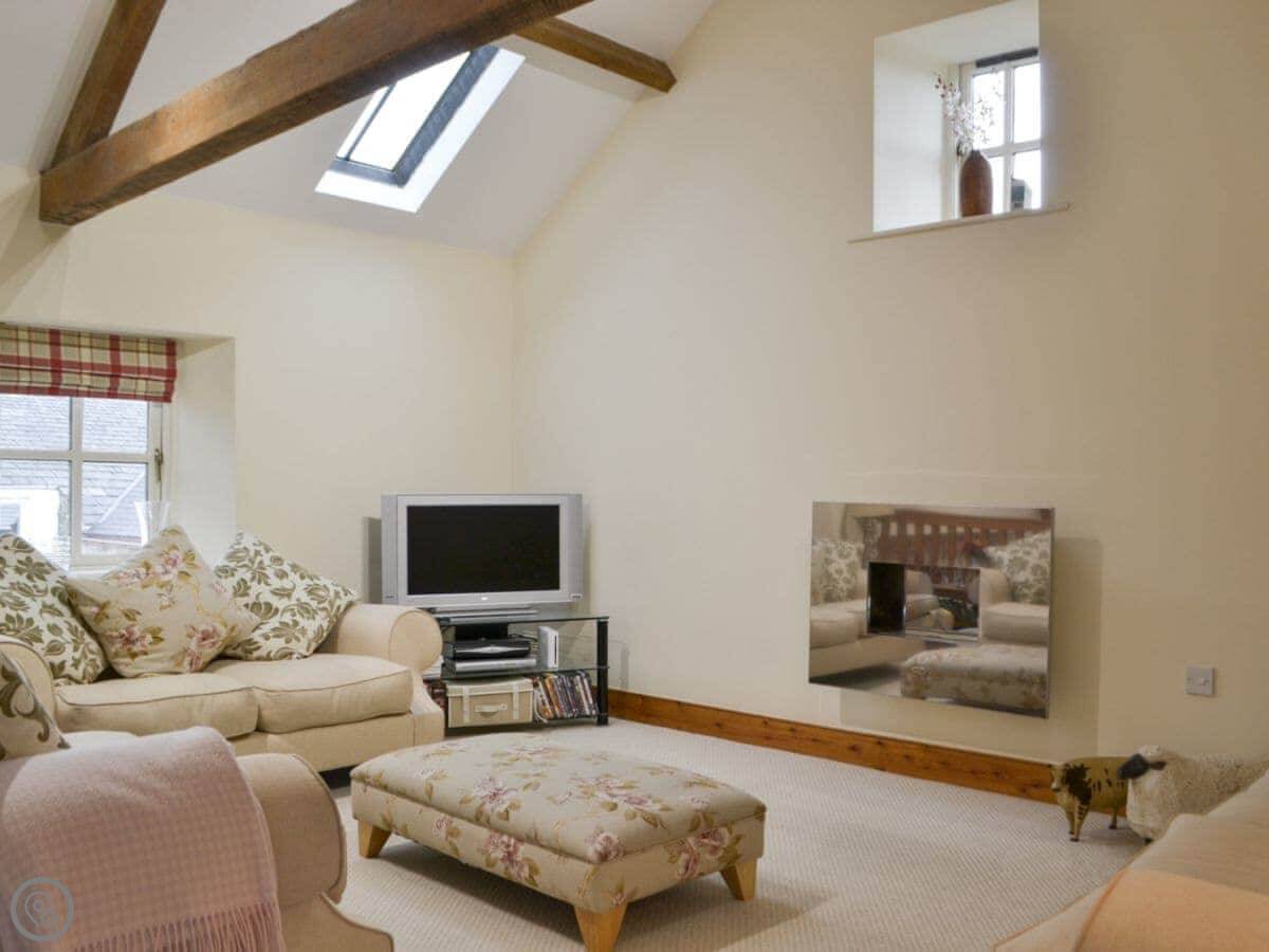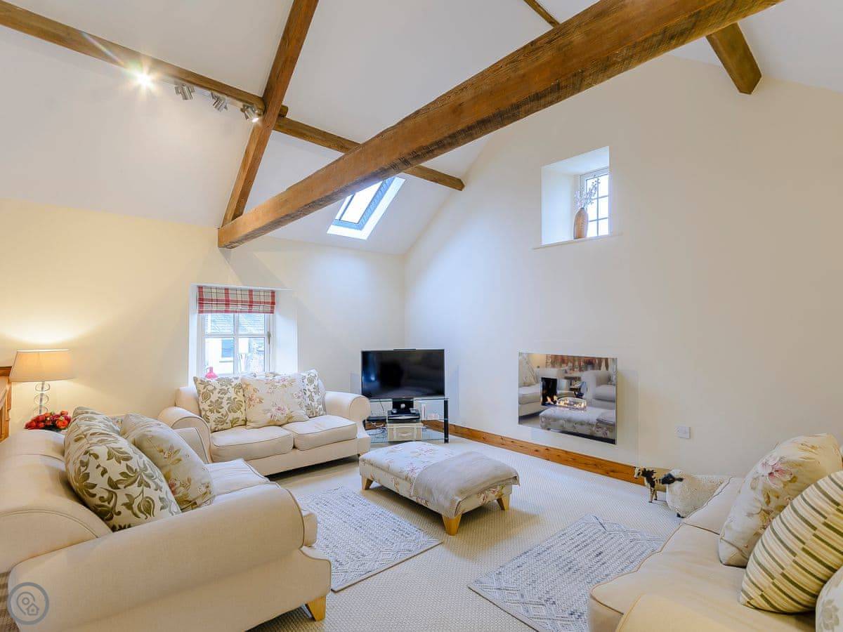 The barn is in Brough Sowerby, near Kirkby Stephen. It's the Eden Valley, so it's quiet. You're about 15 minutes from the M6 if you're coming off there. The Lake District is maybe 40 minutes' drive to the west. We're on a farm, so you'll see sheep and maybe hear tractors.