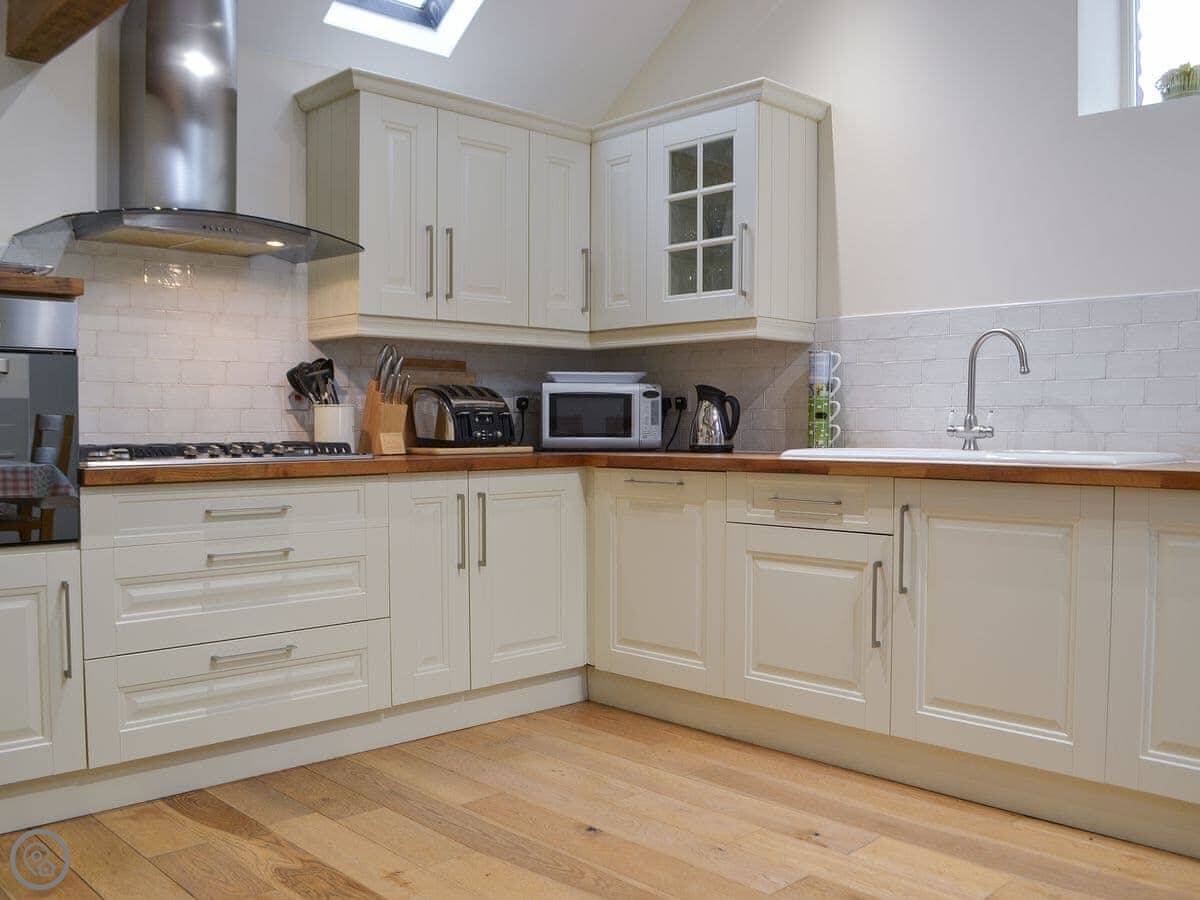 Westwood Barn is a converted barn on our working farm. It sleeps eight, which sounds big, but it's not a mansion. It's just a decent size. The rating is 4 Star.