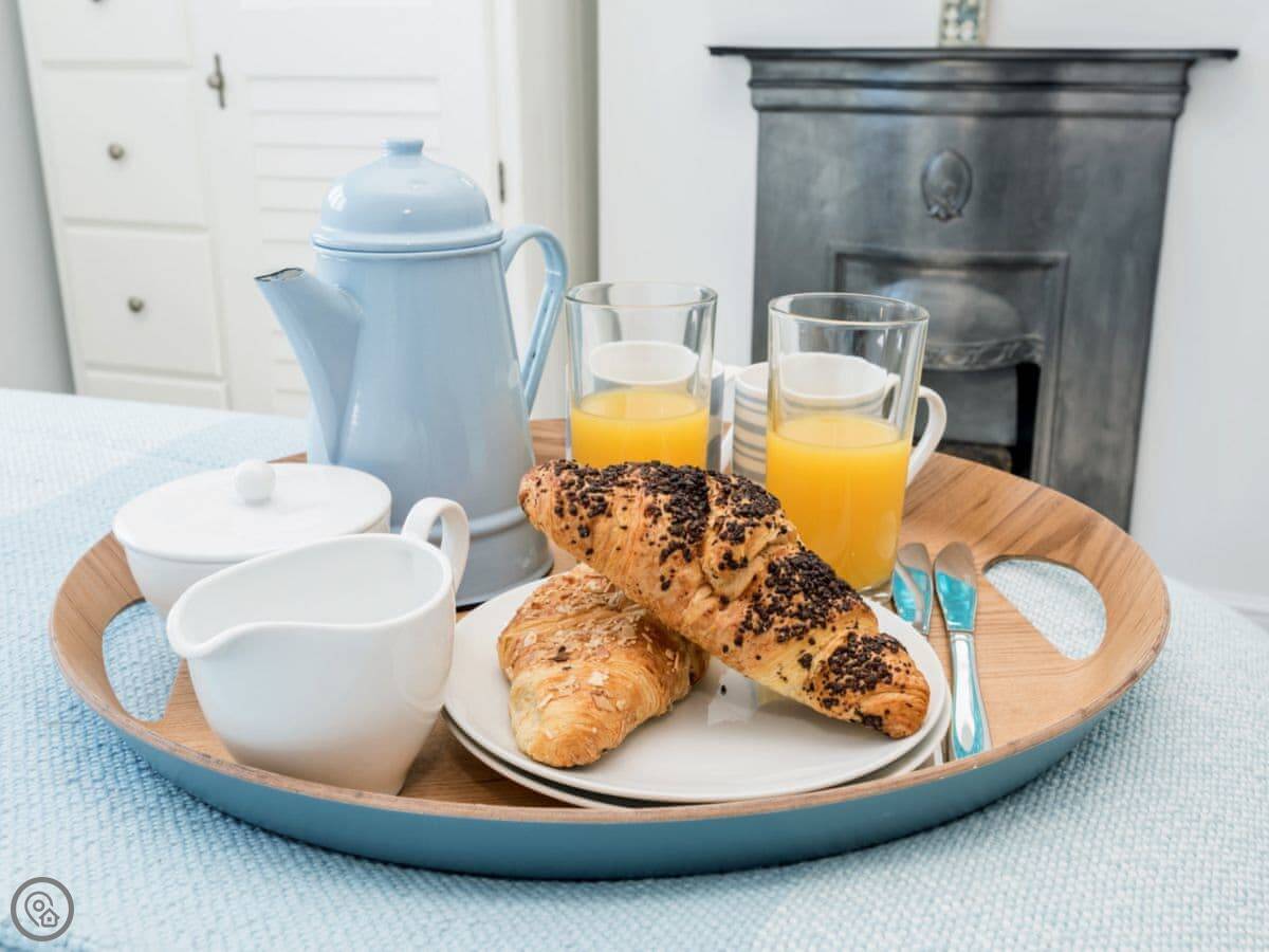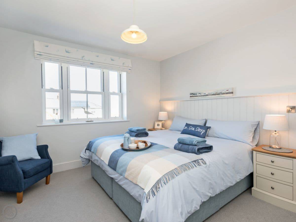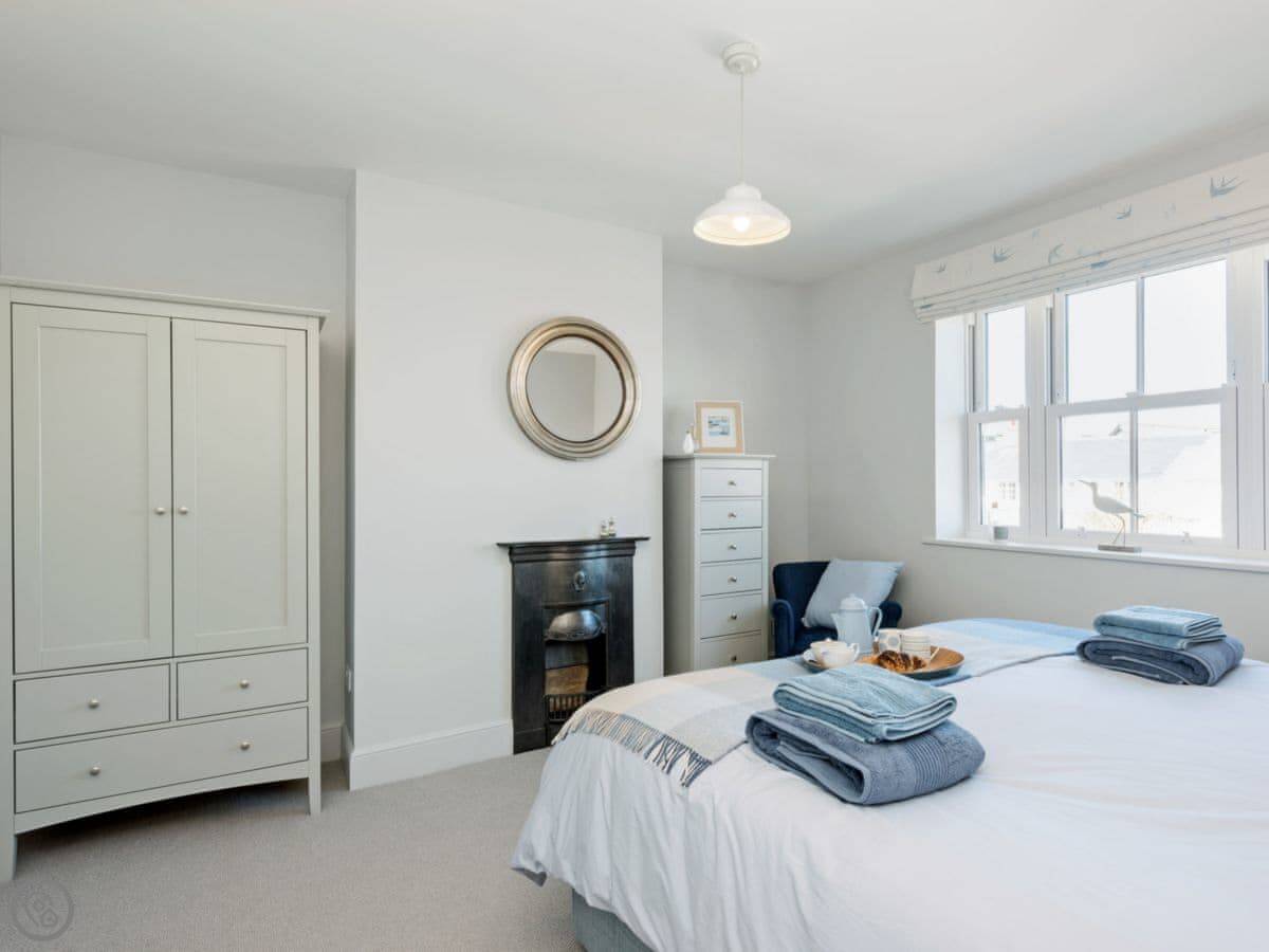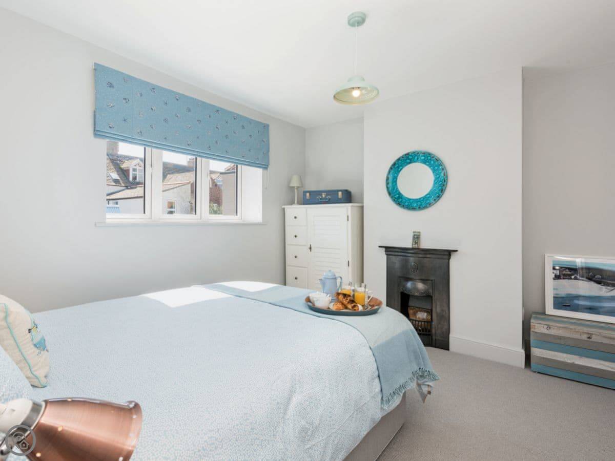 It sleeps eight, in four bedrooms. There are three bathrooms. It’s got a five star rating. It’s been renovated, so it should have everything you need. The kitchen is big, with bi-fold doors that open onto a private courtyard garden. There's a wood burner in the living room.