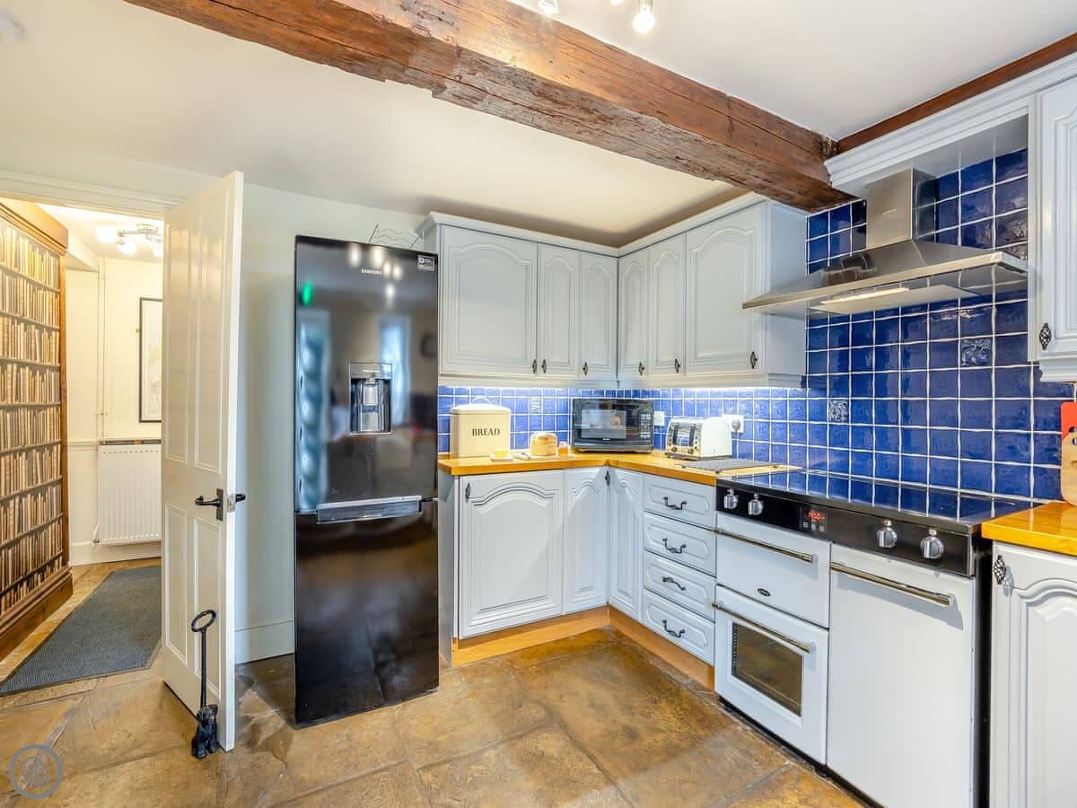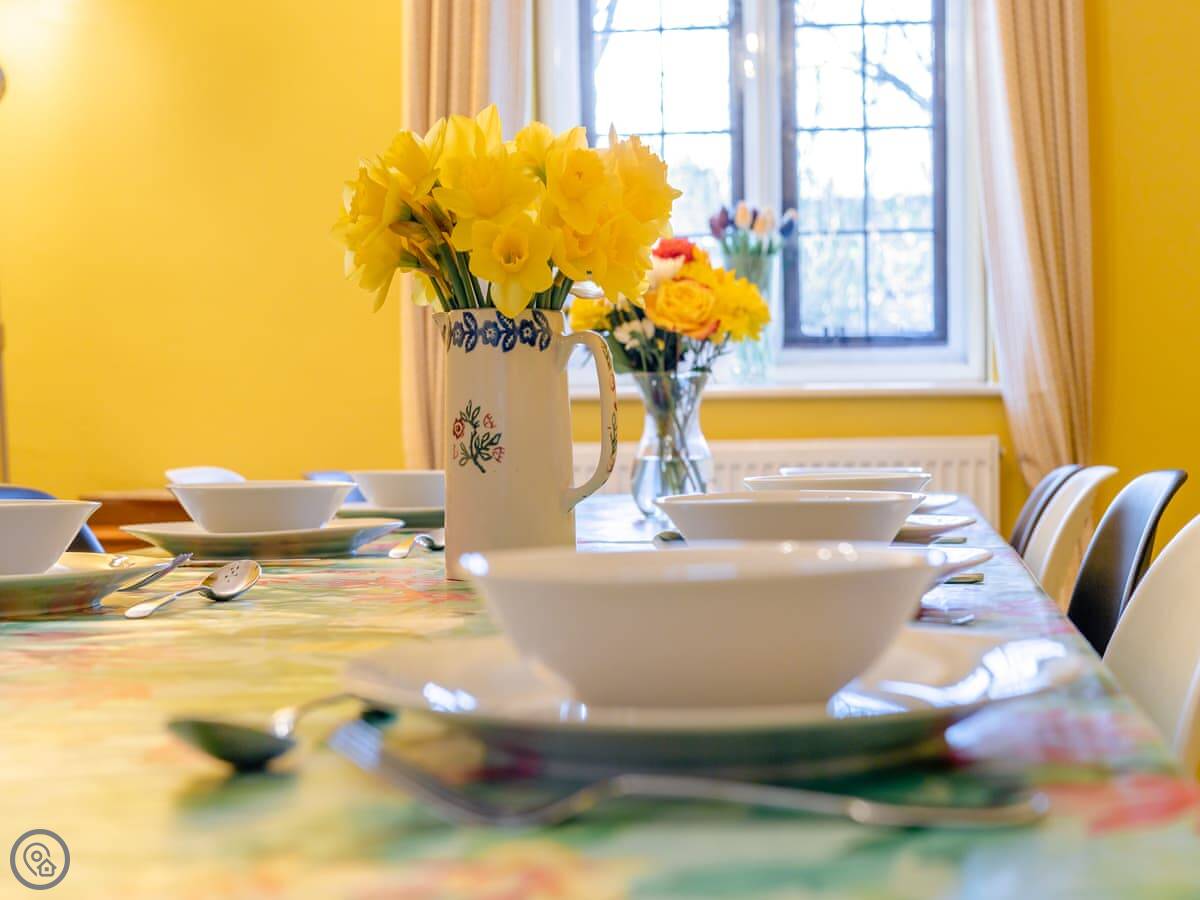 Inside, there's a wood burning stove. All the basics are covered: plenty of TVs, WiFi, dishwasher, washing machine. Bedding and towels are included. There's a cot and highchair if you need them. Also, there's an electric vehicle charger on the parking area.