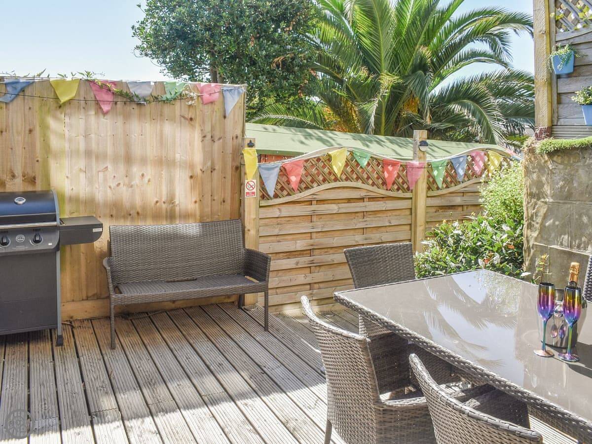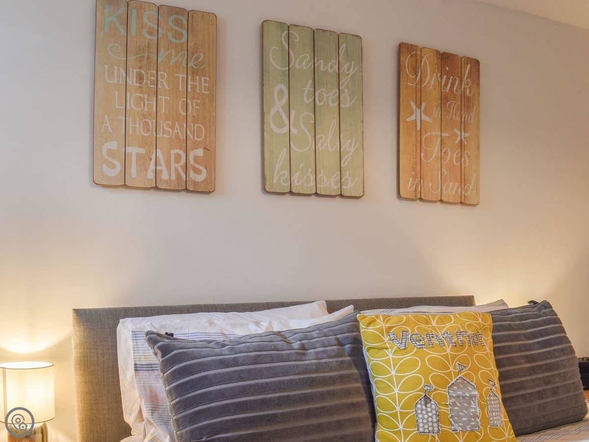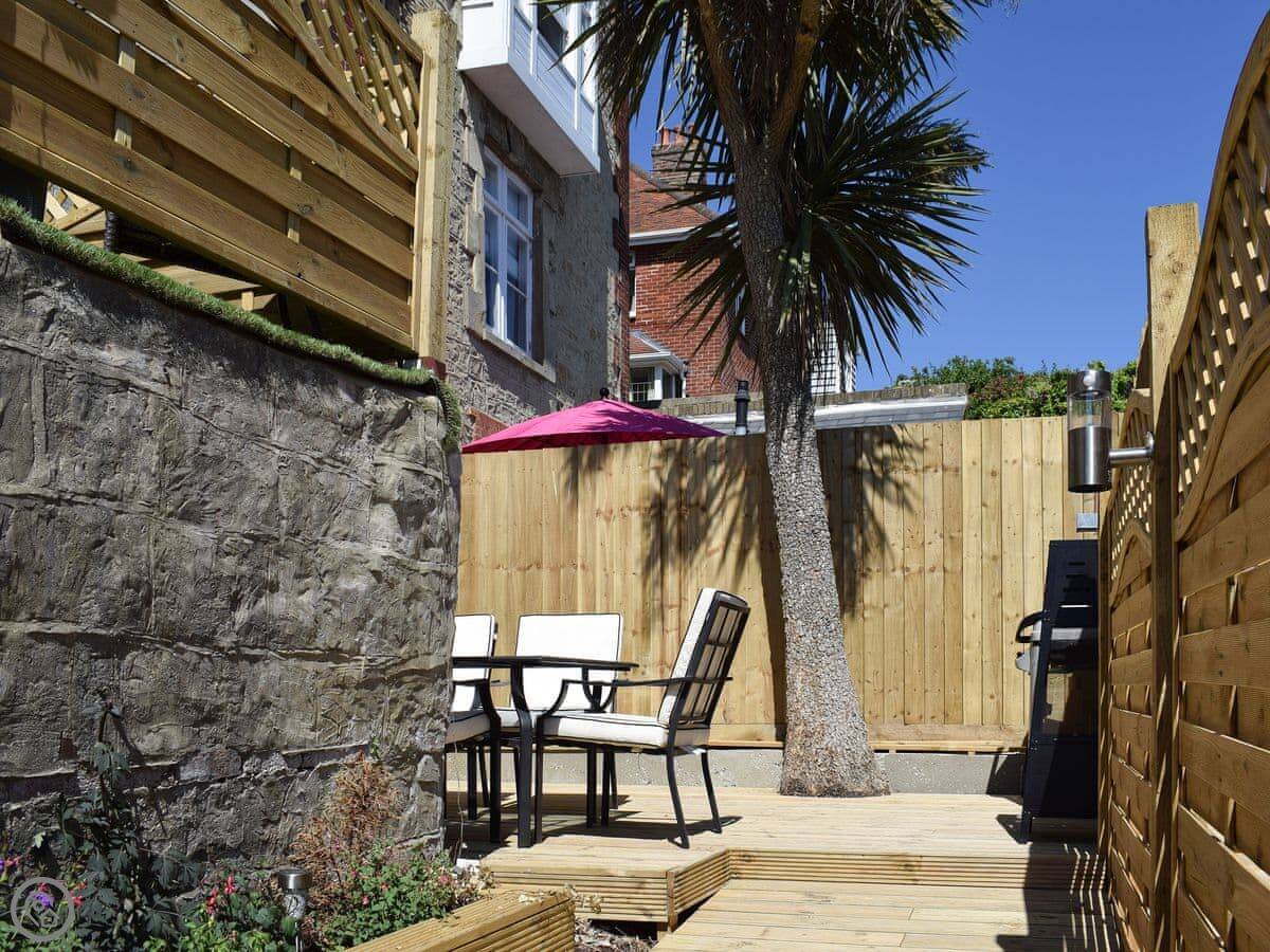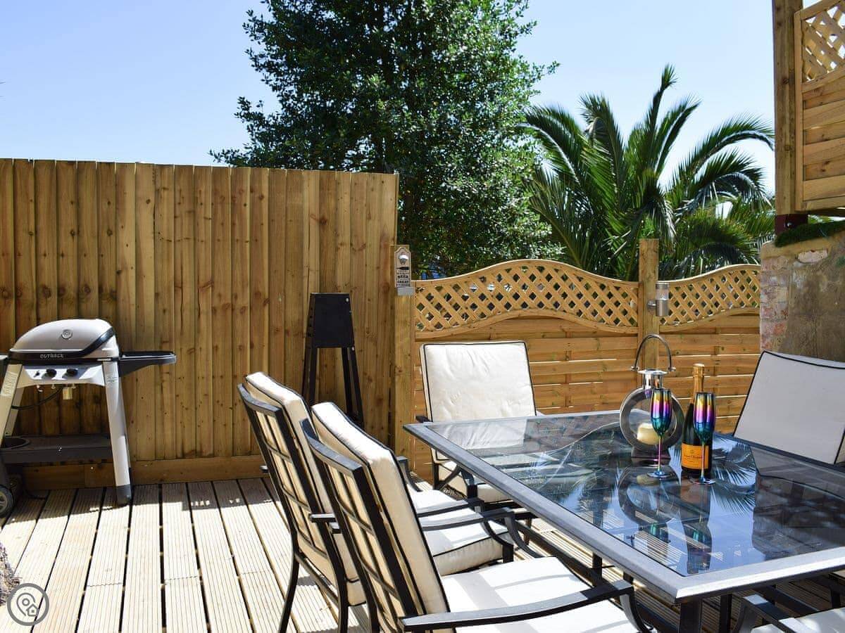 It sleeps five. Two bedrooms, one bathroom. It was done up a few years ago so it’s in good order. The rating is 4 Star, which means it’s comfortable and well-equipped. You have a private decked courtyard at the back.