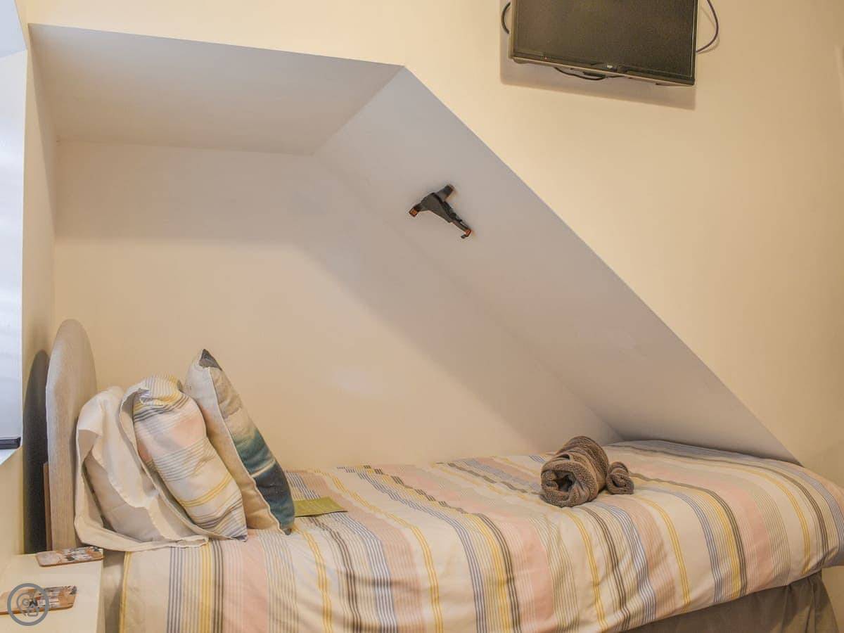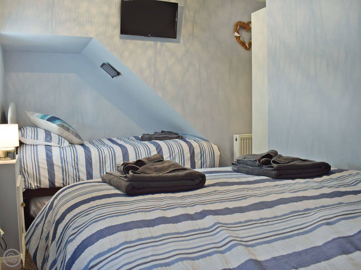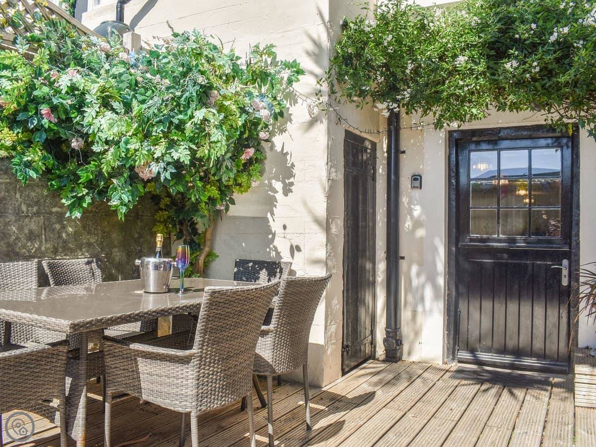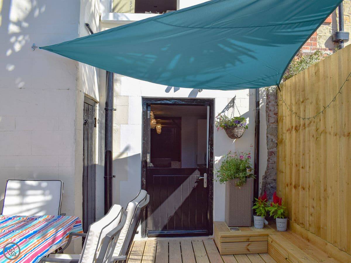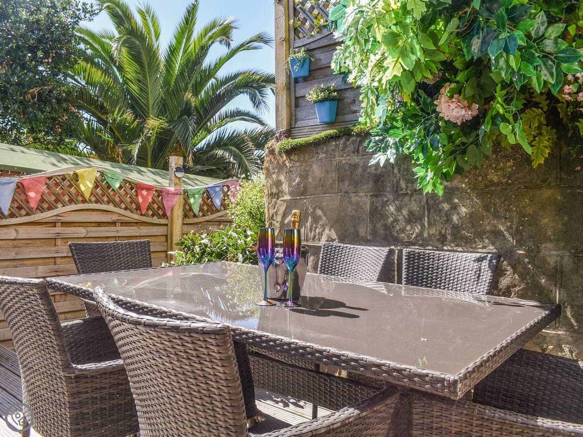 It sleeps five. Two bedrooms, one bathroom. It was done up a few years ago so it’s in good order. The rating is 4 Star, which means it’s comfortable and well-equipped. You have a private decked courtyard at the back.