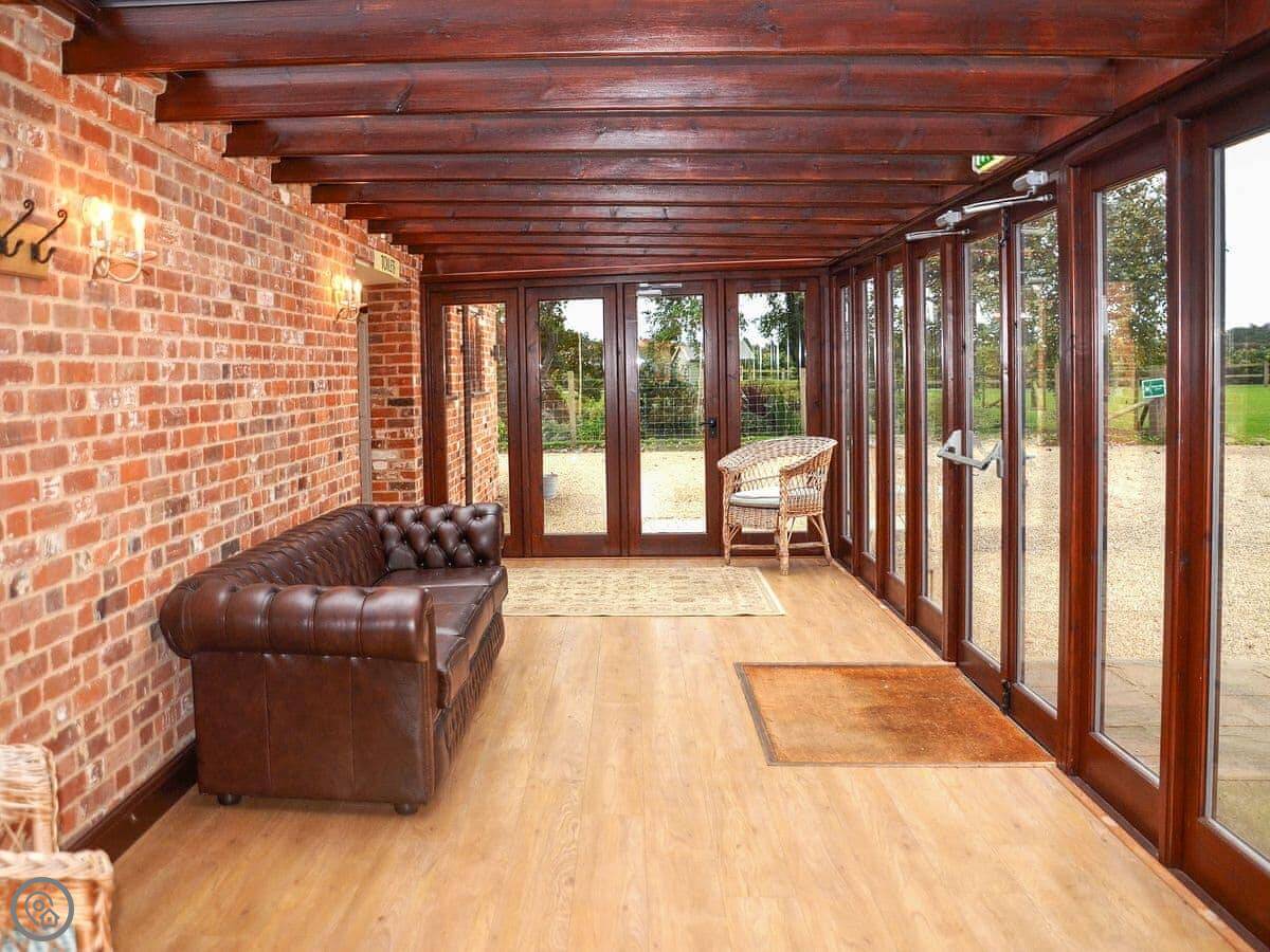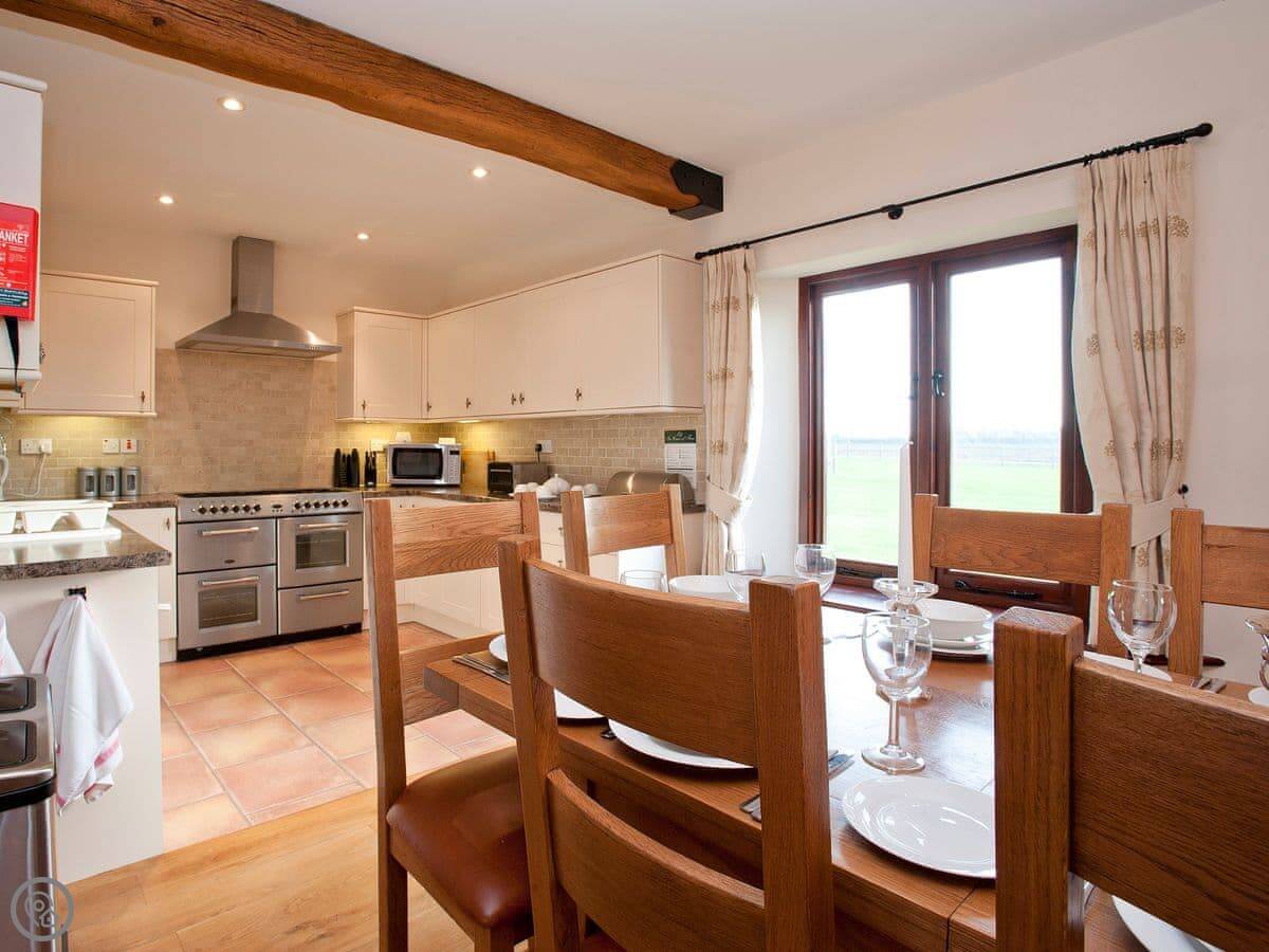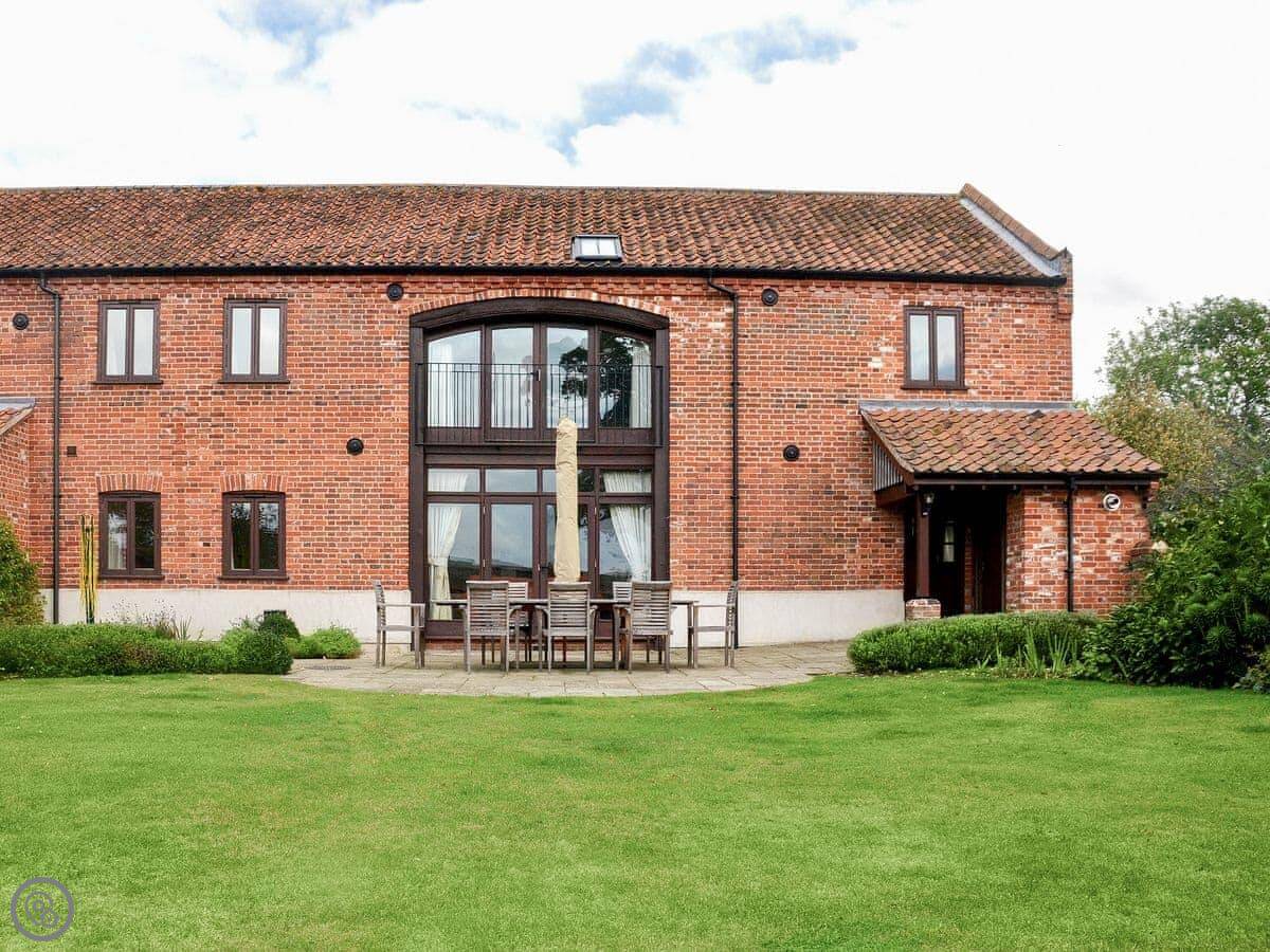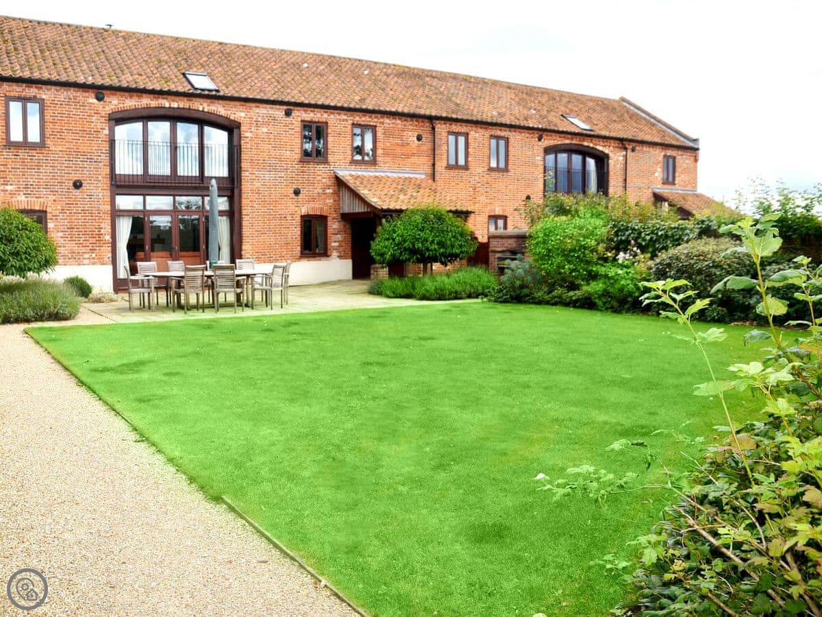This is Kingfisher Barn. It's one of four barn conversions here, near Sculthorpe in Norfolk. Three of the barns are joined together, one is separate. Kingfisher is one of the joined ones. They're all on a working farm, next to the owner's house.