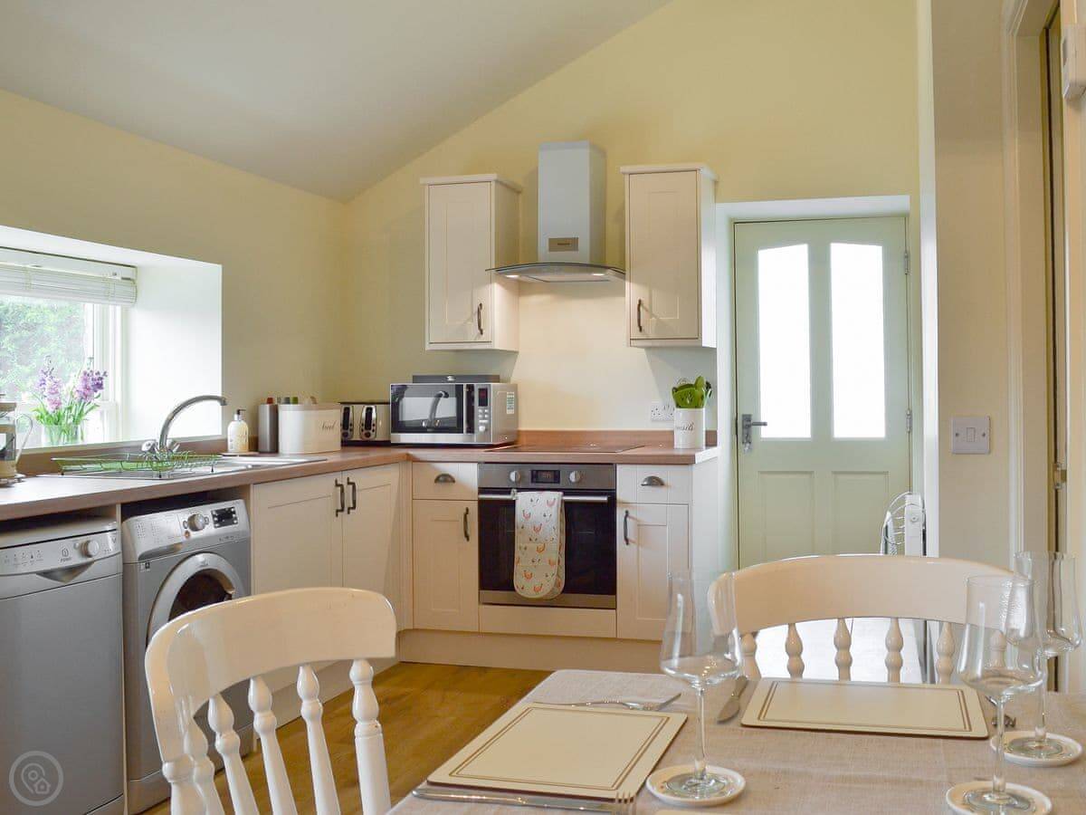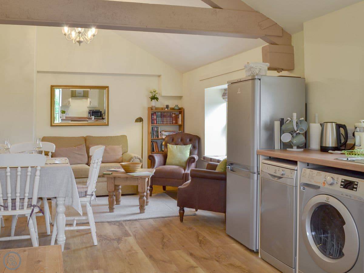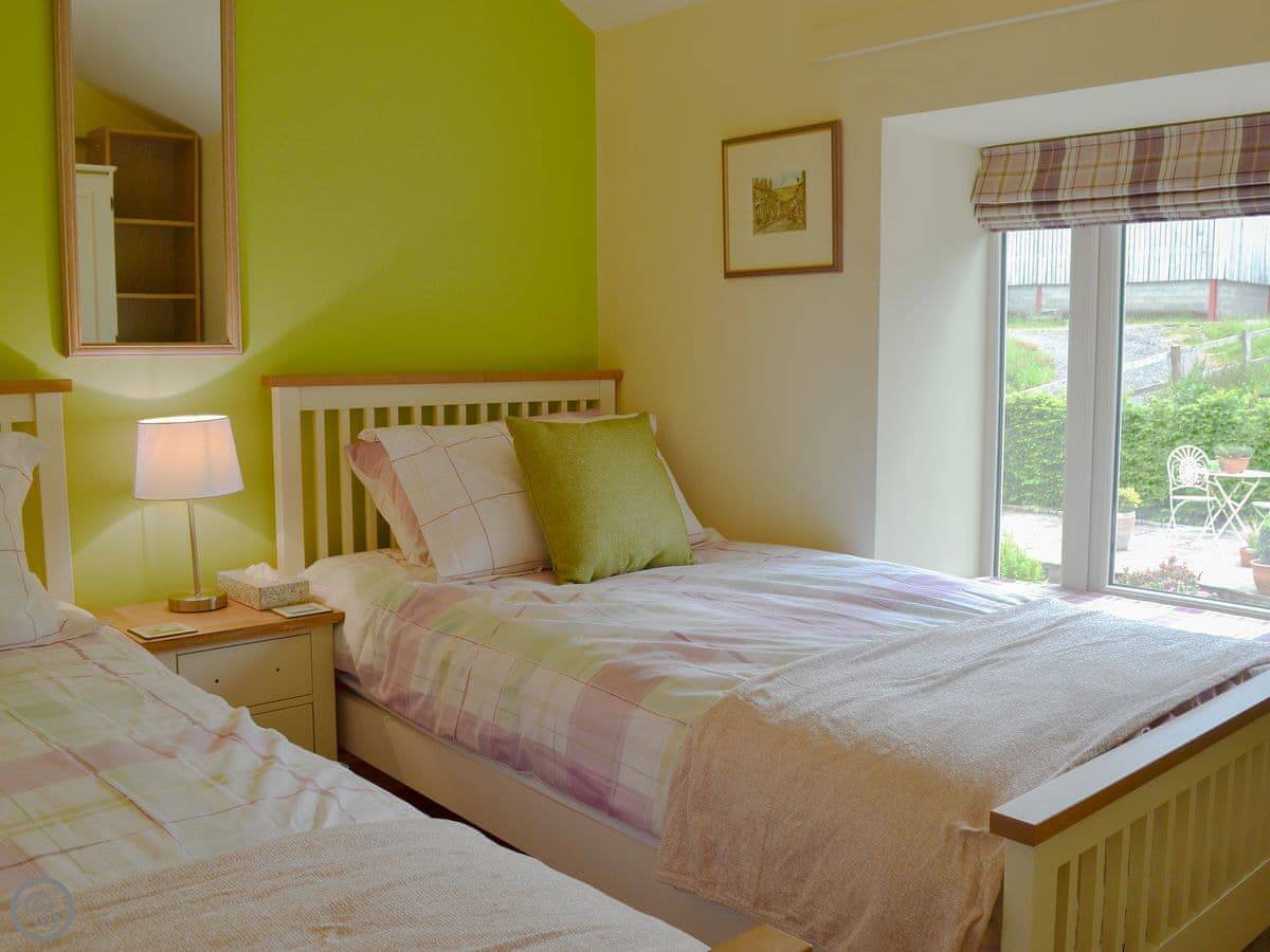 It sleeps four. Two bedrooms, one bathroom. It's got a 4 Star rating. We refurbished it a few years ago so it's clean and modern. The stairs up to the flat are the original barn stairs. They're steep and a bit narrow.
