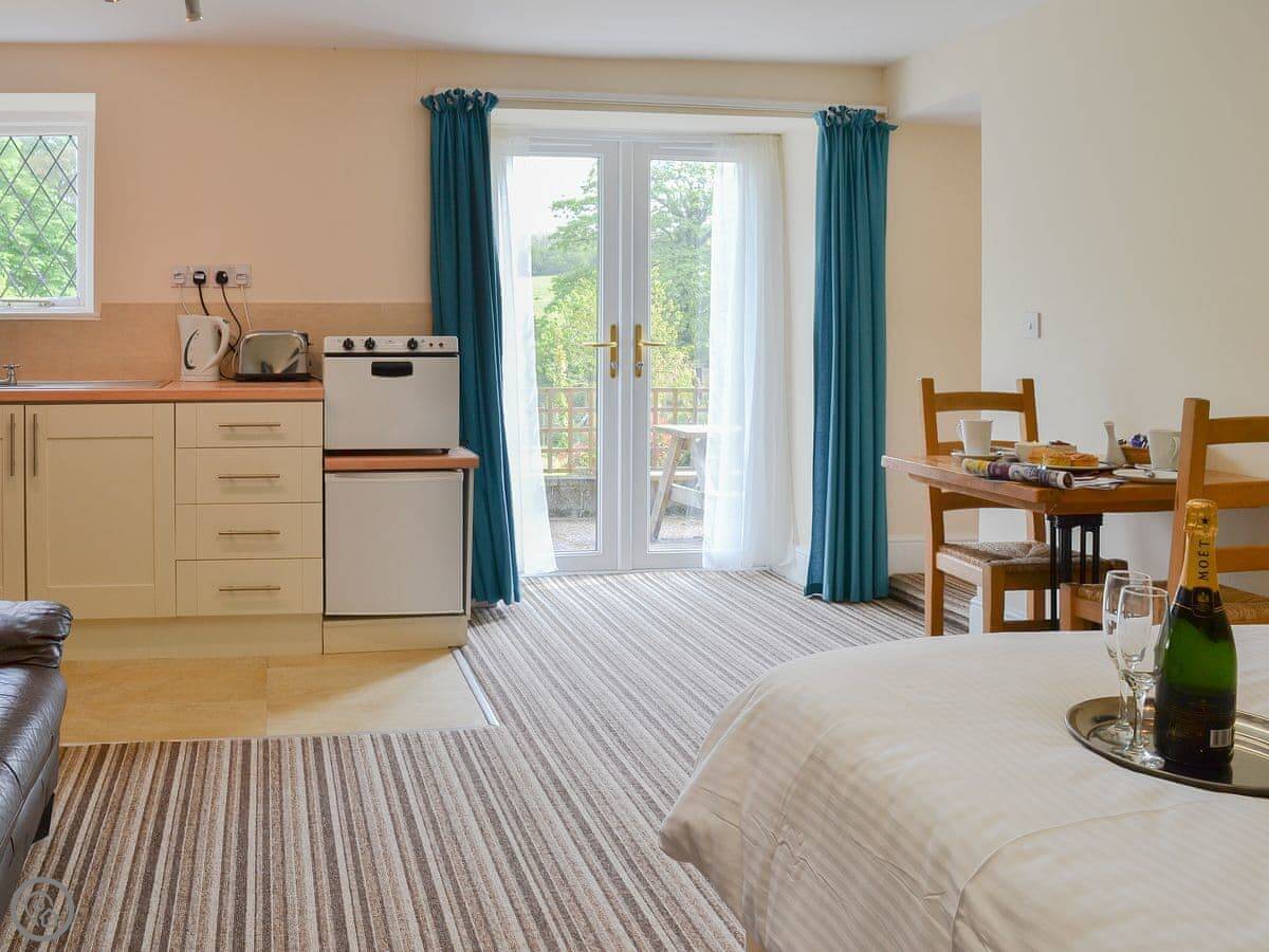This is Lee Studio. It's a one bedroom place for two people up at Trimstone Manor, near Woolacombe. It's part of a larger farm site with a few other cottages and apartments.