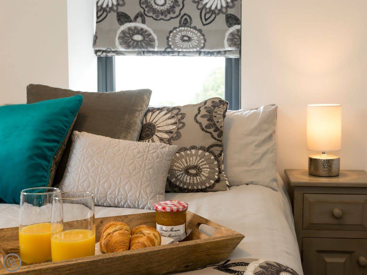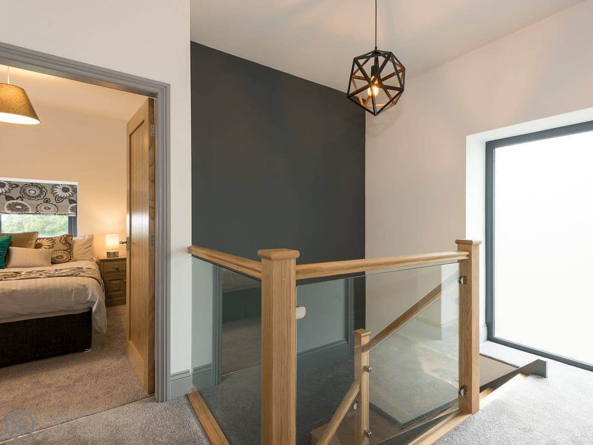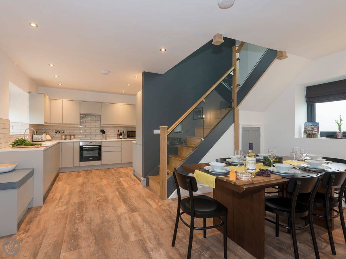 It sleeps six. Three bedrooms, two bathrooms. It's got a 5 Star rating, which means it's well equipped and finished to a high standard. Everything is open plan downstairs.