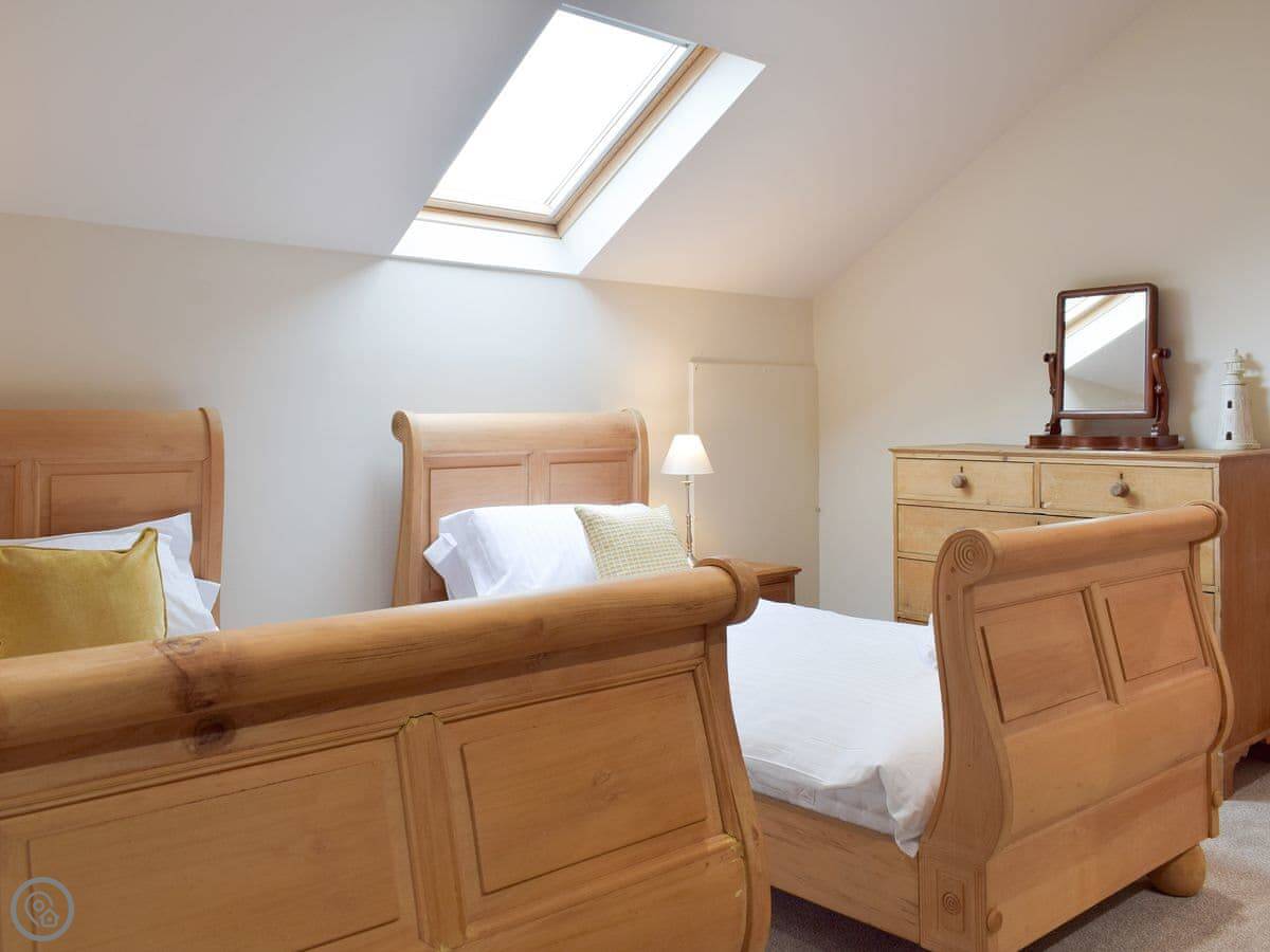 It sleeps seven in three bedrooms. Each bedroom has its own bathroom. That's handy. It's got a 4 Star rating, so it's comfortable and well kept. There's a woodburner in the living room.