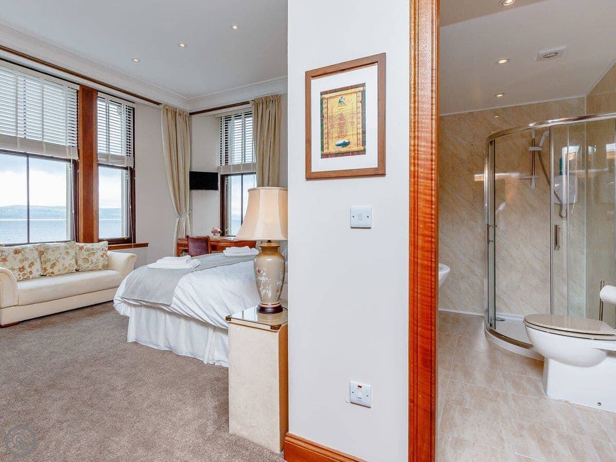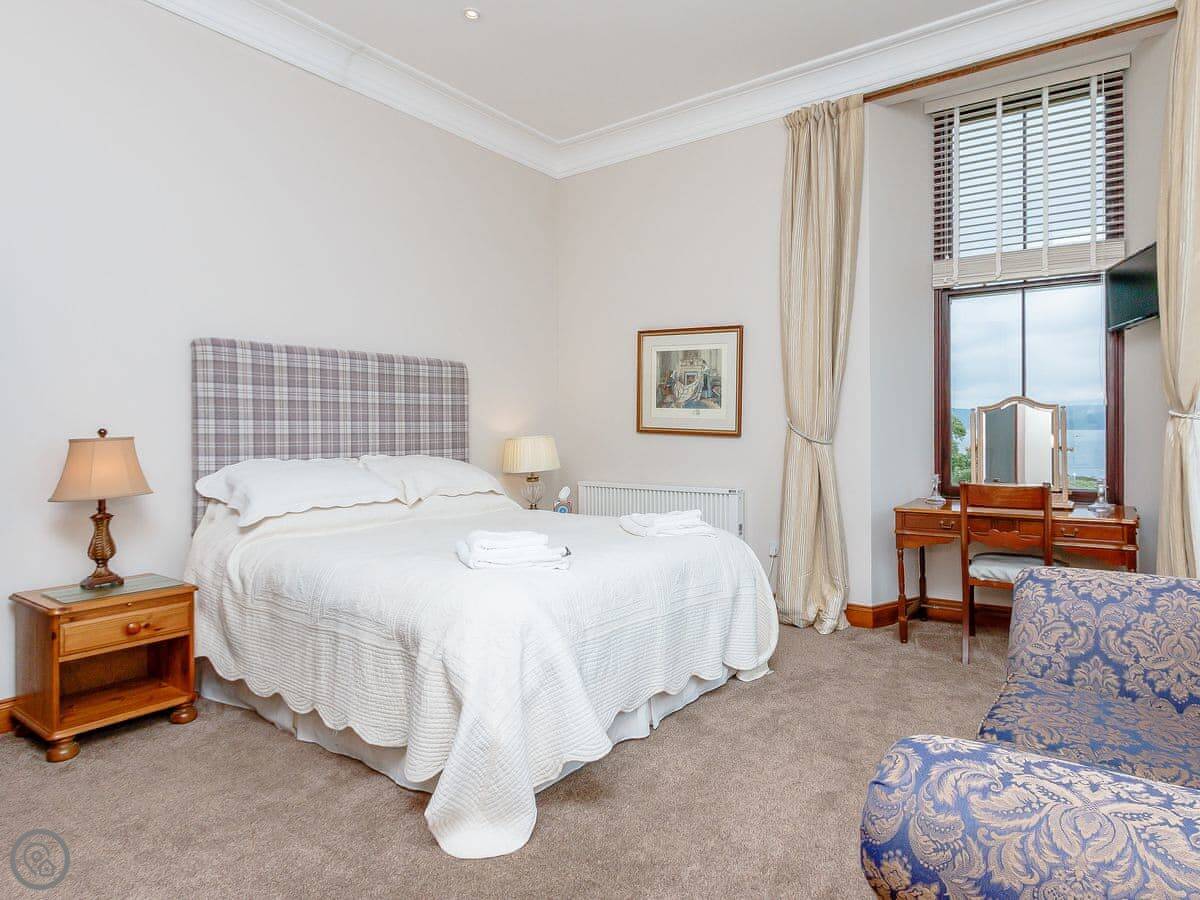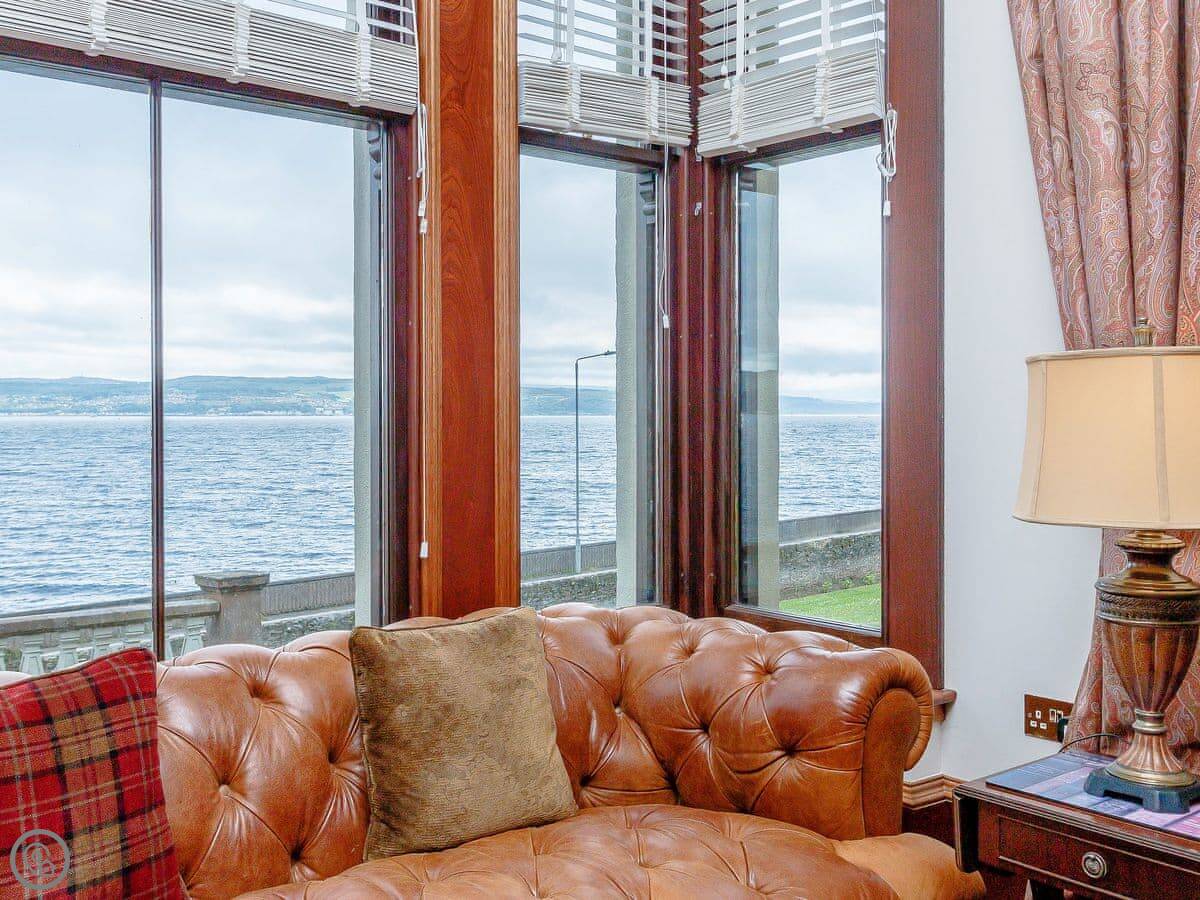 Strone House is in Strone, on the Cowal peninsula. It's a big detached house right on the water, looking out over Loch Long and the Holy Loch. Behind you is the Argyll Forest.