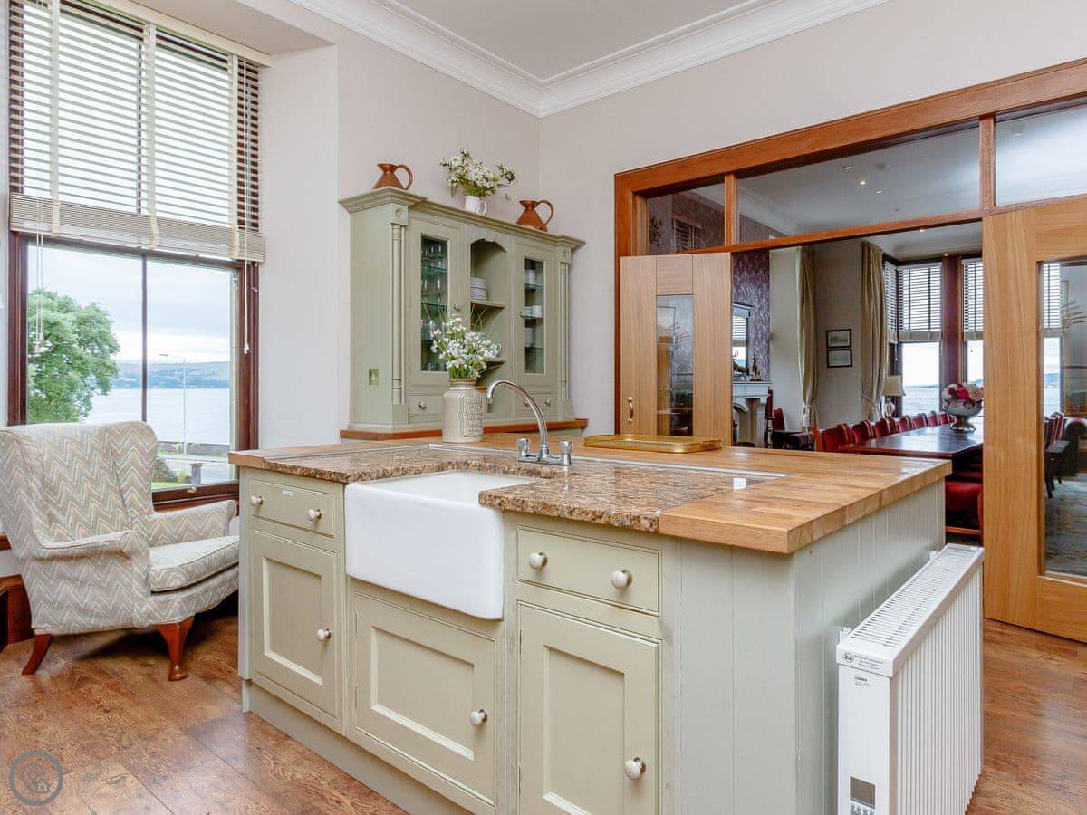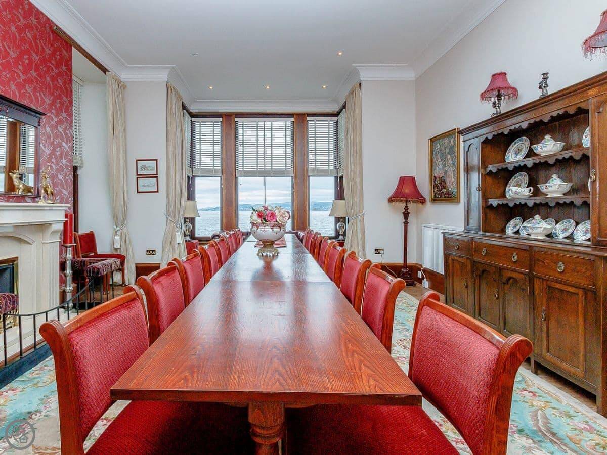 It’s built for big groups. We get a lot of families, wedding parties, and corporate groups here. You can fit a marquee in the garden if you need to, and Strone church is just next door.