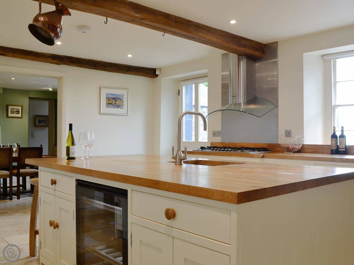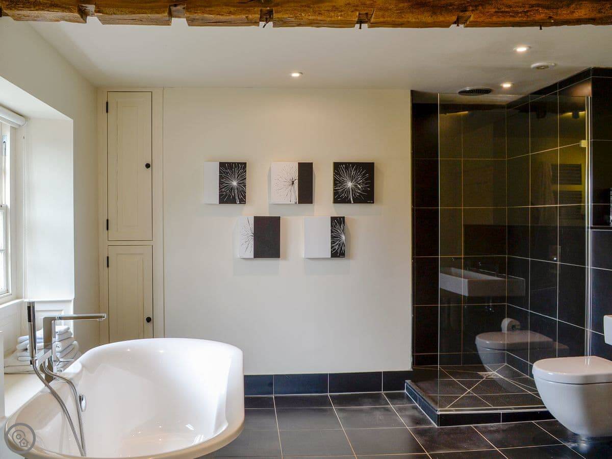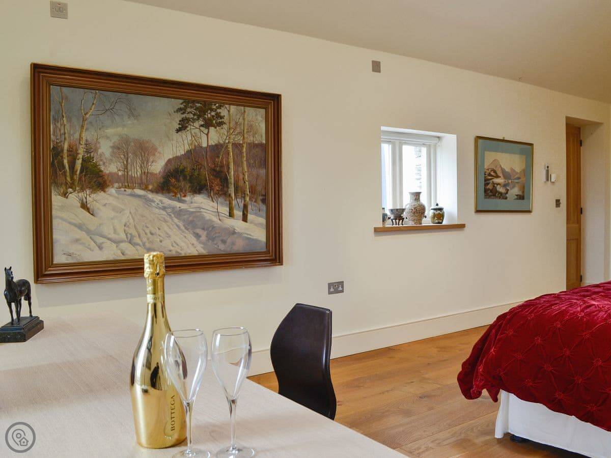 No expense has been spared with the interior design and décor at Highside. A lot of careful thought has gone into delivering a memorable guest experience. Each room has been lovingly restored and finished to a high spec. Many of the original features of this Grade II listed farmhouse, dating back to the 1700s, are still prominent today including the large sash windows, the original stone steps and fireplaces, the beamed ceilings and thick stone walls, yet the element of contemporary luxury is evident throughout the property and there is even an artistic twist as you walk through, admiring the artwork. Highside can sleep up to ten guests in five spacious and luxurious bedrooms including a comfortable twin bedded room. All bedrooms have plenty of storage and hanging space for your belongings as well as high quality furniture throughout. One of the most striking features is the size of some of the bathrooms, you’ll love the amount of free space and the walk-in showers, freestanding baths and overall quality of fixtures and fittings. The kitchen is full of the latest modern appliances with a central island and wine cooler; next door is a beautiful traditional dining room to accommodate the most regal of banquets. If you feel you’ve eaten too much, you can retire to the snug for a little snooze. The real design feature and heart of this house is a simply stunning living room created from a converted barn with original beams and floor to ceiling windows. At one end is a modern wood burner which makes the perfect focal point for a few glasses of wine after dinner, and at the other end, a galleried library and piano. This makes Highside the ultimate venue for a special celebration or family gathering with the roaring wood burner and a sing song around the piano, it’s sure to make memories that will last a lifetime. Outside you’ll find ample parking, a large sunny patio complete with garden furniture for a breath of fresh countryside air, and of course, more amazing views. The property also produces its own beautiful spring water from a deep borehole, which is supplied through a state of the art filtration system.