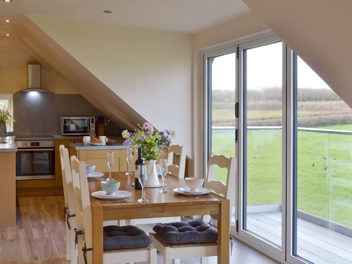 The kitchen, living and dining area is all one open plan room. That's how it was built. There's a washing machine, dishwasher, TV, and wifi. Bedding and towels are included. There's a cot and highchair if you need them. Parking is right outside.