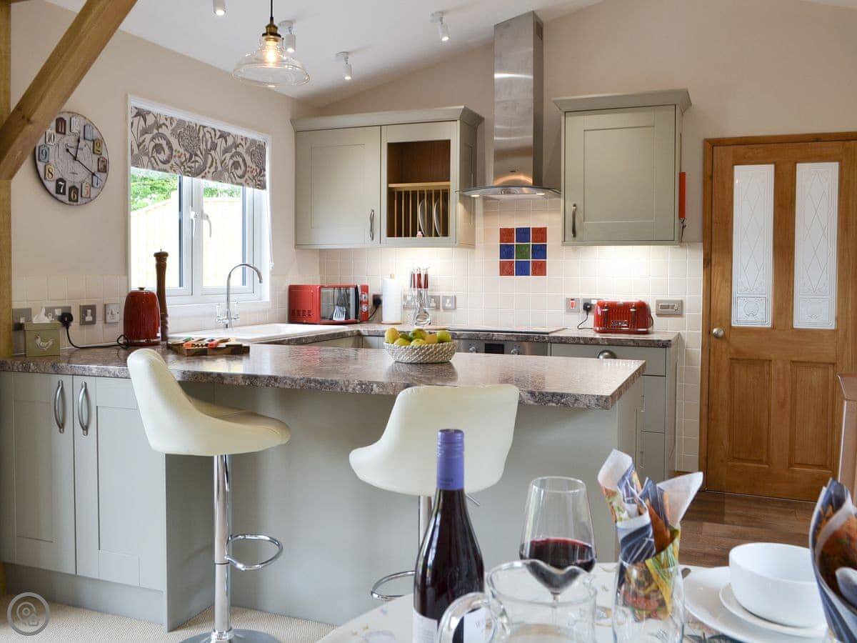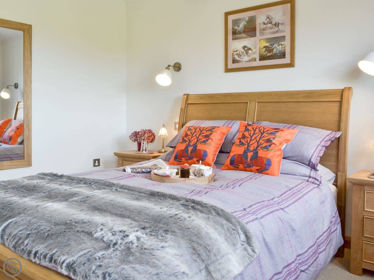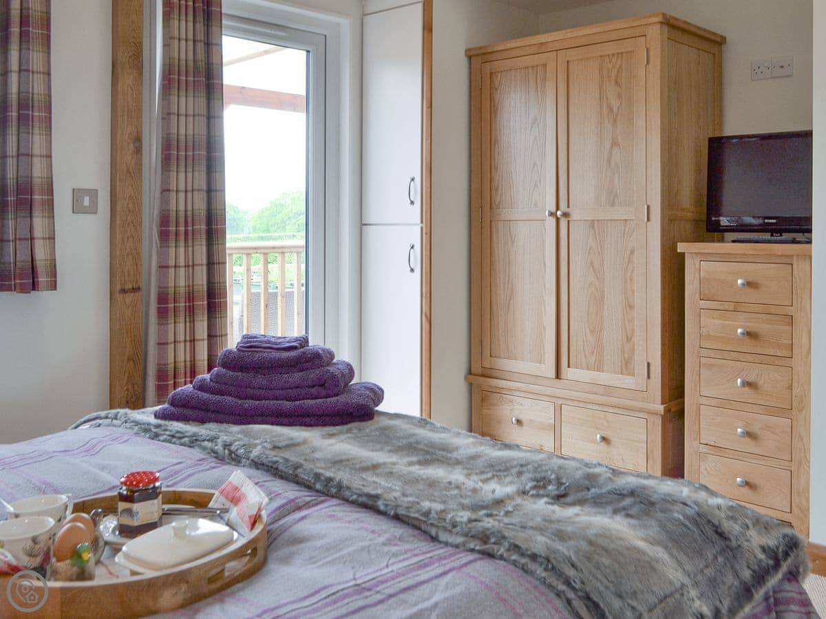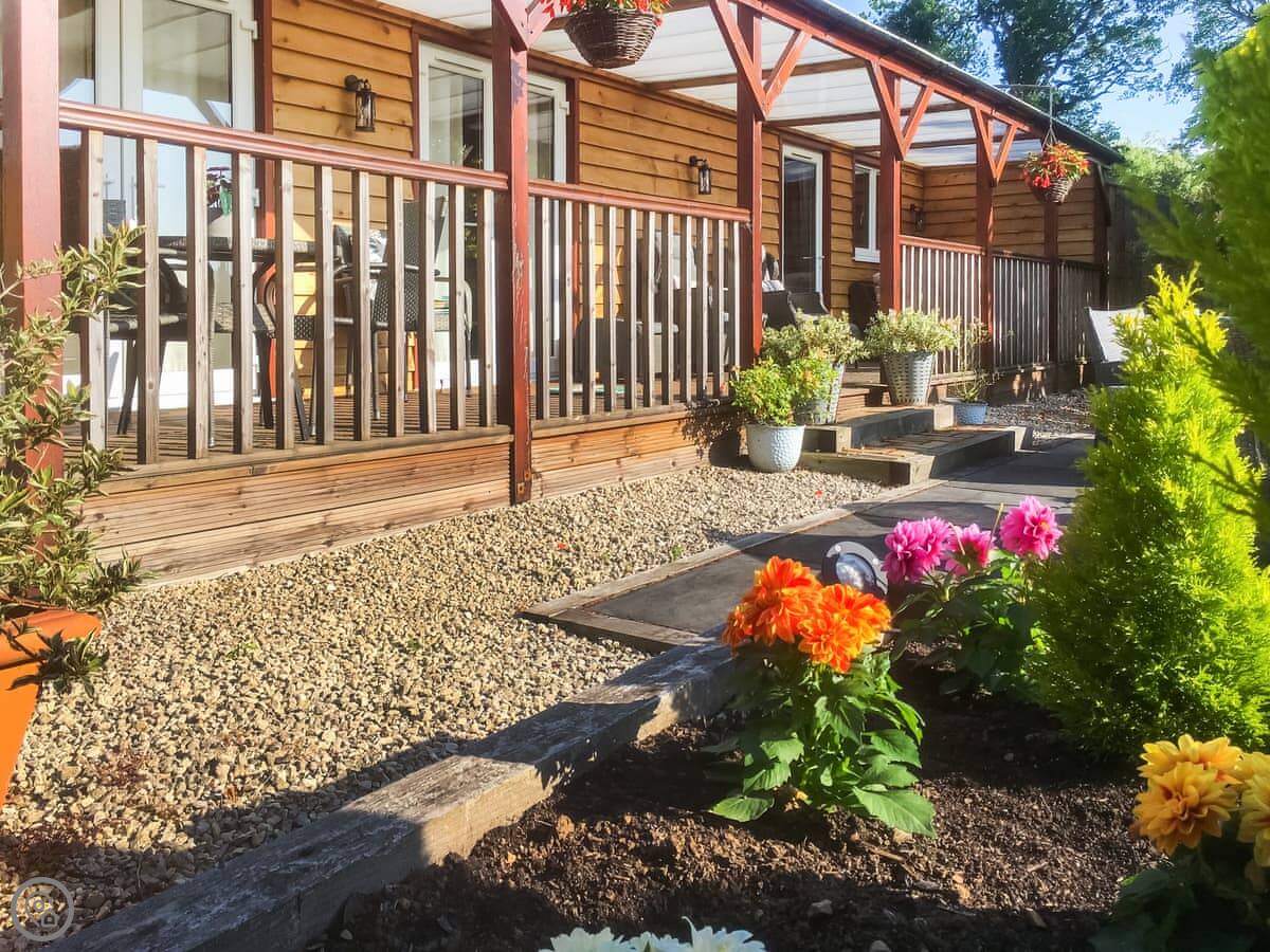 Cedar Lodge is a single-storey lodge in Cowbeech, East Sussex. It's in our garden, but it's detached and private. It sleeps two, one bedroom with an en-suite shower room. It's got a 4 Star rating, so it's comfortable and well-equipped.