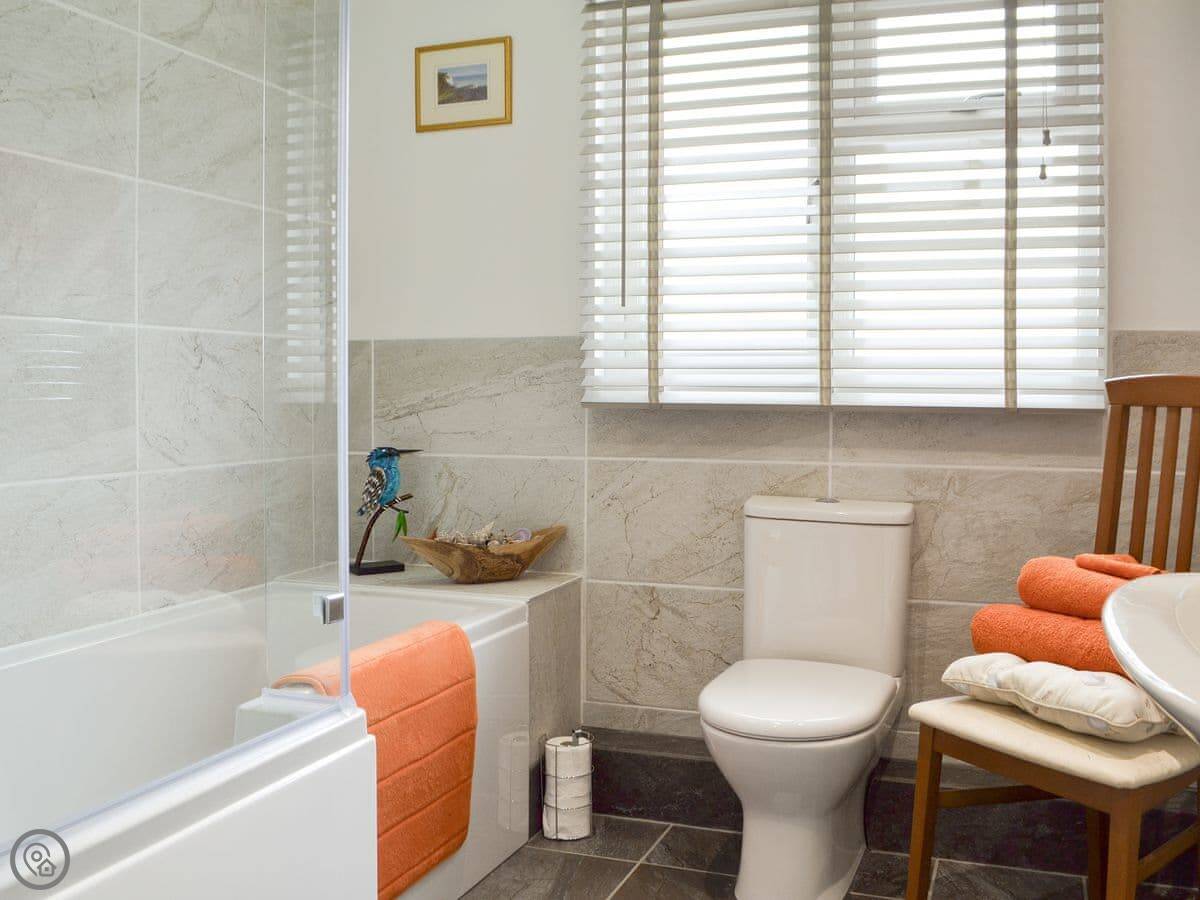 The main thing is the view. It looks out over fields and the Weald. There's a covered deck with chairs, so you can sit outside even if it's a bit damp. There's a large ornamental Koi pond a few steps away.