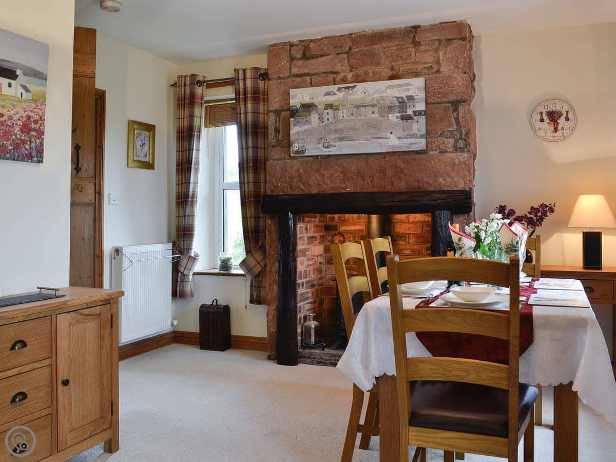 This is Rose Cottage. It's on a working dairy farm in Bigrigg, Cumbria. The farm is called Springfield. We're on the driveway leading up to the farmyard, so you're a little way from the main buildings.
