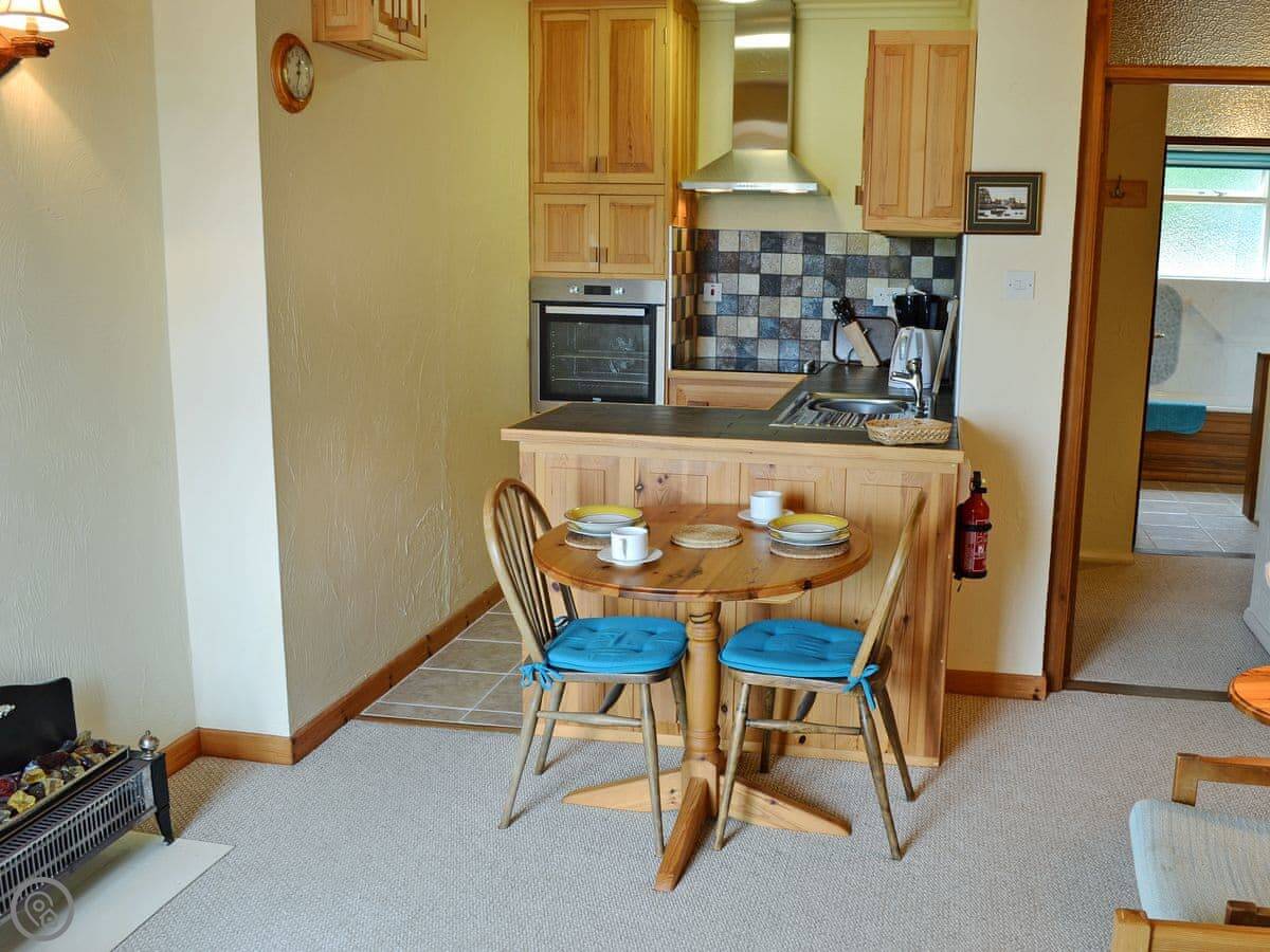 The harbour is about a mile's walk downhill. It's a proper old fishing harbour. There are shops, pubs, and places to eat down there. For a beach, you've got Portmellon about two miles away.