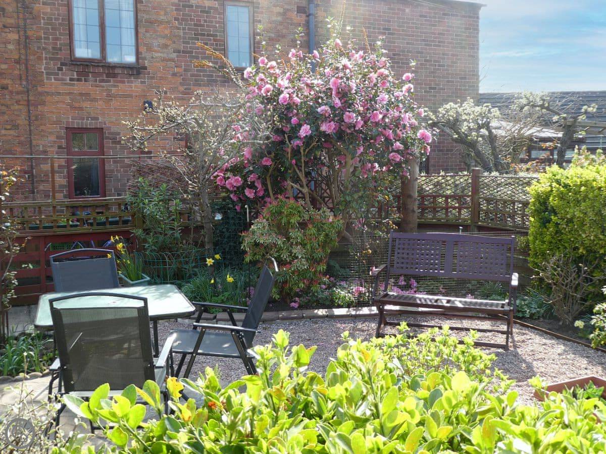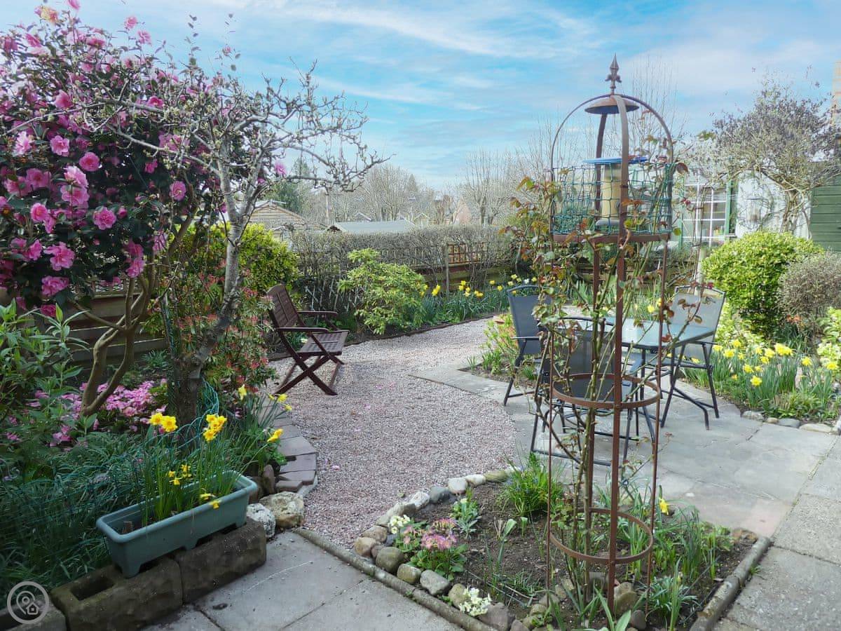 The cottage has its own enclosed garden at the back. It gets the sun in the afternoon. There's parking for one car on the drive.