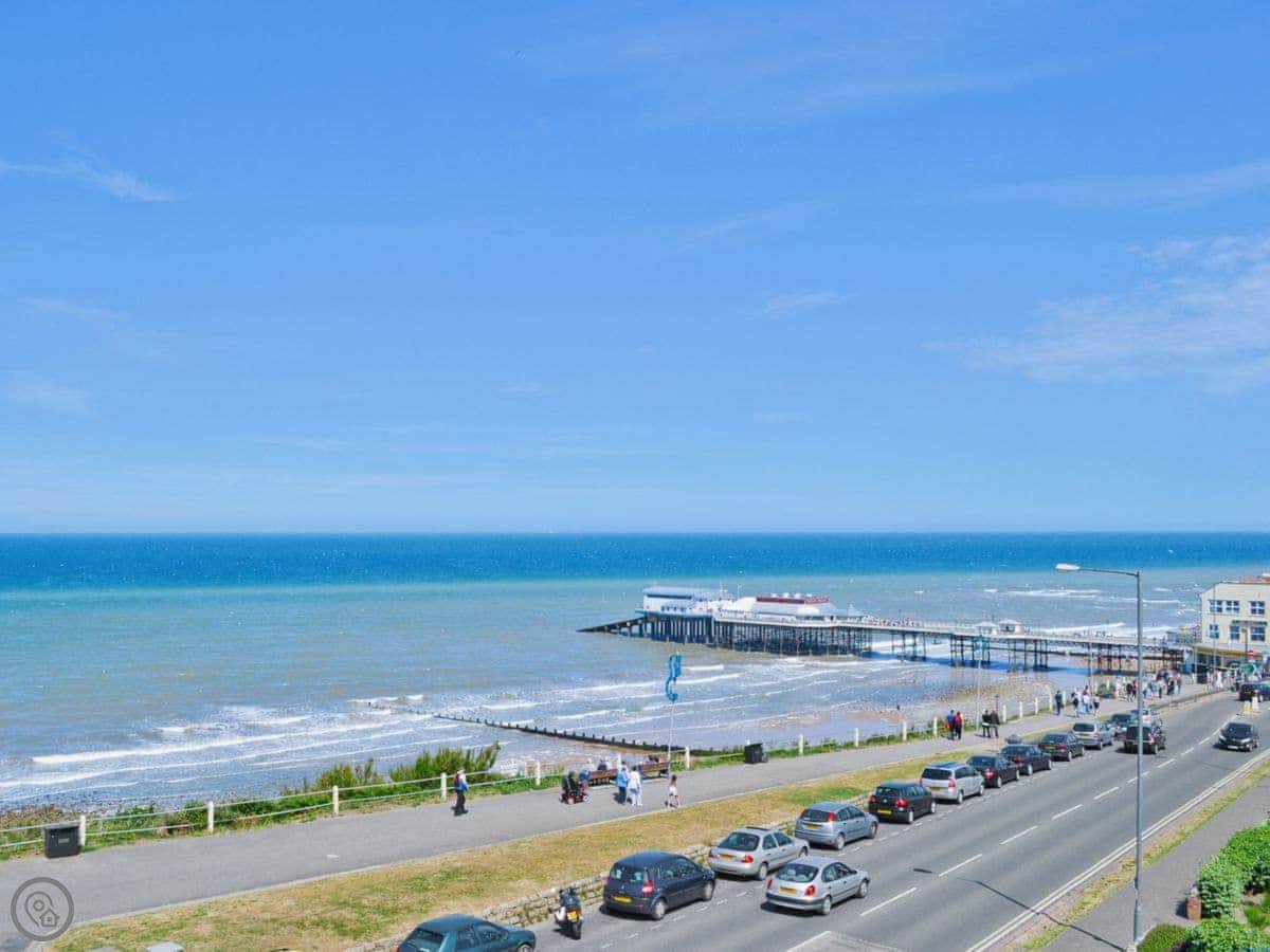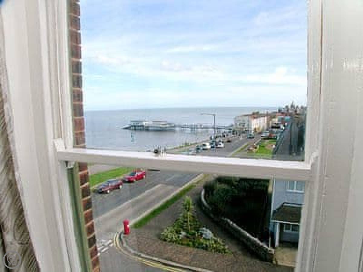 The main thing is the view. You look straight out over the promenade to the beach and the sea. The living room has a big bay window, so you can see the pier and everything. You can even see the sea from the kitchen and one of the bedrooms.