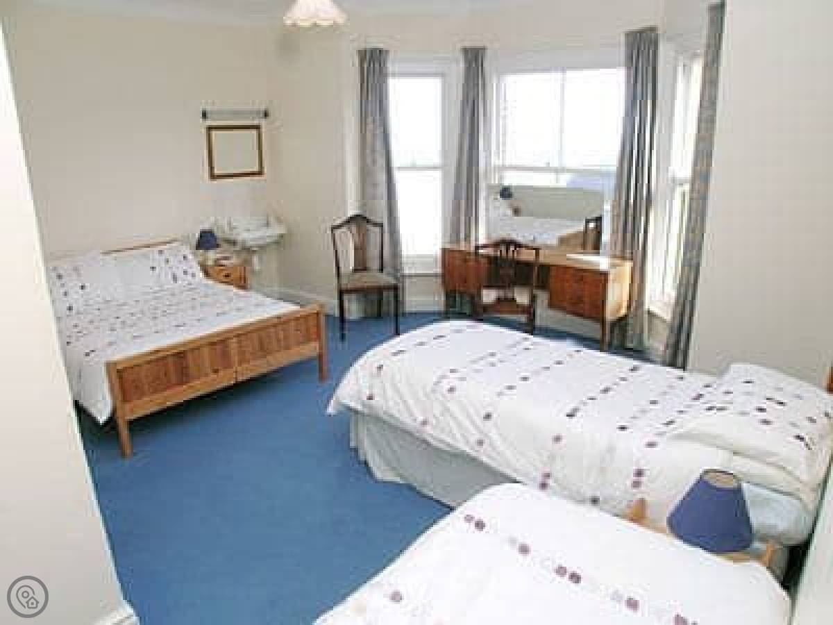 Sky Lark is a flat in Cromer, right on the front. It's in a big Victorian building divided into apartments, so there's a shared entrance and stairs. You get a parking space round the back.