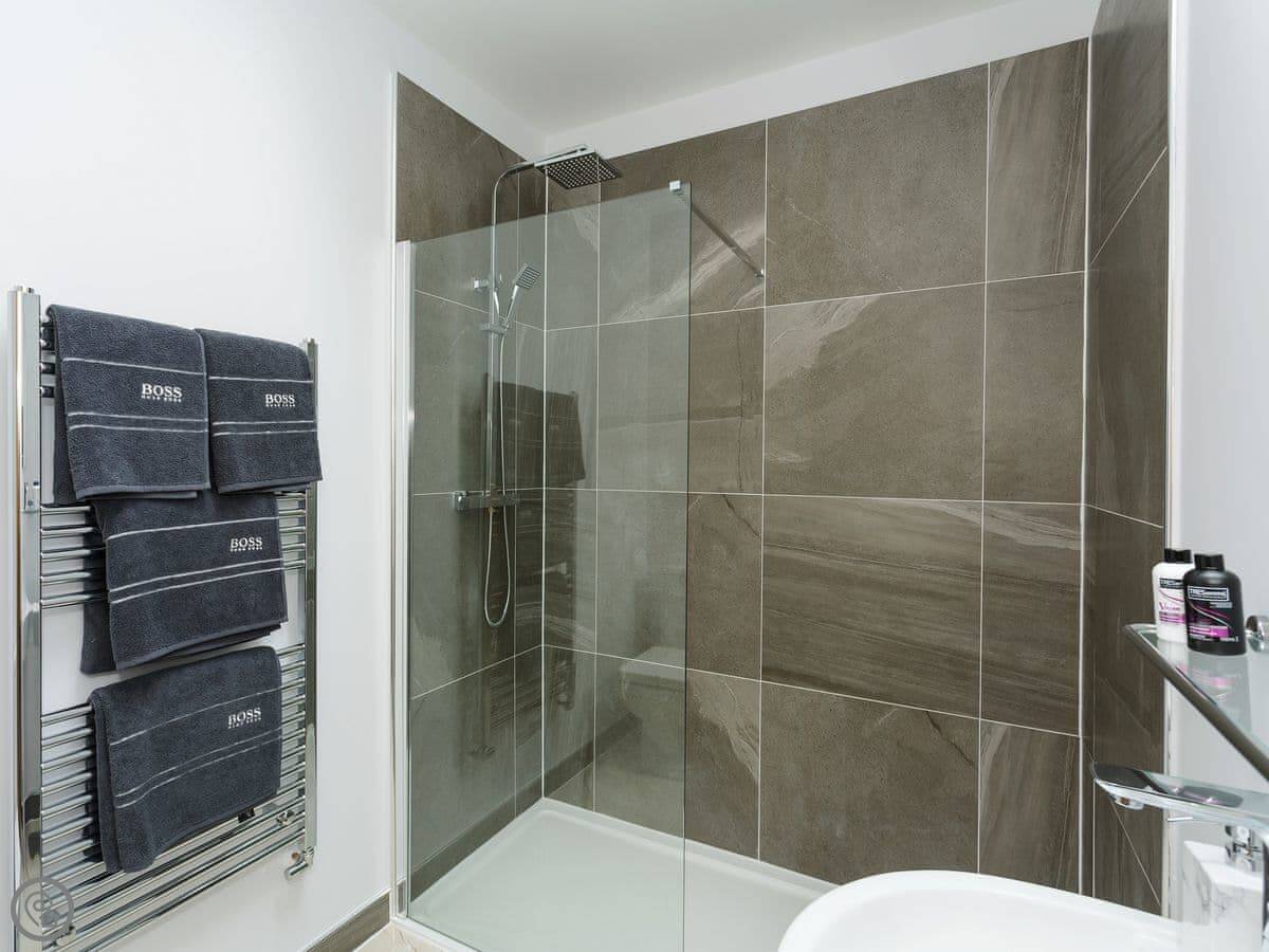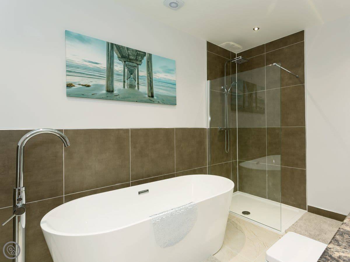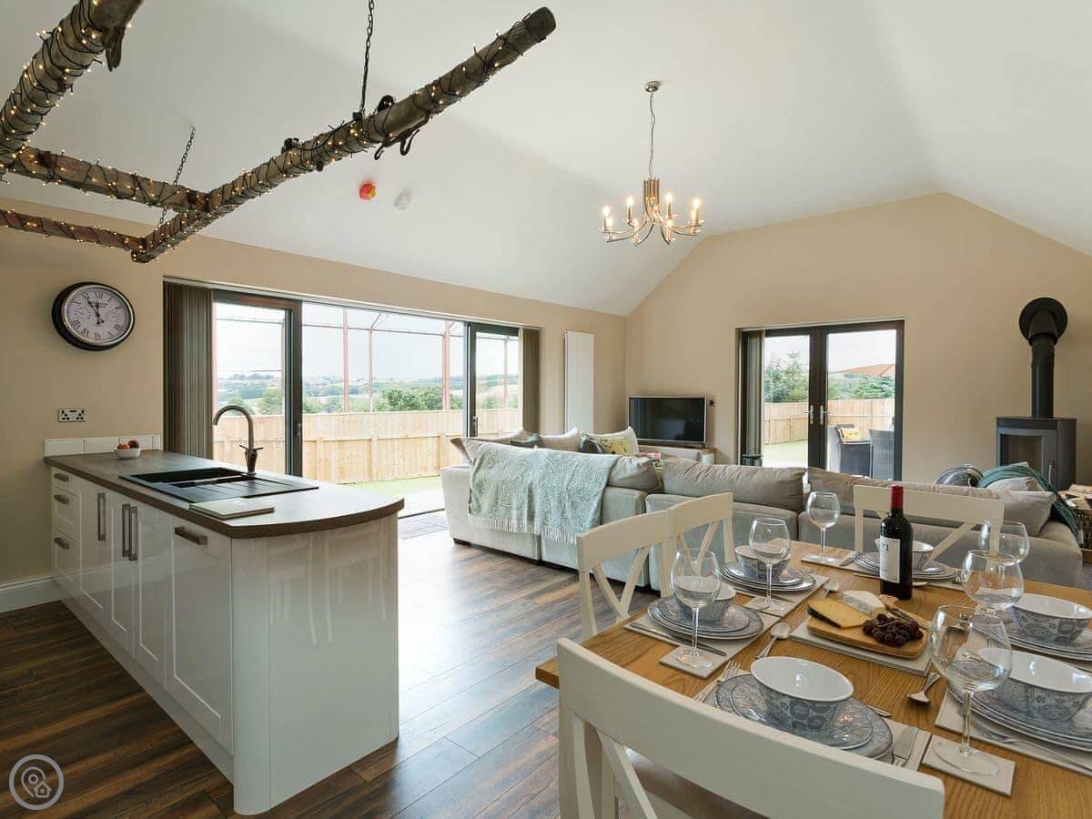 Facilities: all bedding and towels are included. There's a cot and highchair. WiFi and TV. Underfloor heating in the bathrooms. You can bring two dogs. It has a 5 Star rating, which means it's well-equipped and finished to a high standard.