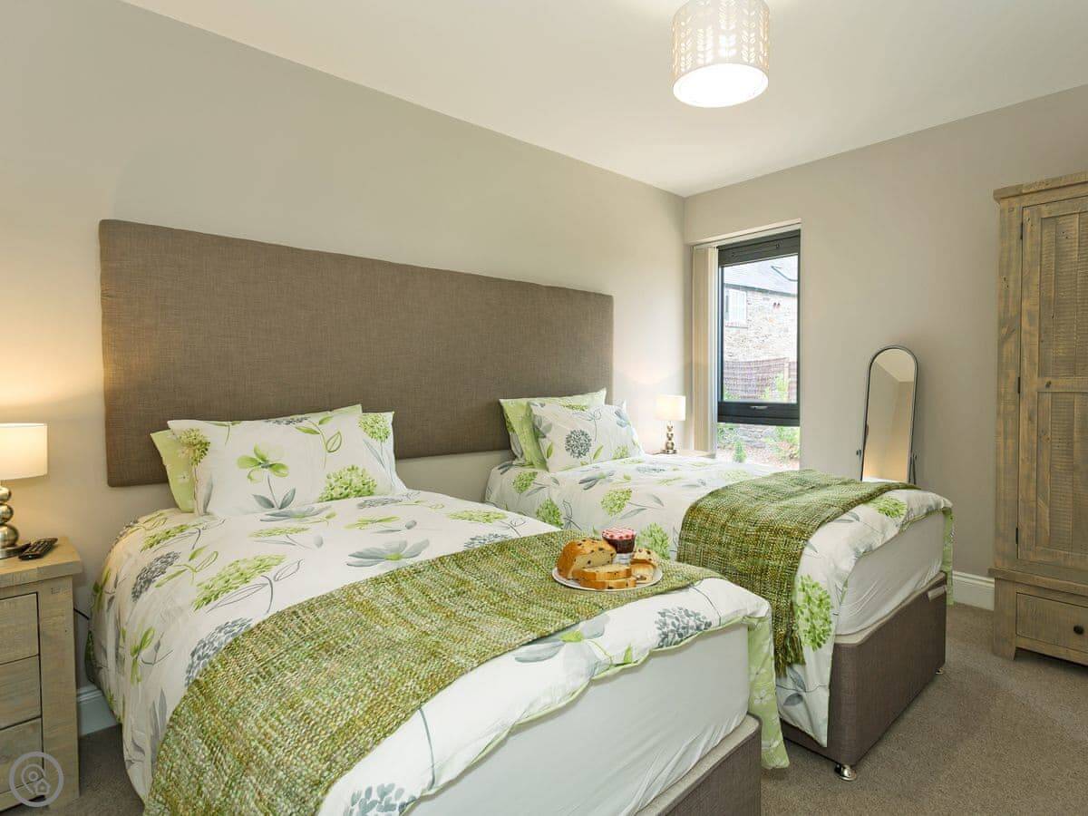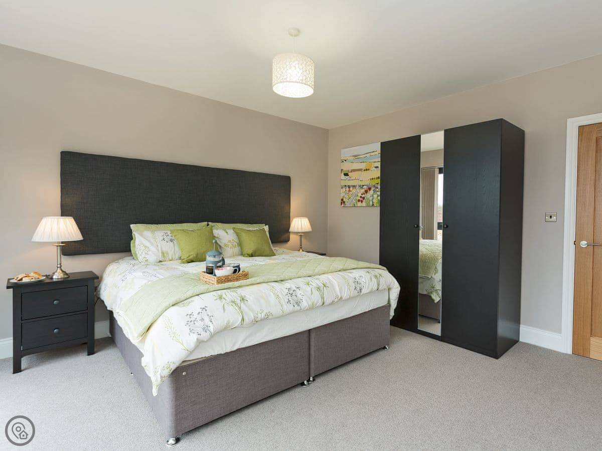 It sleeps six in three bedrooms. There are two bathrooms, one is an ensuite. The master has a super king bed. The other two bedrooms have zip-and-link beds, so you can have them as two singles or a double each.