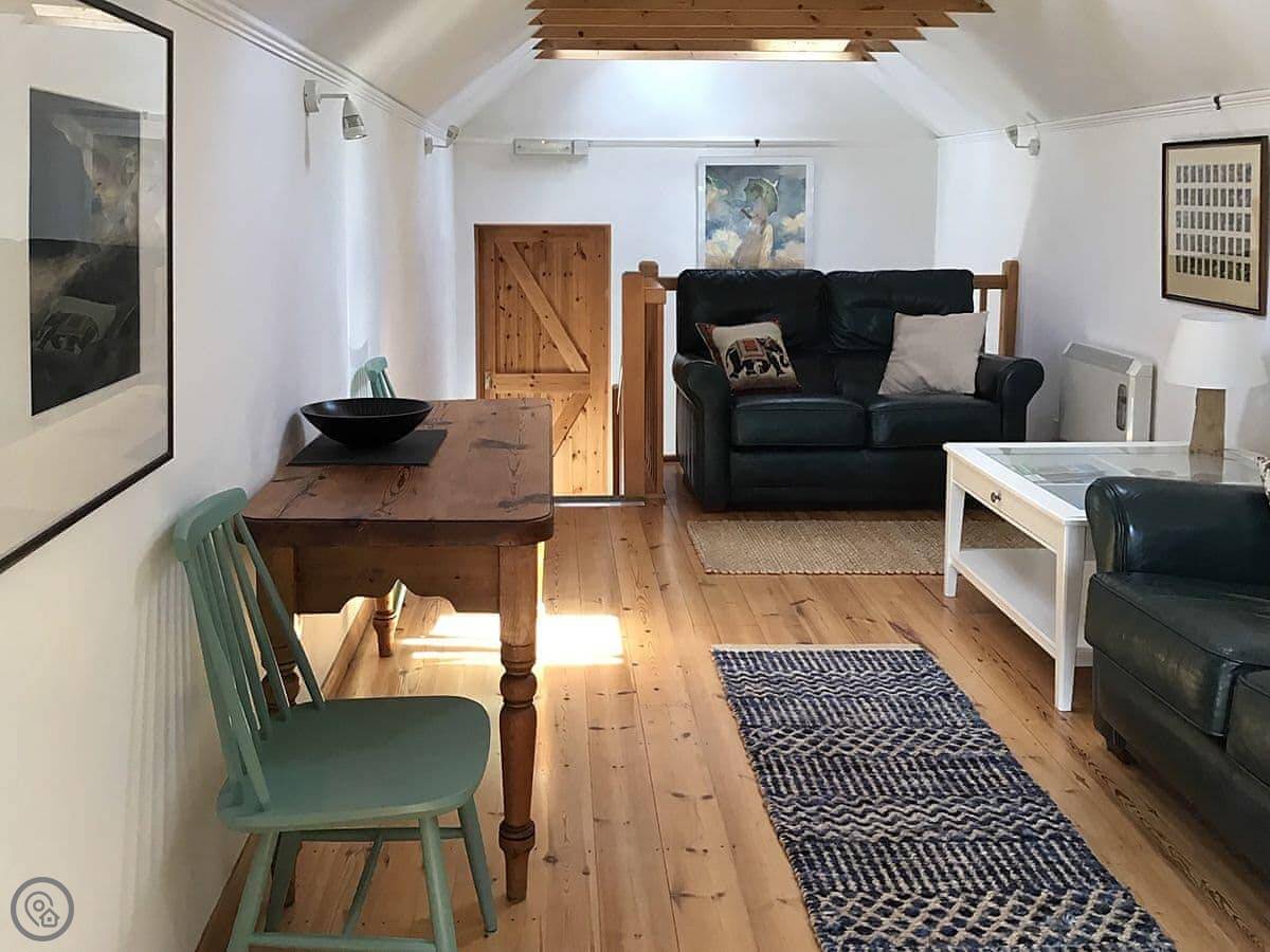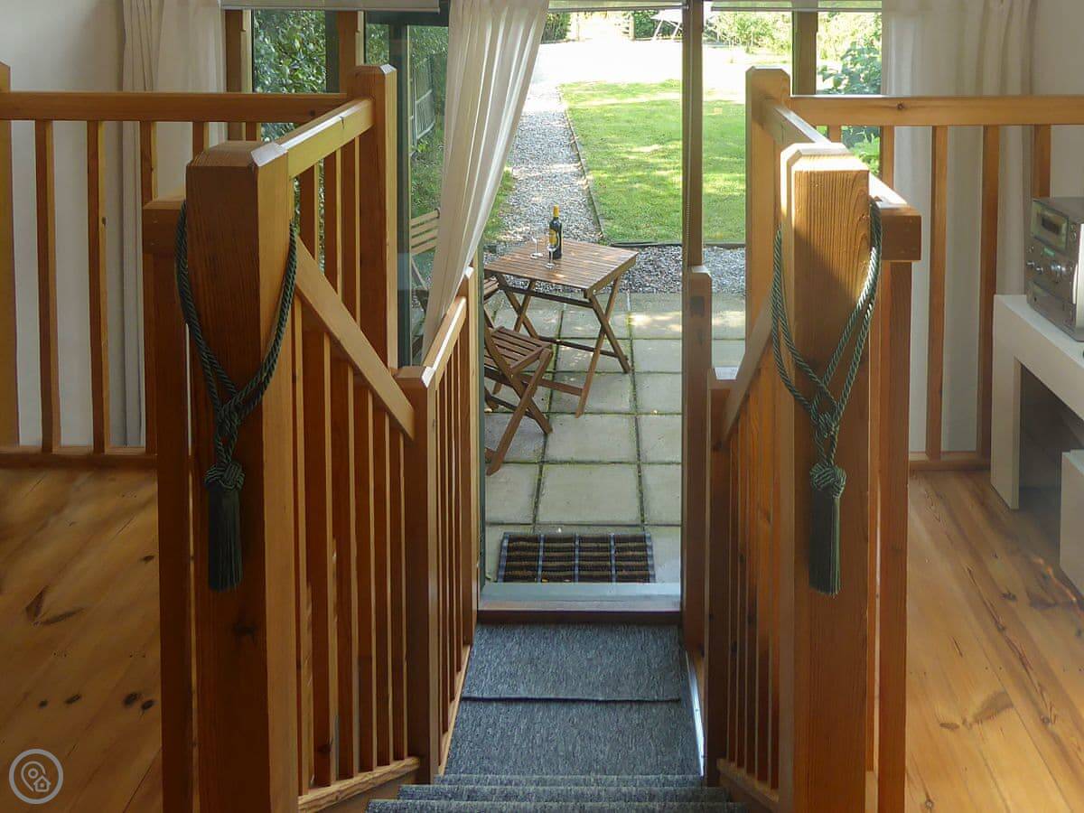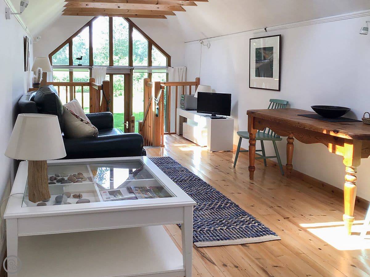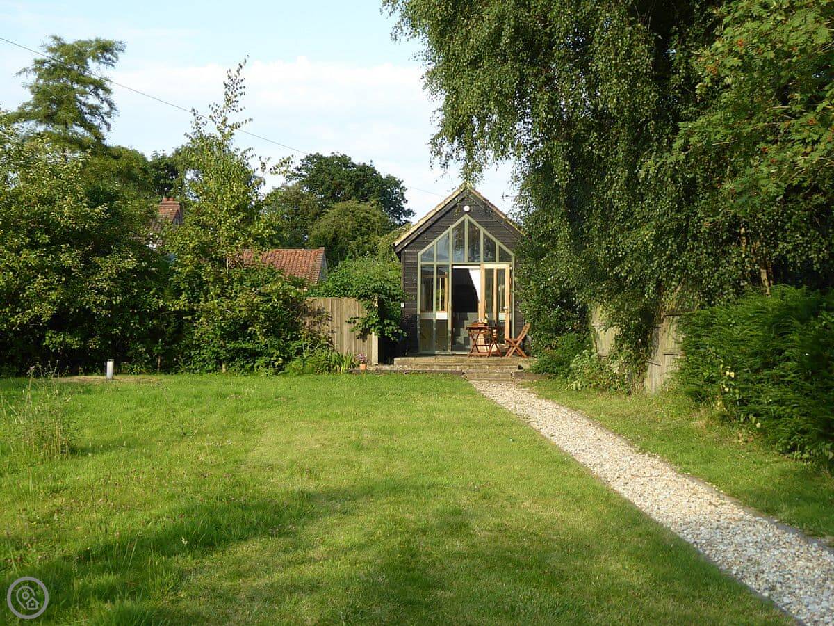 The Studio is in Hoe. It’s detached, so you’re on your own, and it’s tucked behind our house. It used to be an artist’s studio, so the main room has a big floor-to-ceiling window. It lets in a lot of light and looks out over the fields.