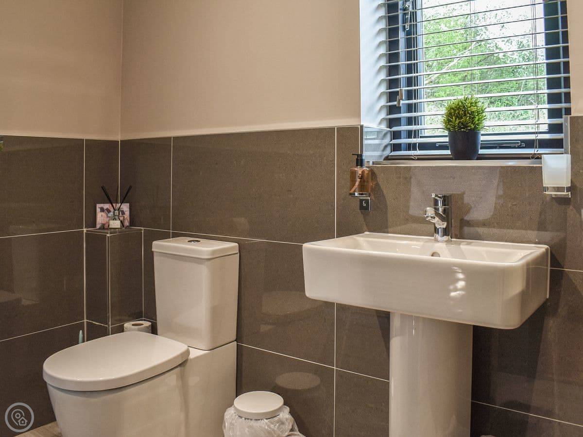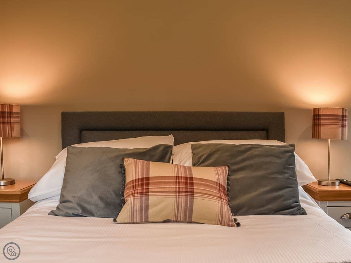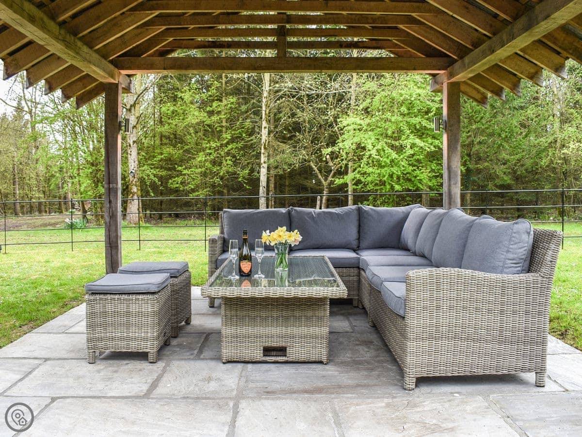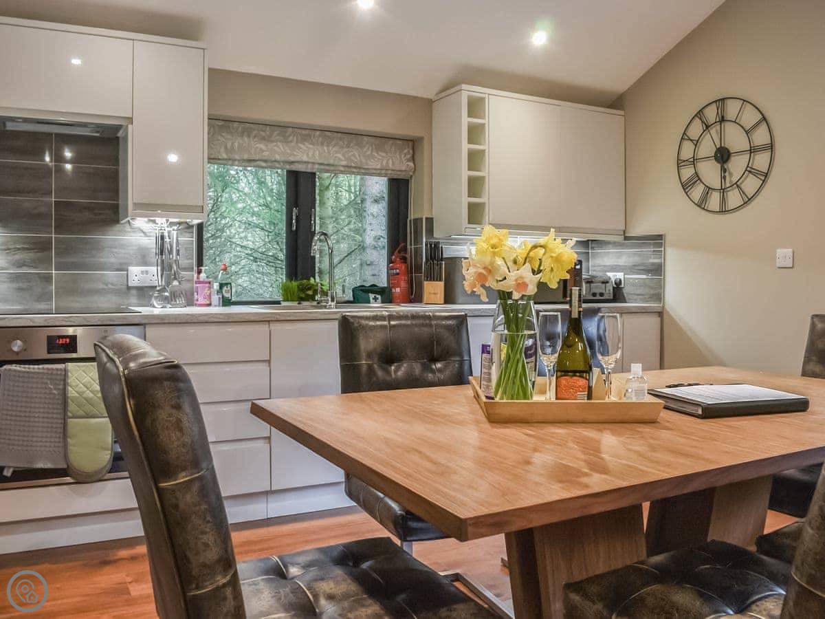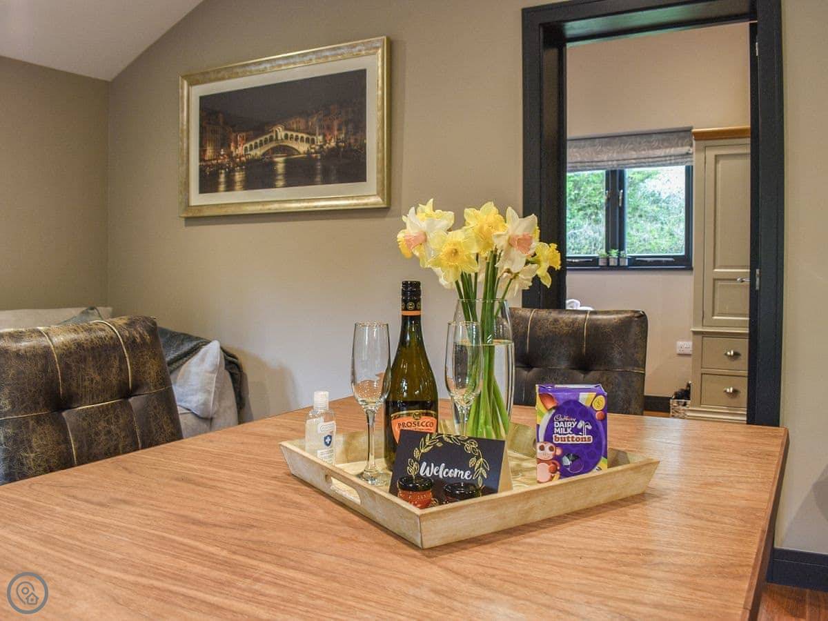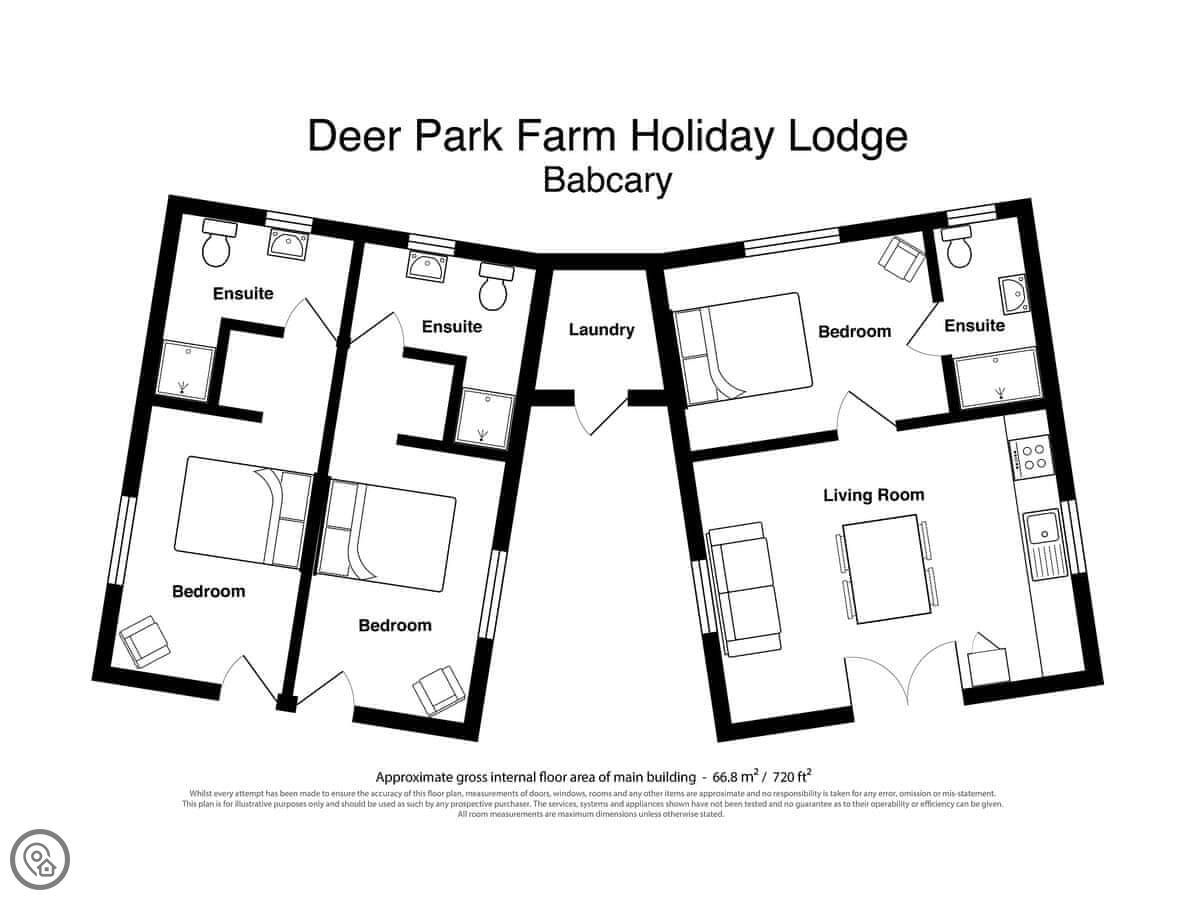 The Retreat is a wooden log cabin on our farm, down a track in the woods. It's completely detached and private. The main cabin has the living space, kitchen, and one bedroom with its own bathroom. About twenty yards away, there's a second, smaller cabin with the other two bedrooms. They both have their own bathrooms too. So, six people, but everyone gets their own space and their own shower.