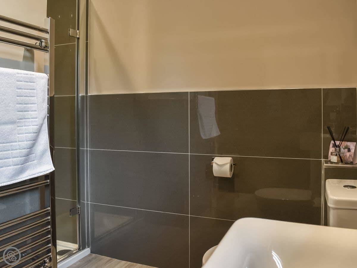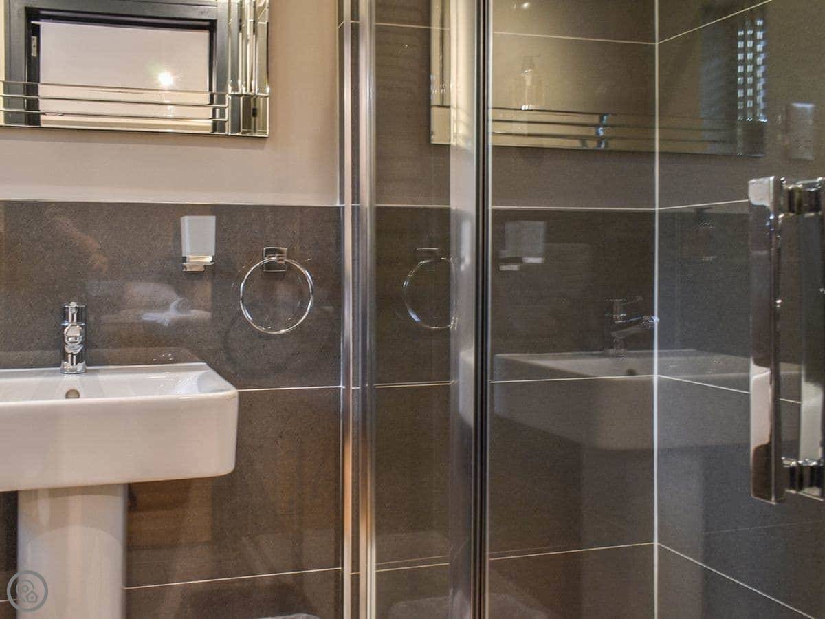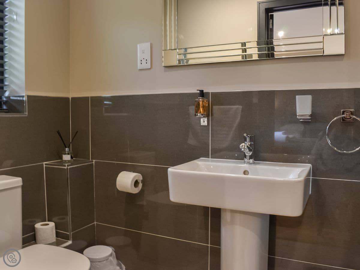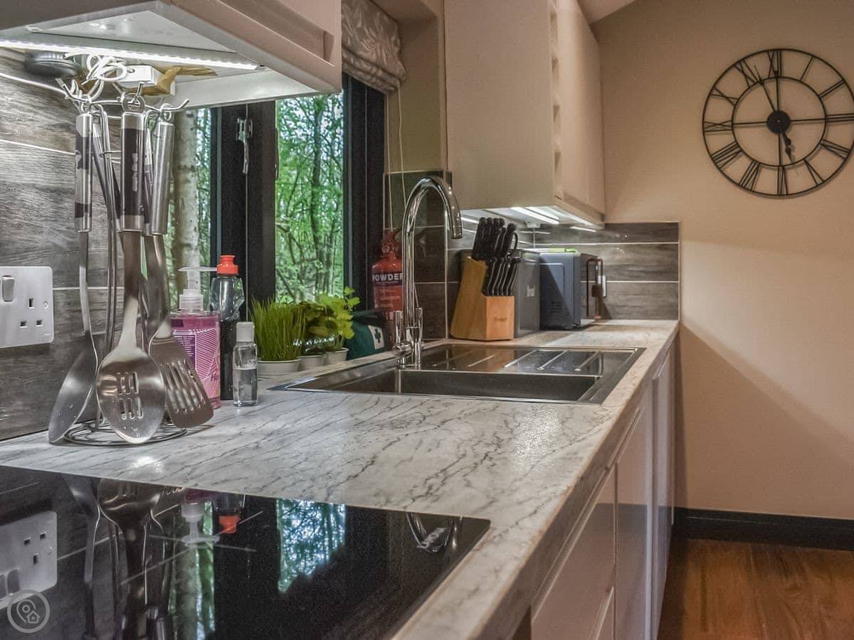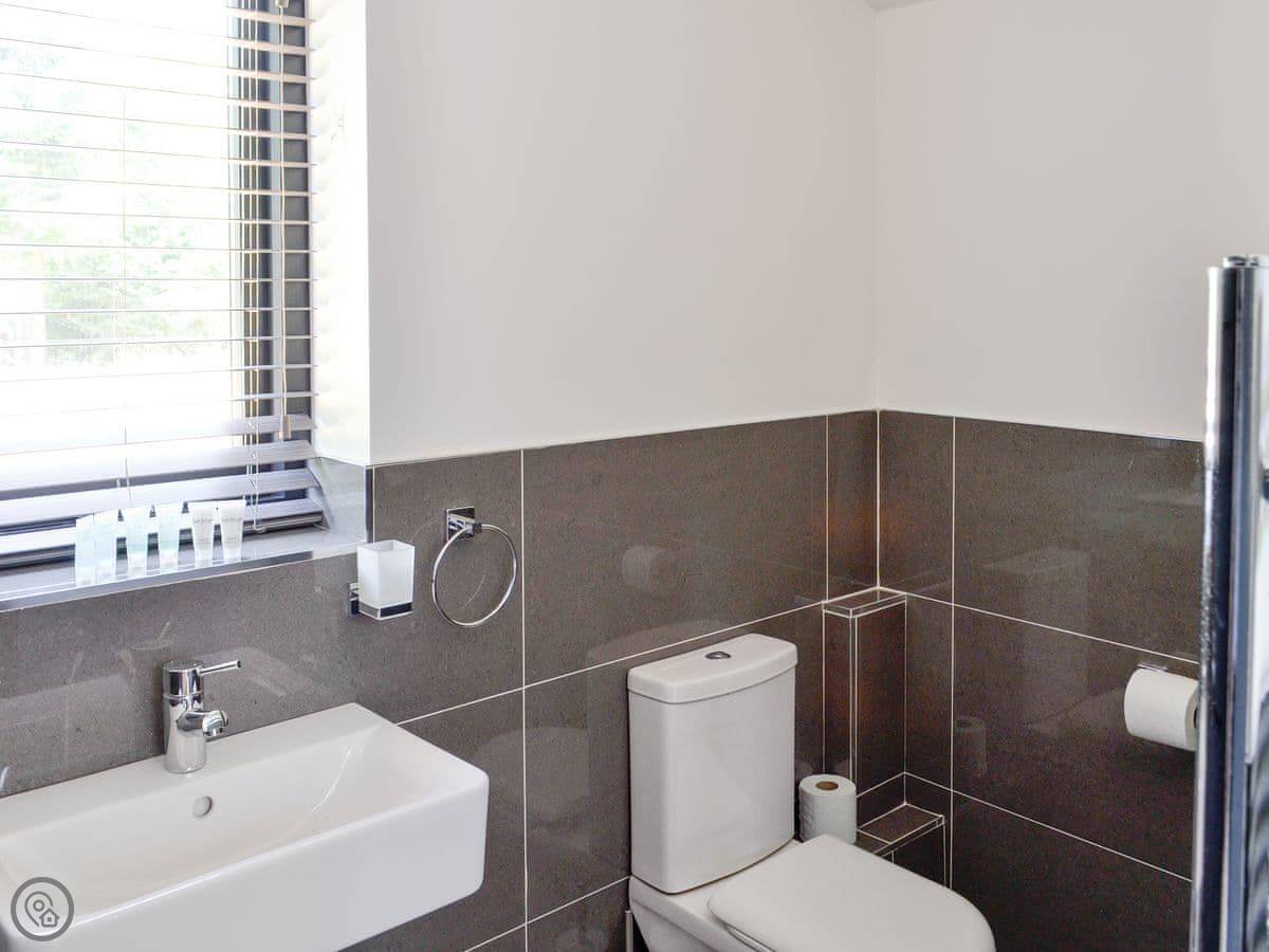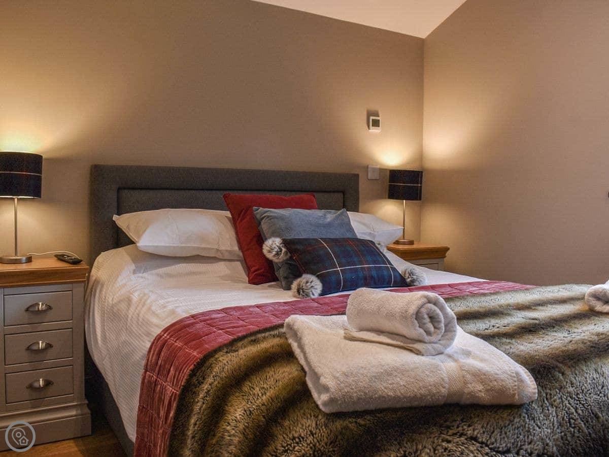 The Retreat is a wooden log cabin on our farm, down a track in the woods. It's completely detached and private. The main cabin has the living space, kitchen, and one bedroom with its own bathroom. About twenty yards away, there's a second, smaller cabin with the other two bedrooms. They both have their own bathrooms too. So, six people, but everyone gets their own space and their own shower.