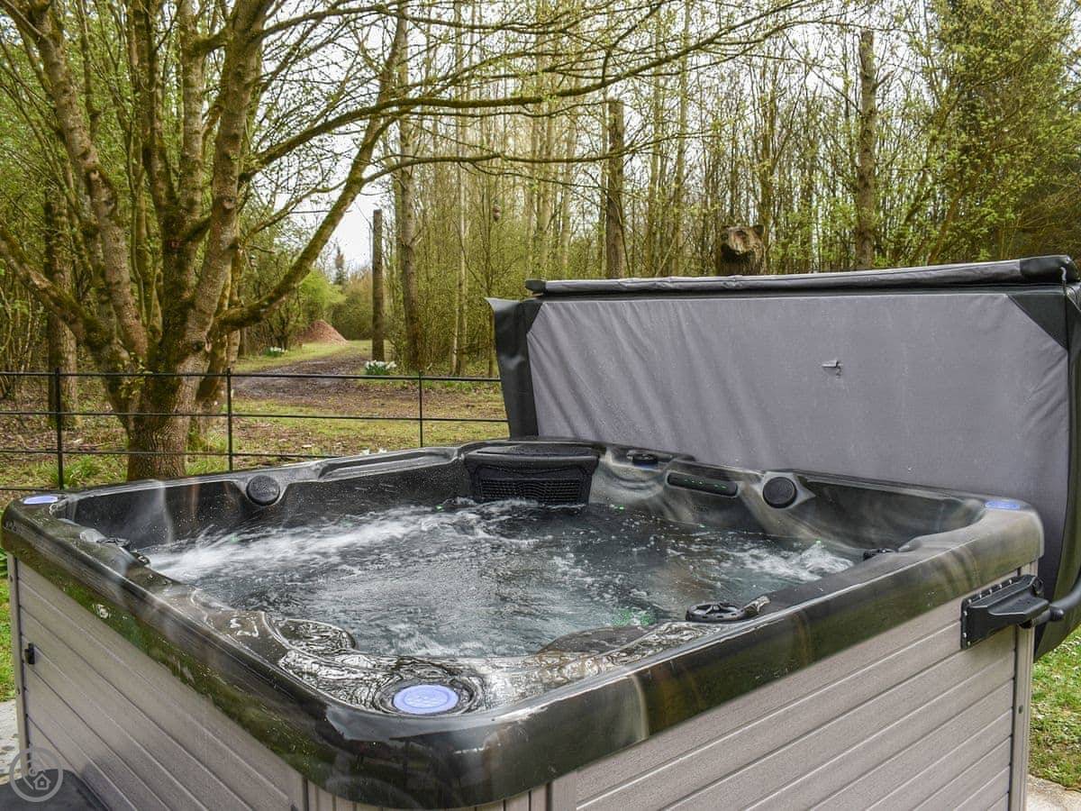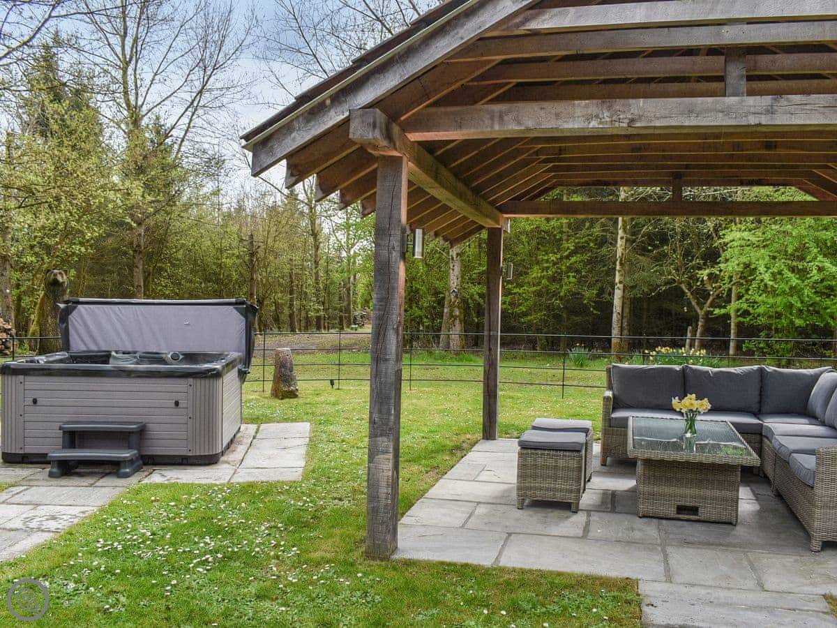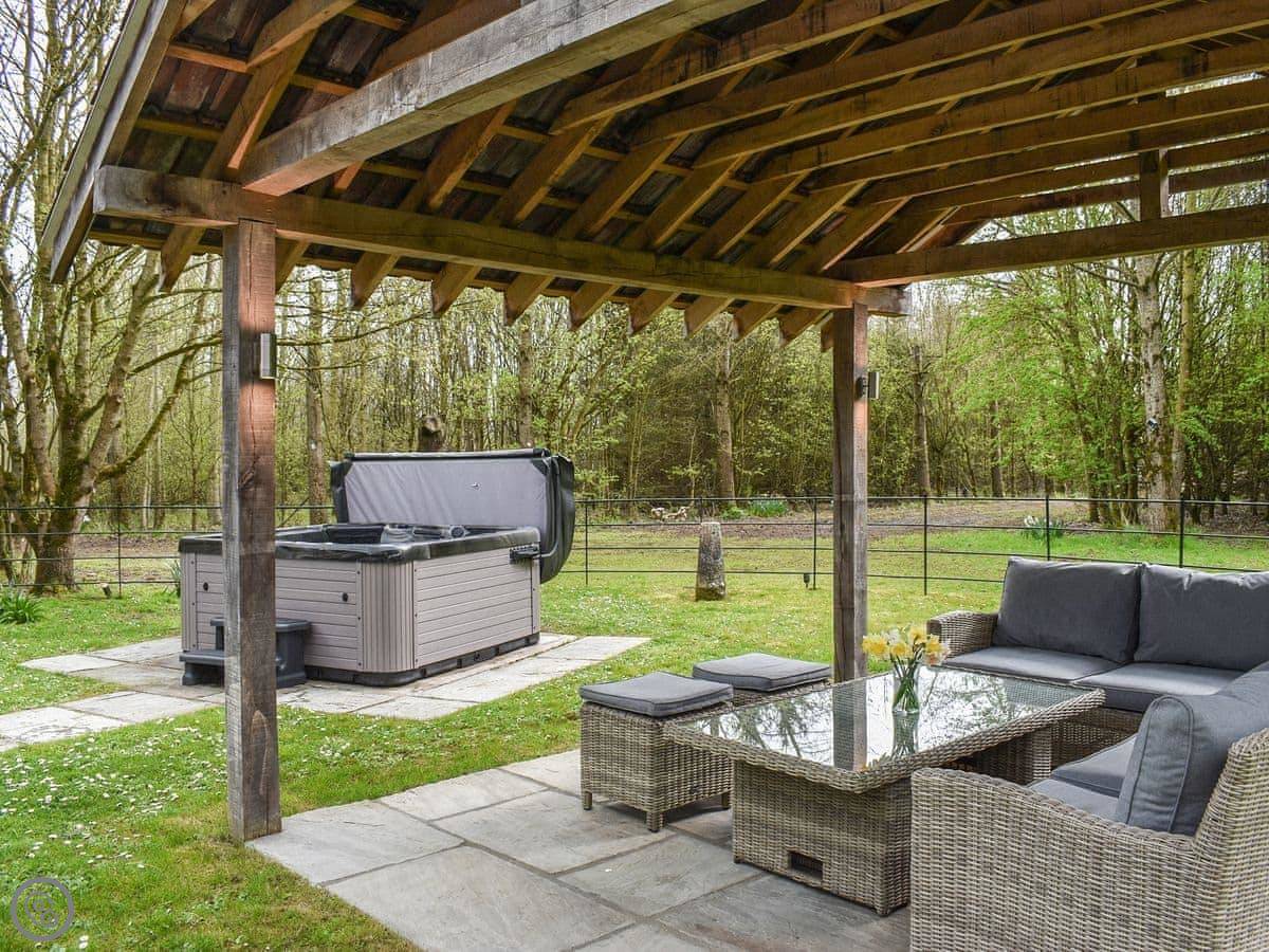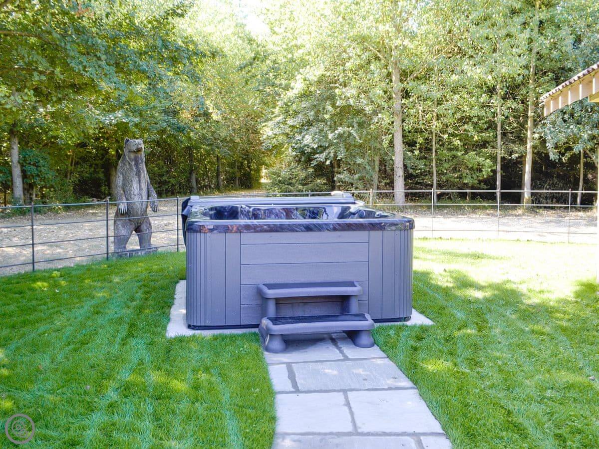 You have a large, enclosed garden. There's a hot tub, a barbecue, and plenty of parking right outside. We allow one dog. The woods are ours, so you're welcome to walk through them. It's very quiet. You'll see deer, birds, that sort of thing.